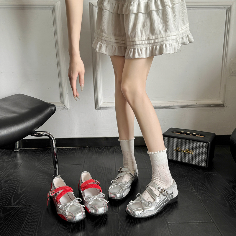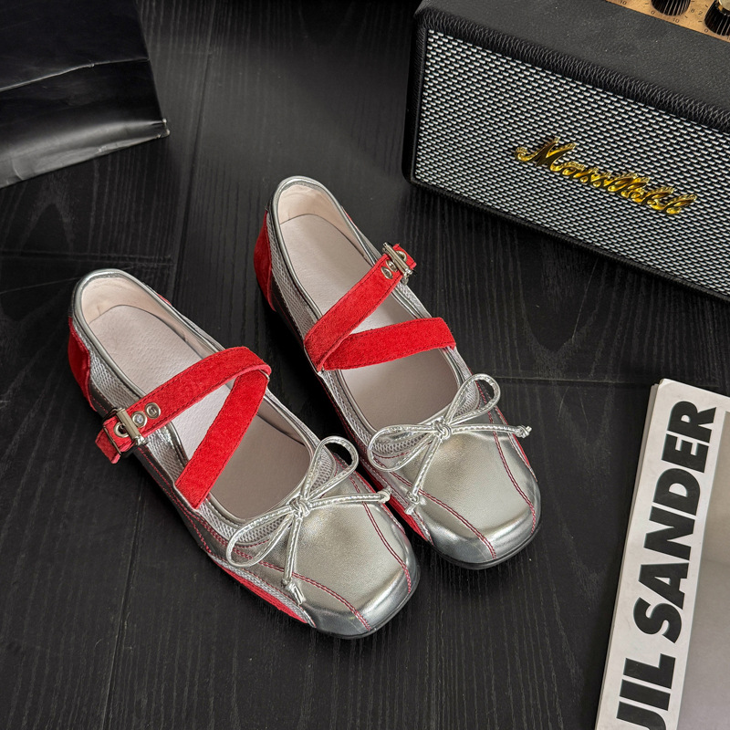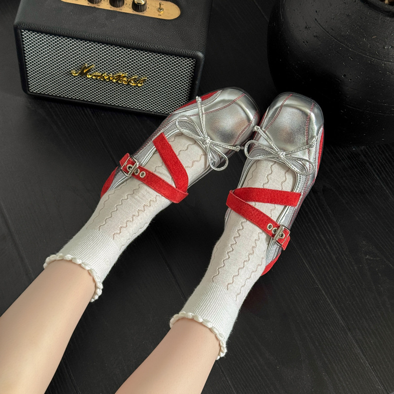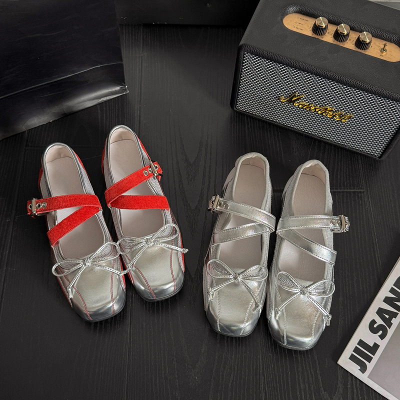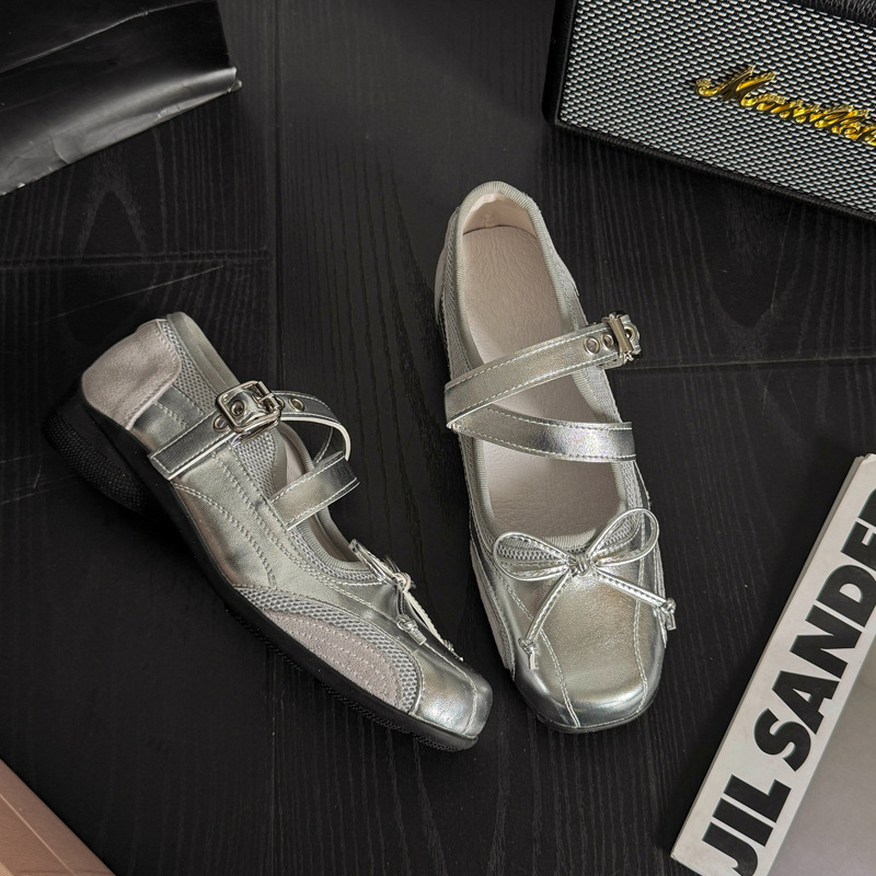 여성을위한 프랑스 실버 발레 슈즈 2025 여름 새로운 스타일 소프트 솔 스트랩 메리 제인 슈즈 스커트 펌프스 슈즈스토어 가기