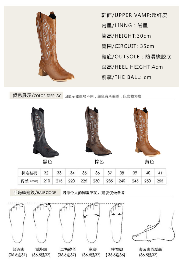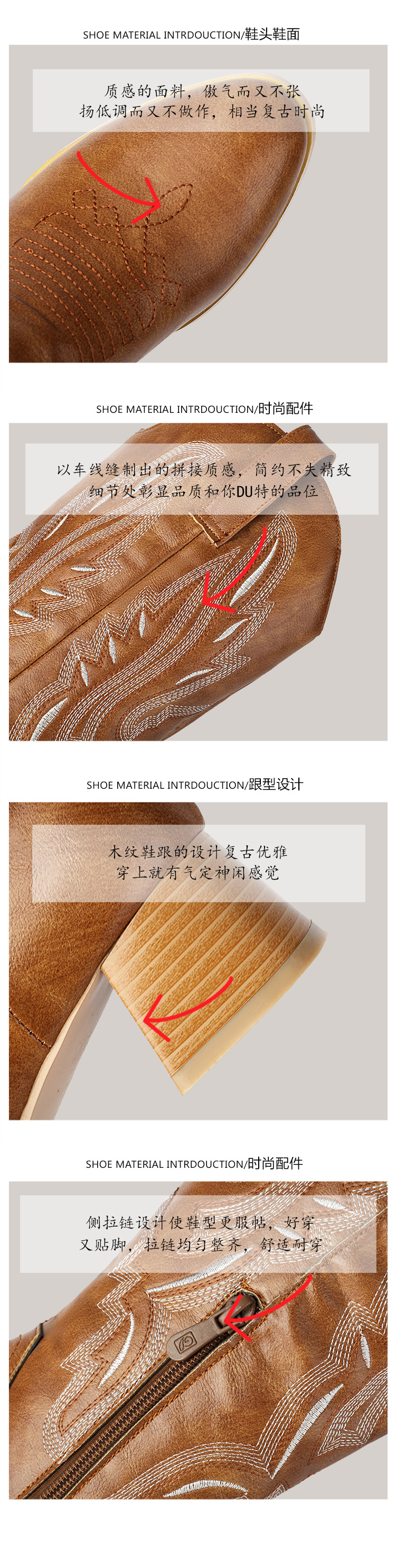 웨스턴 카우보이 부츠 두꺼운 굽 미드힐 자수 미드부츠 레트로 나이트 부츠 40-46 대형 부츠 대외 무역 부츠스토어 가기