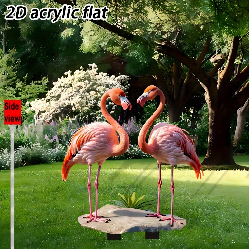 2D 평면 인쇄, 1개, 새로운 아크릴 소재 플라밍고 안뜰 장식 플러그, 적합