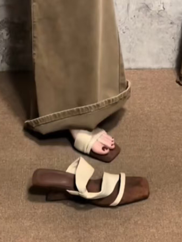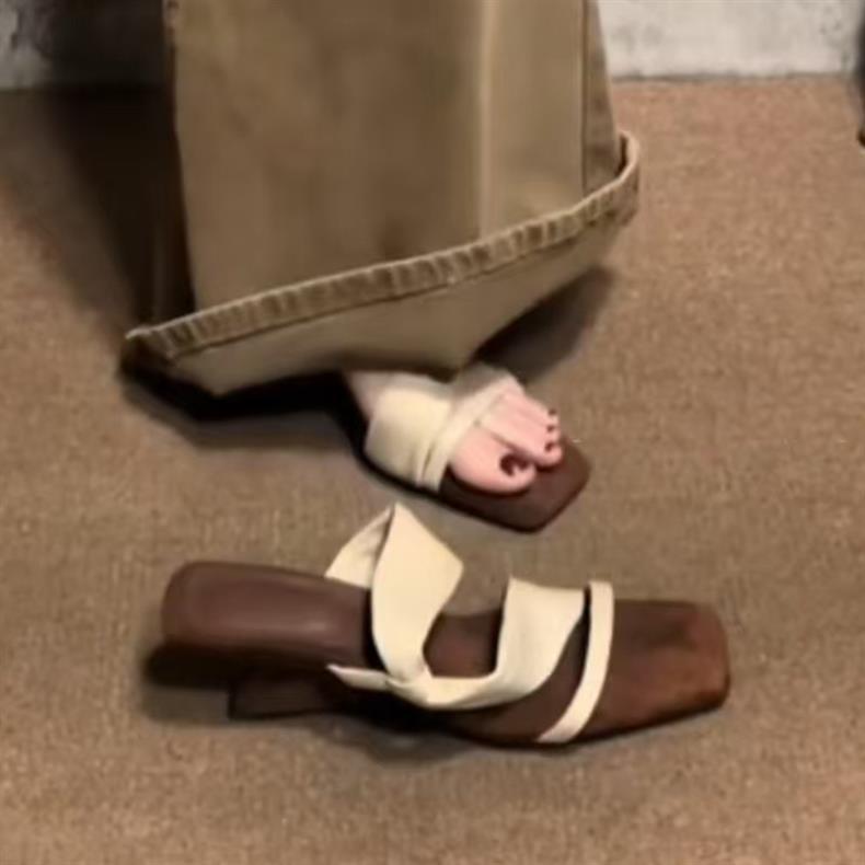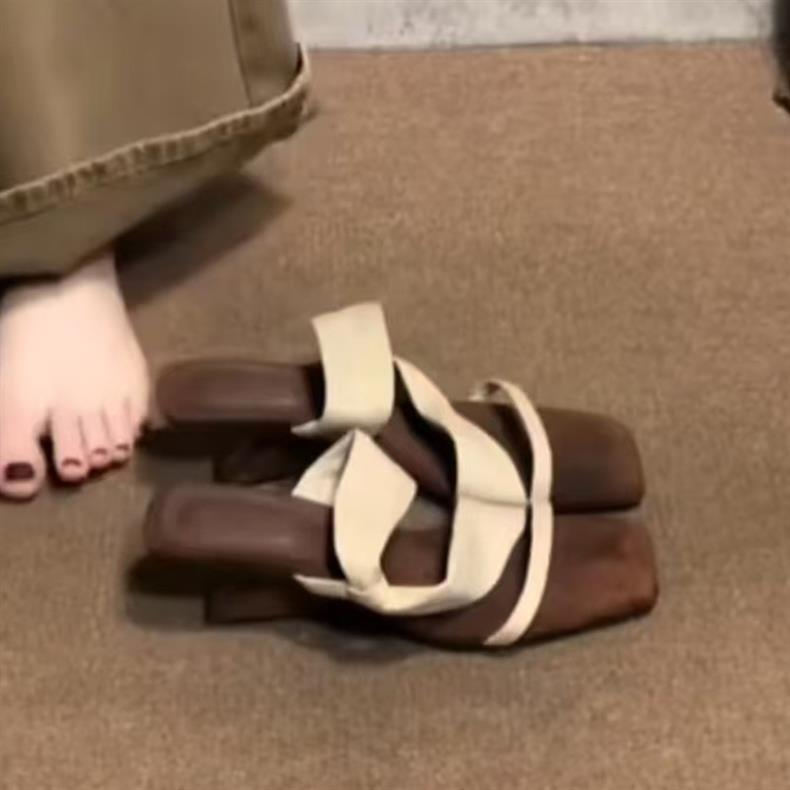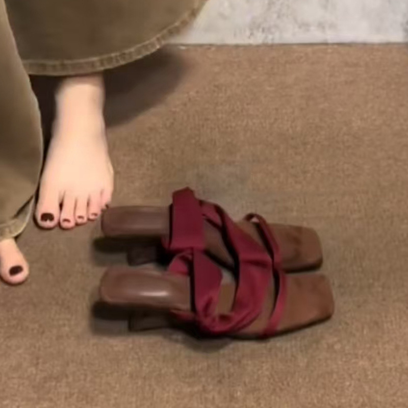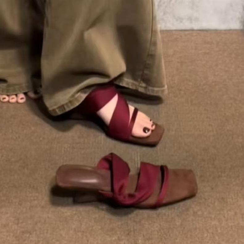 재고 있음 ~ 레트로 웨지 오픈 토 샌들 여성 여름 2025 새로운 틈새 디자인 특수 모양의 힐 하이힐스토어 가기