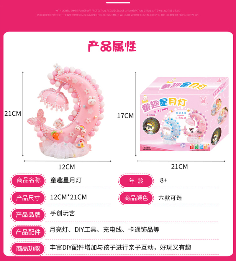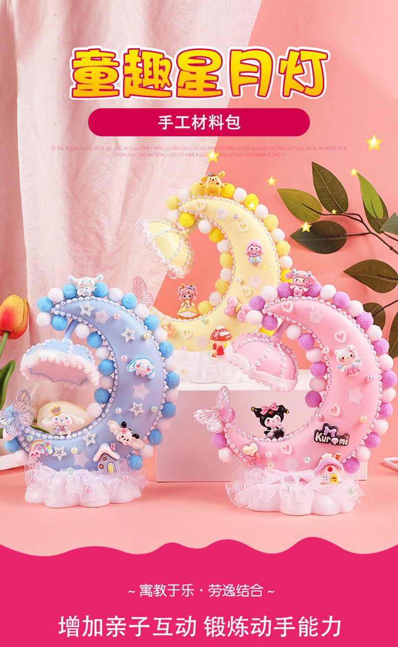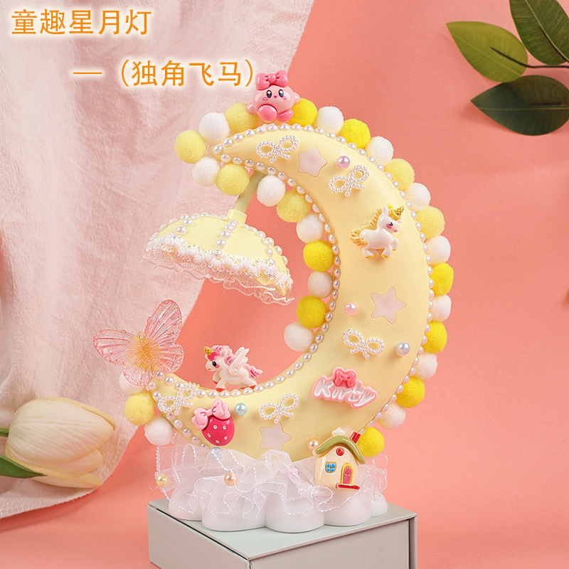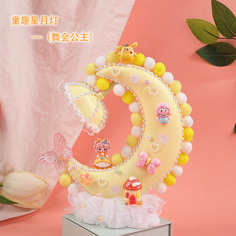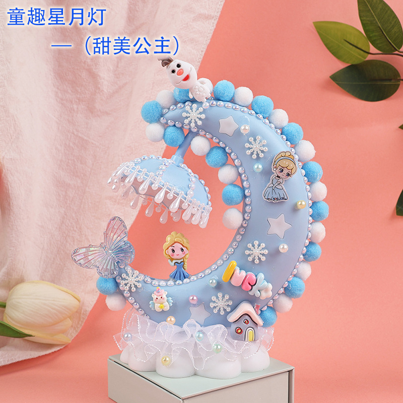 어린이 수제 diy 별과 달 램프 재료 패키지 세트 소녀 만화 귀여운 교육 야간 조명 빛나는 장난감스토어 가기