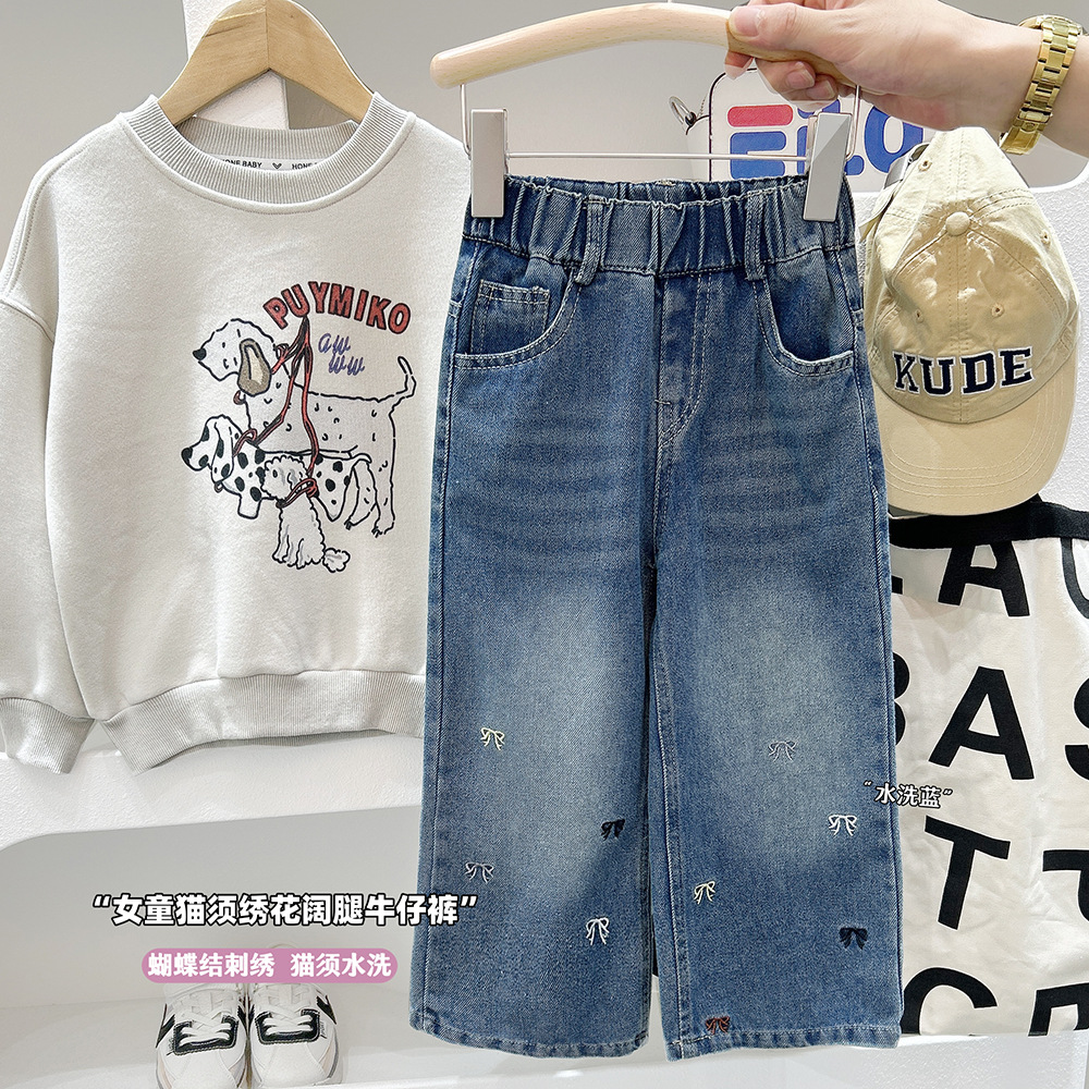 여아 청바지 봄, 가을 2025 새로운 느슨한 아동 가을 의류 여아 긴 바지 봄 큰 아동용 와이드 팬츠