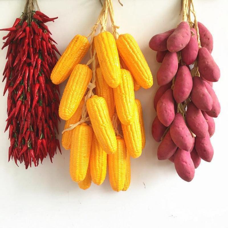 야채 옥수수 펜던트 장식 가짜 고추 꼬치 마늘 작물 곡물 농가 장식스토어 가기