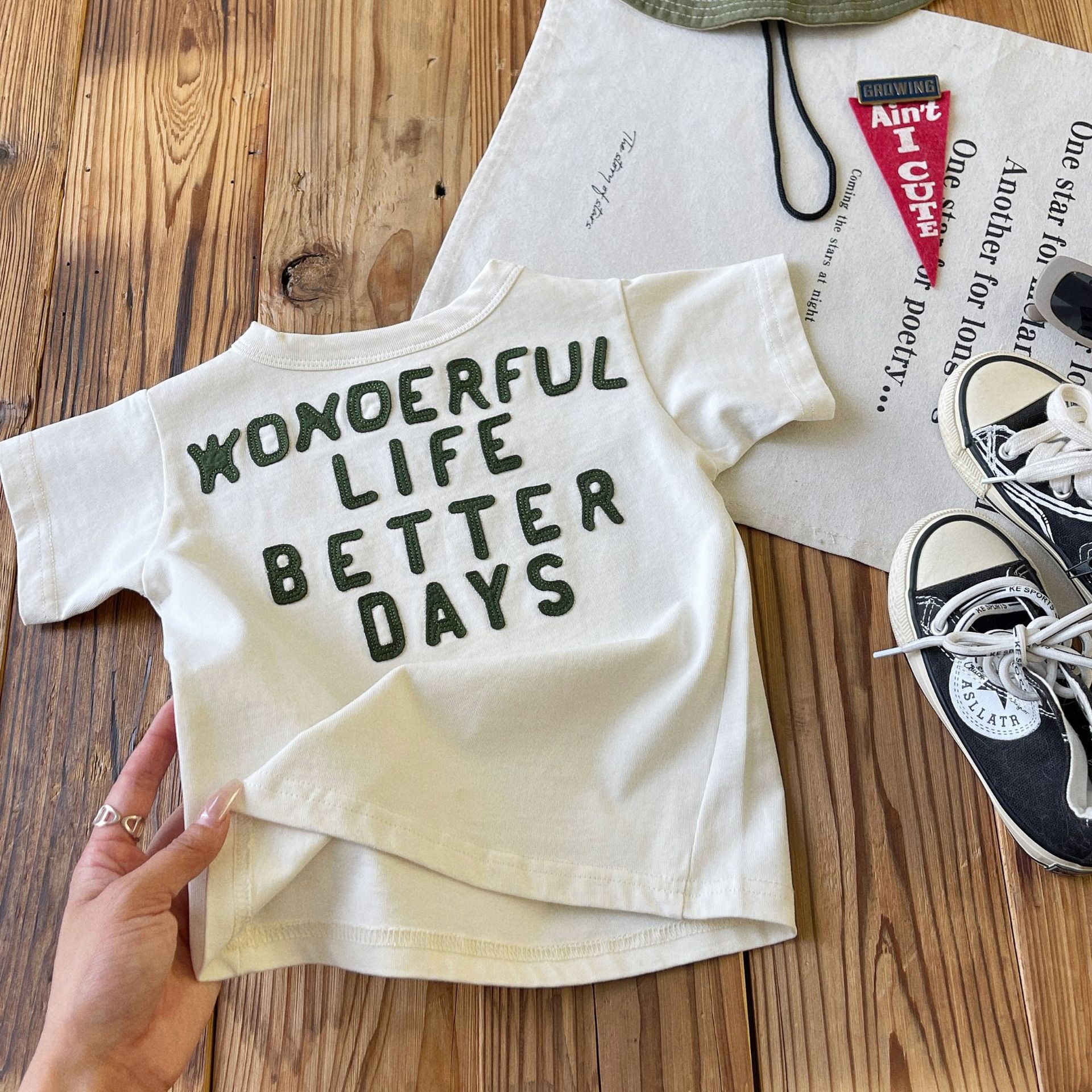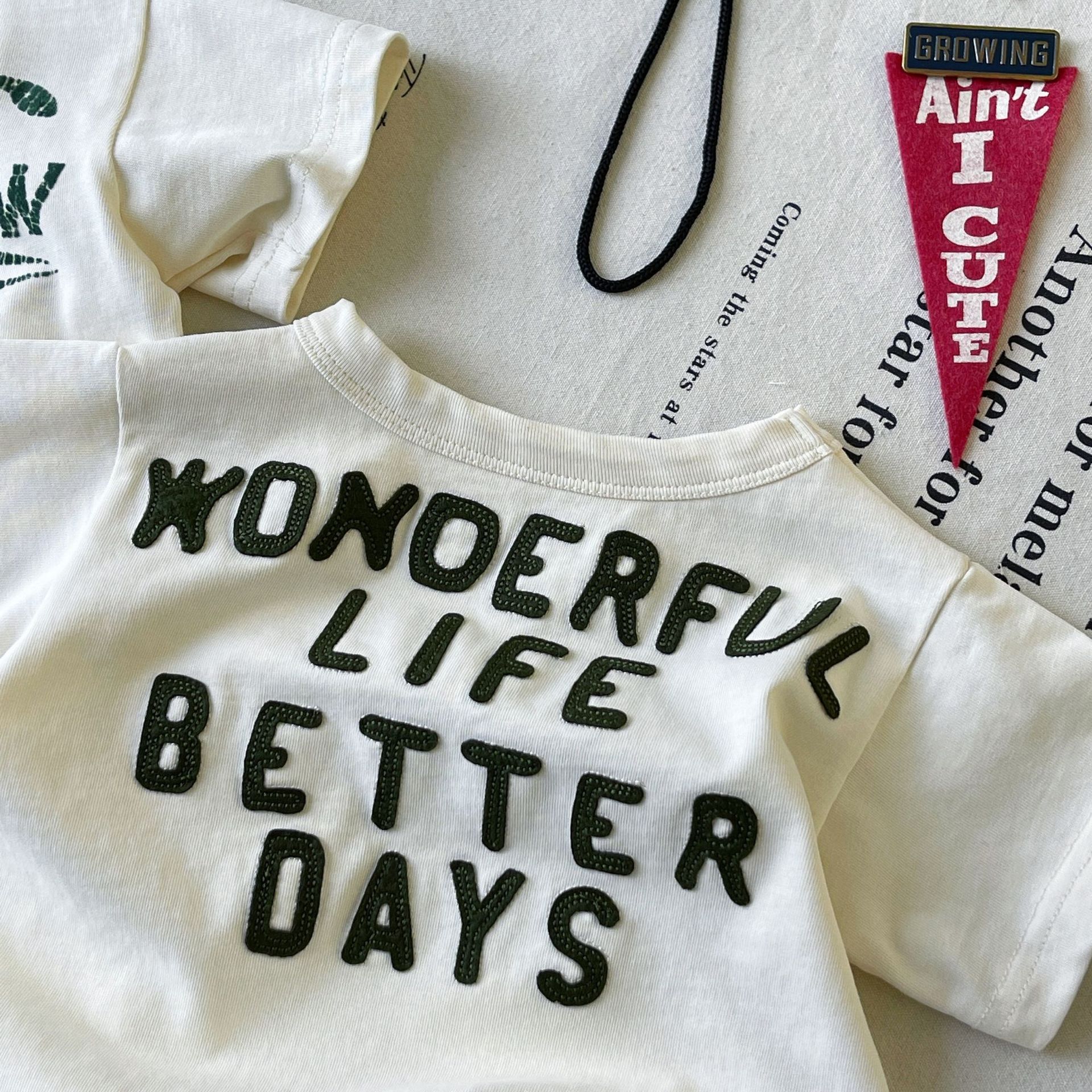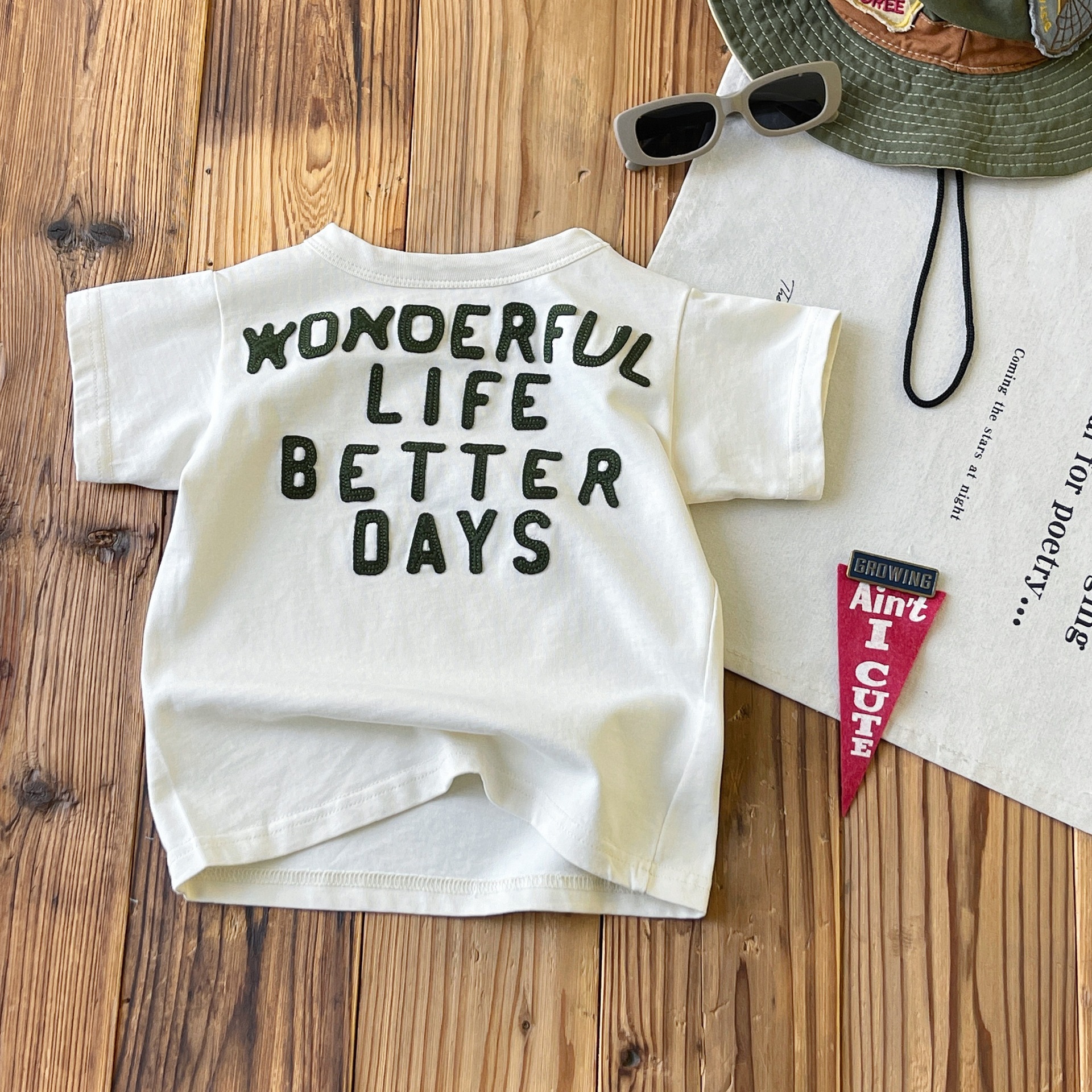 [재고 있음] 일본 아동복 중고 DD 여름 아동 입체 문자 티셔츠 올드 반팔스토어 가기