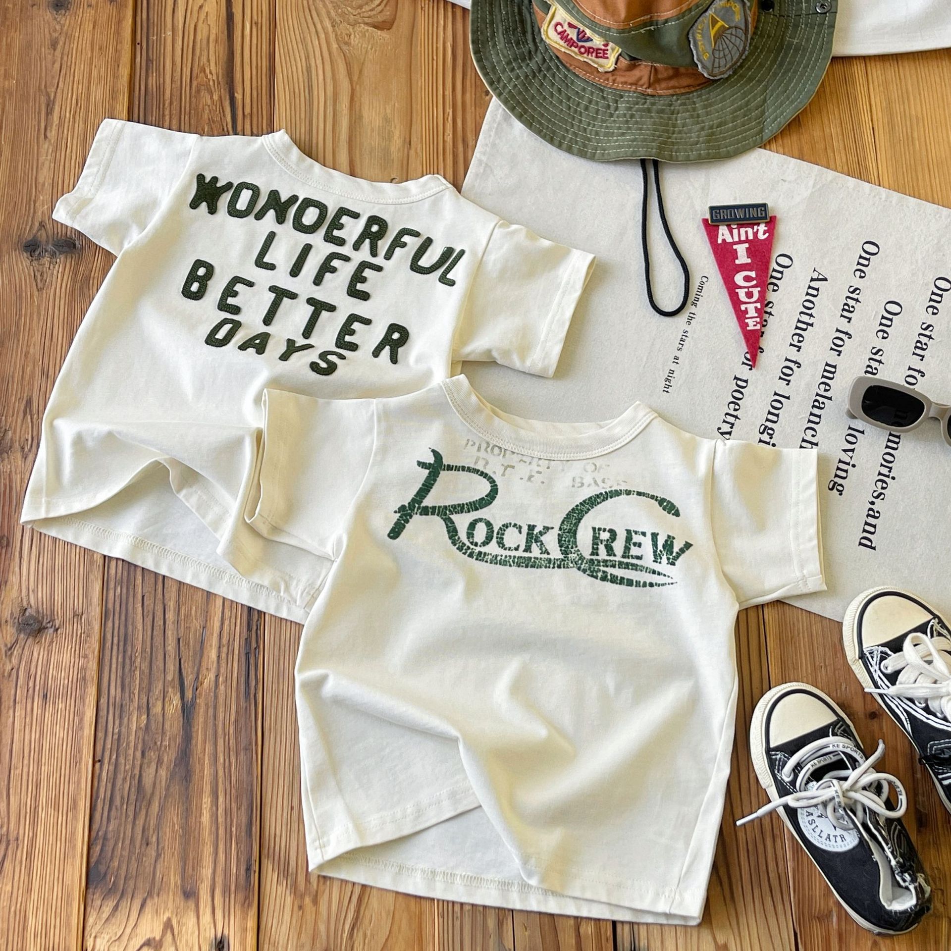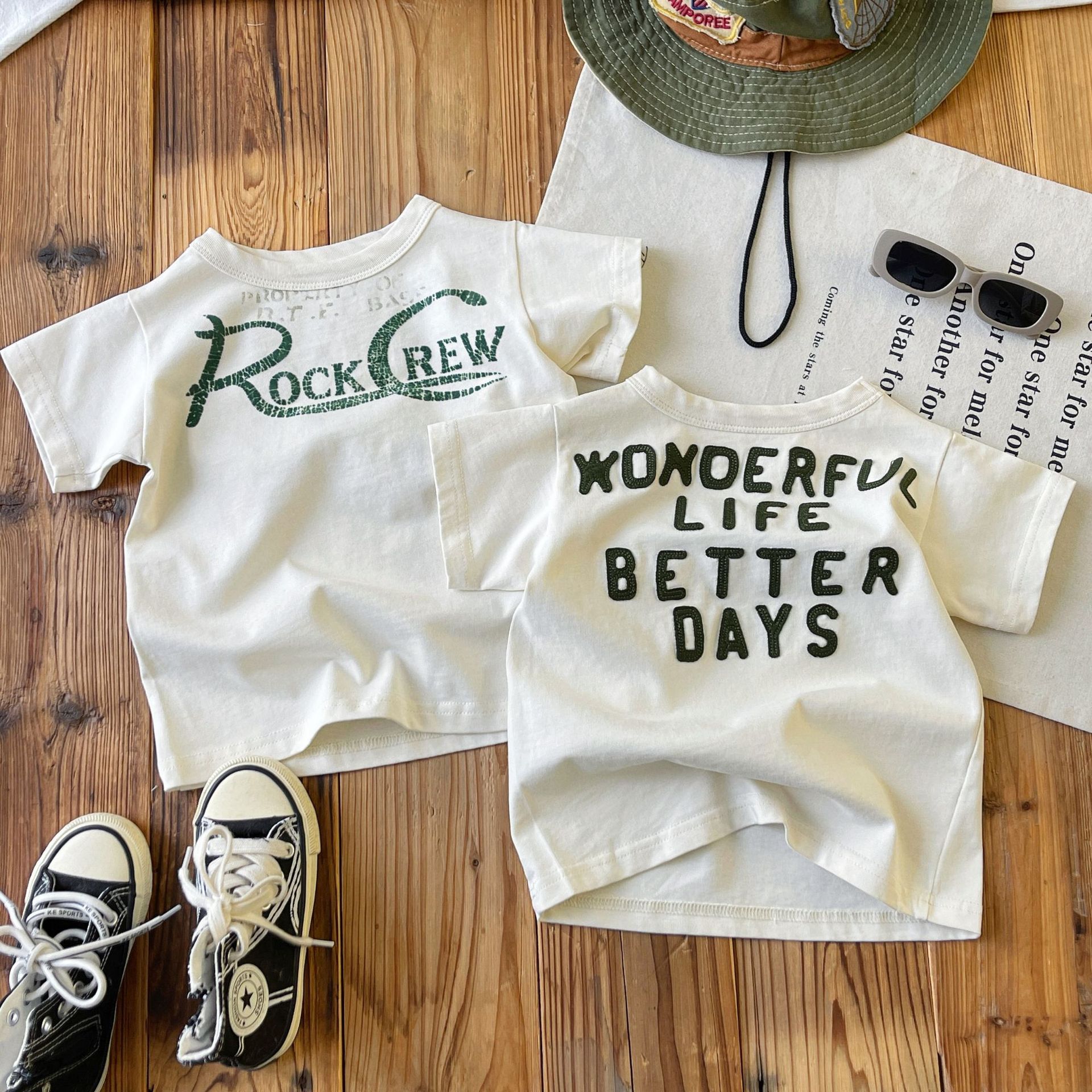 [재고 있음] 일본 아동복 중고 DD 여름 아동 입체 문자 티셔츠 올드 반팔