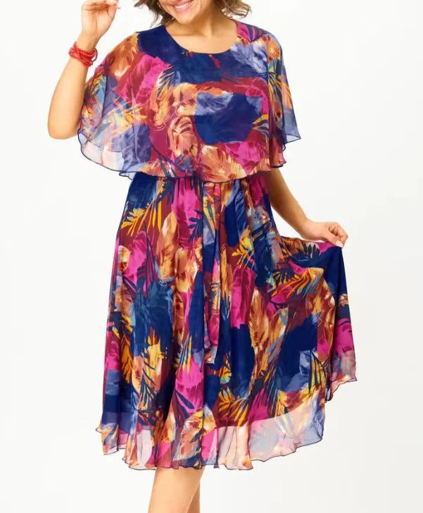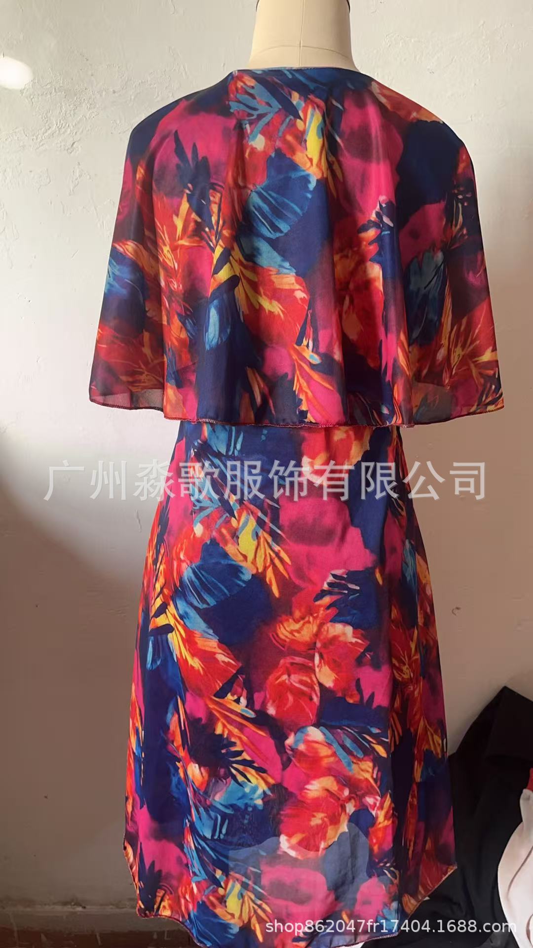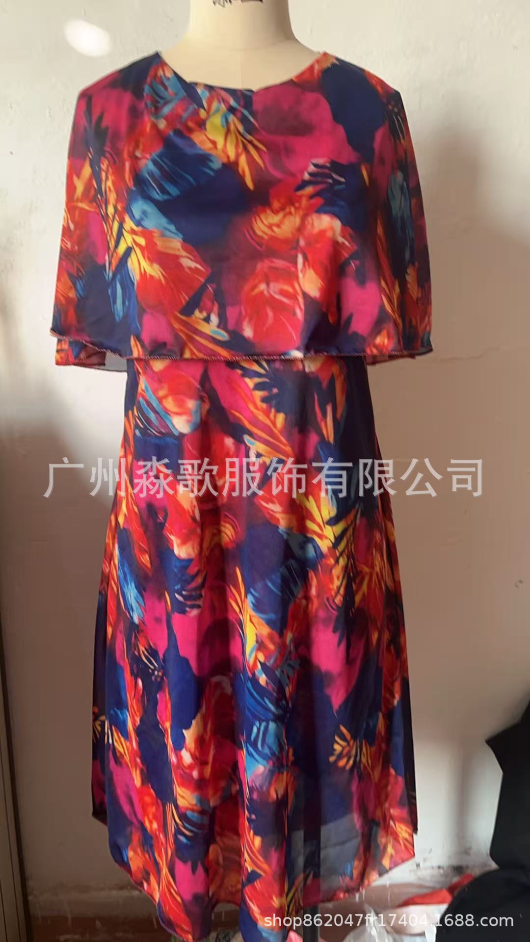 2025 유럽과 미국 패션 크로스보더 새로운 메쉬 프린트 라운드 넥 드레스스토어 가기