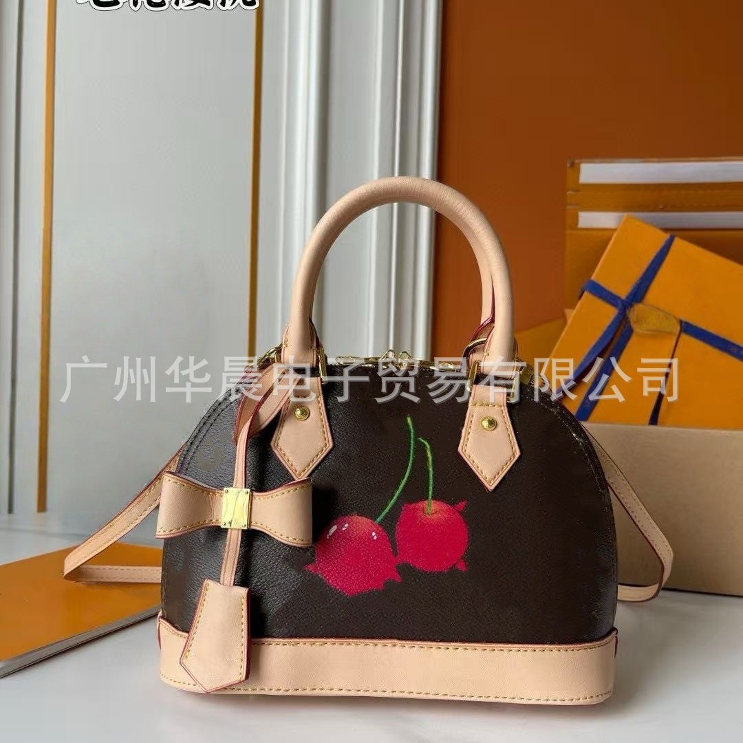 새로운 인쇄 사쿠라 체리 시리즈 휴대용 여성 가방 가죽 노안 쉘 가방 어깨 메신저 가방 도매 패션