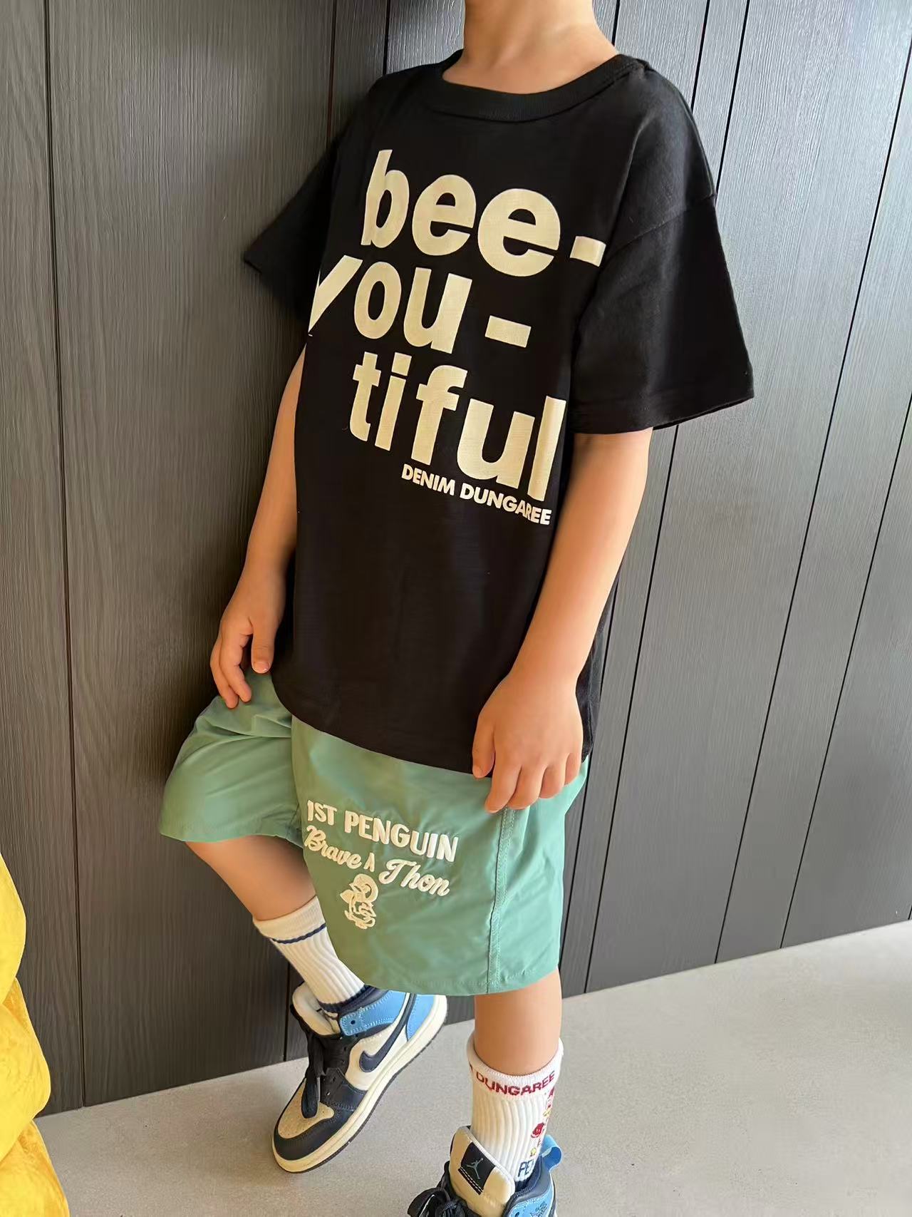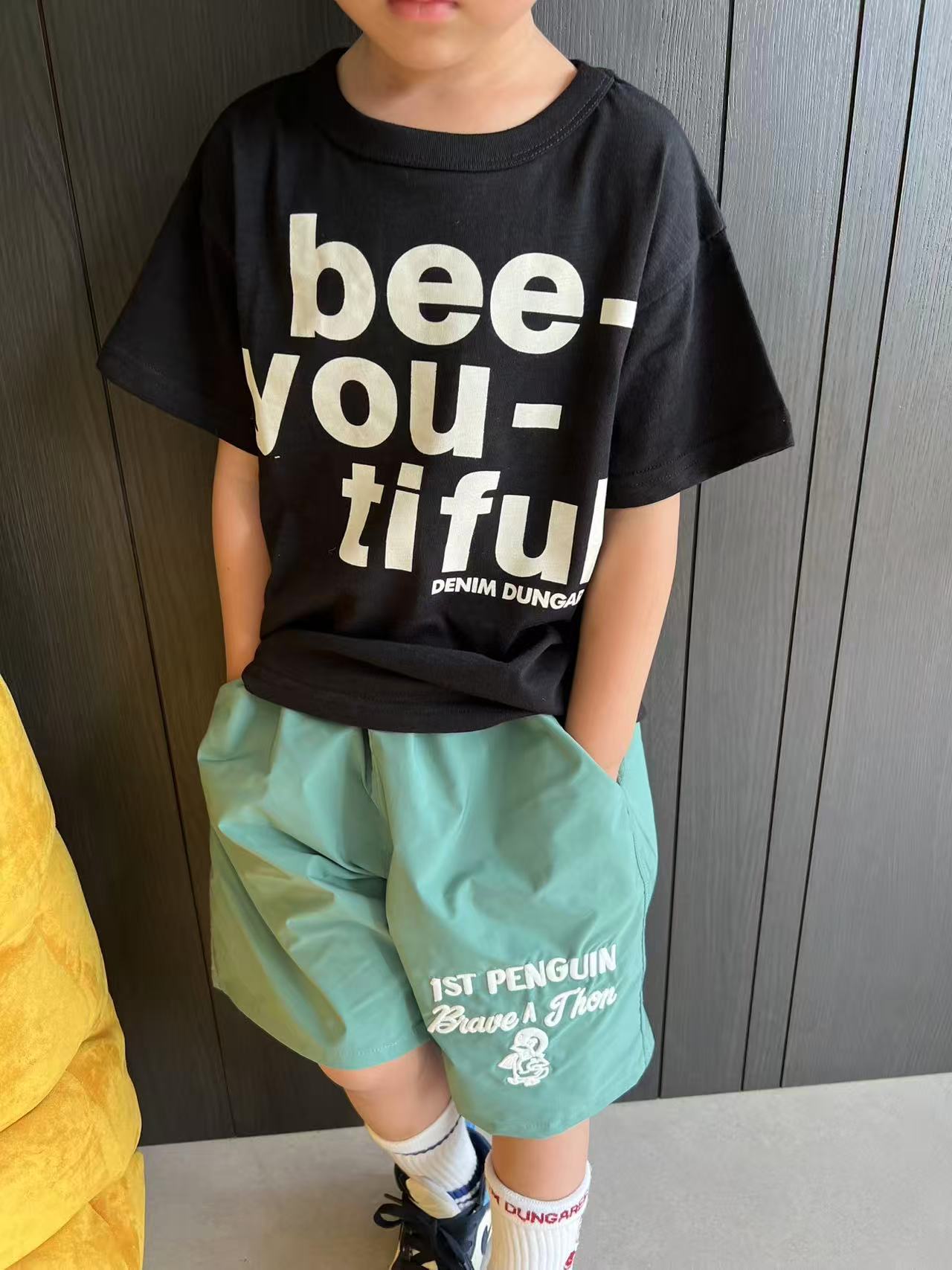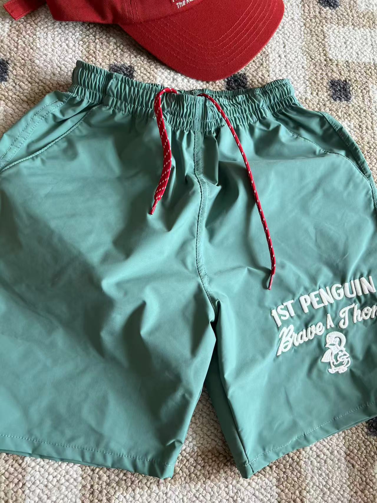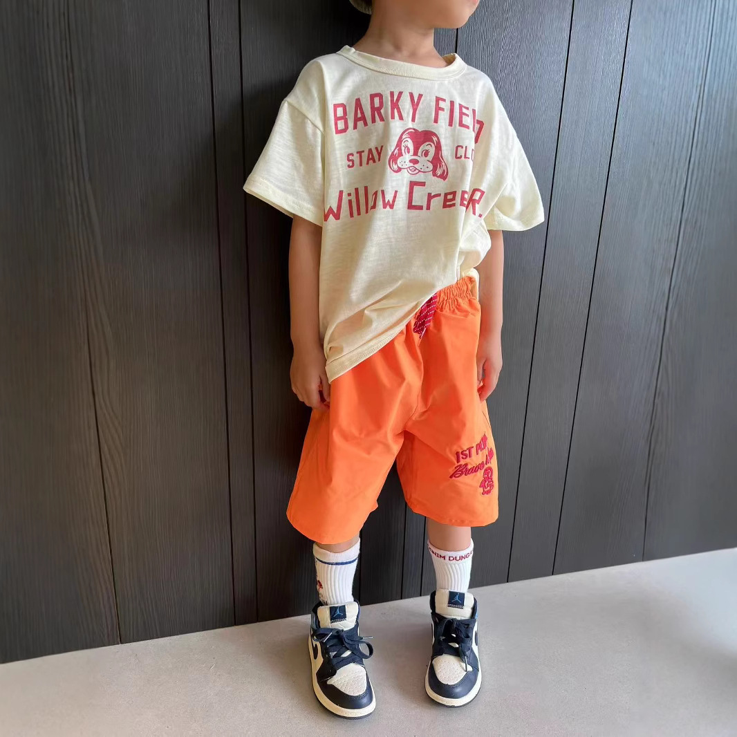 dd 일본 아동복 25 여름 새 스타일 짠 반바지 자수 펭귄 캐주얼 속건성 소년 소녀 비치 반바지스토어 가기
