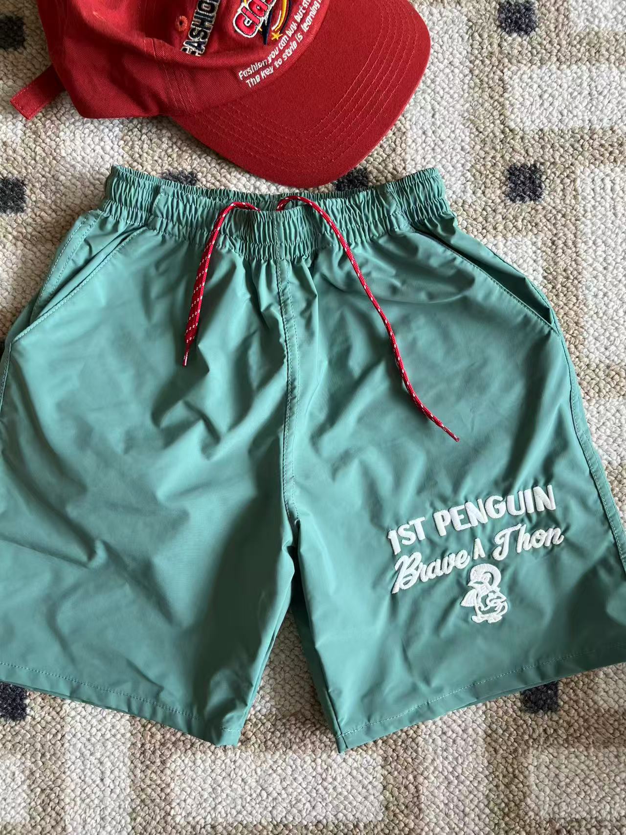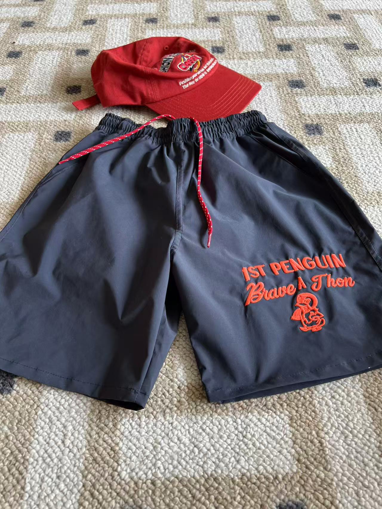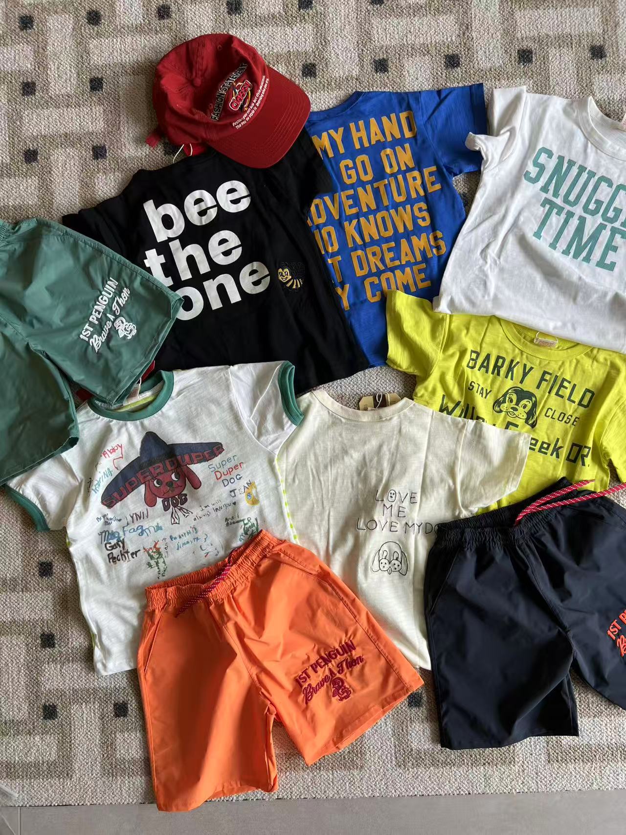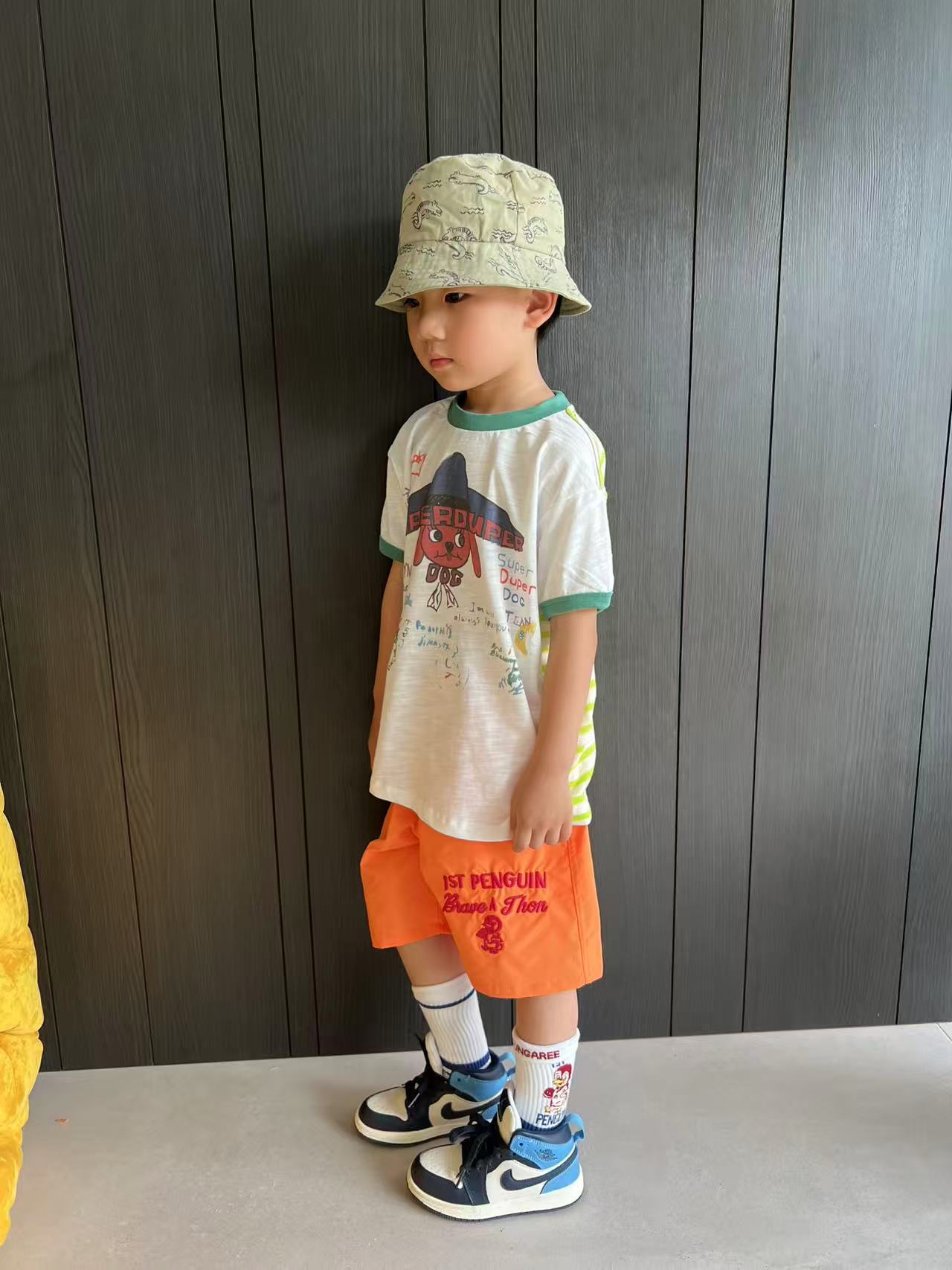 dd 일본 아동복 25 여름 새 스타일 짠 반바지 자수 펭귄 캐주얼 속건성 소년 소녀 비치 반바지스토어 가기