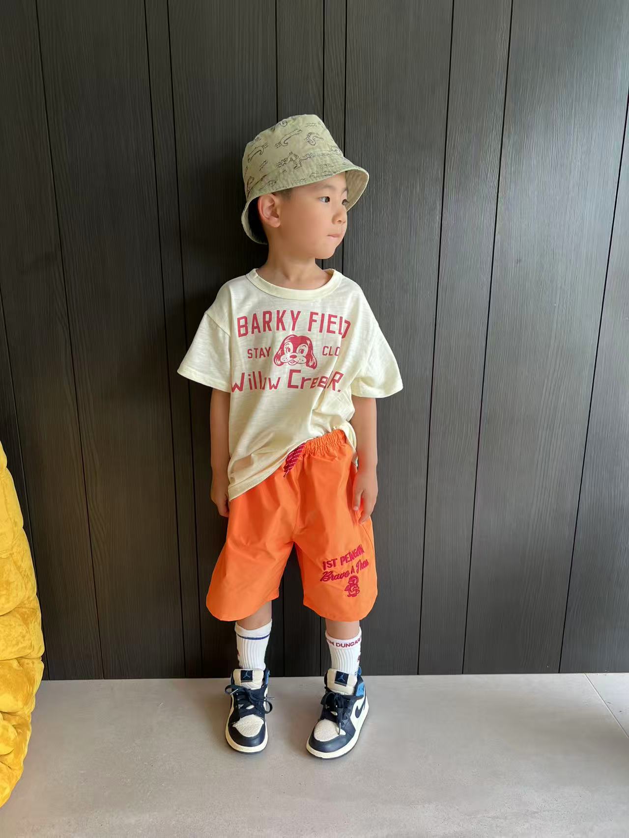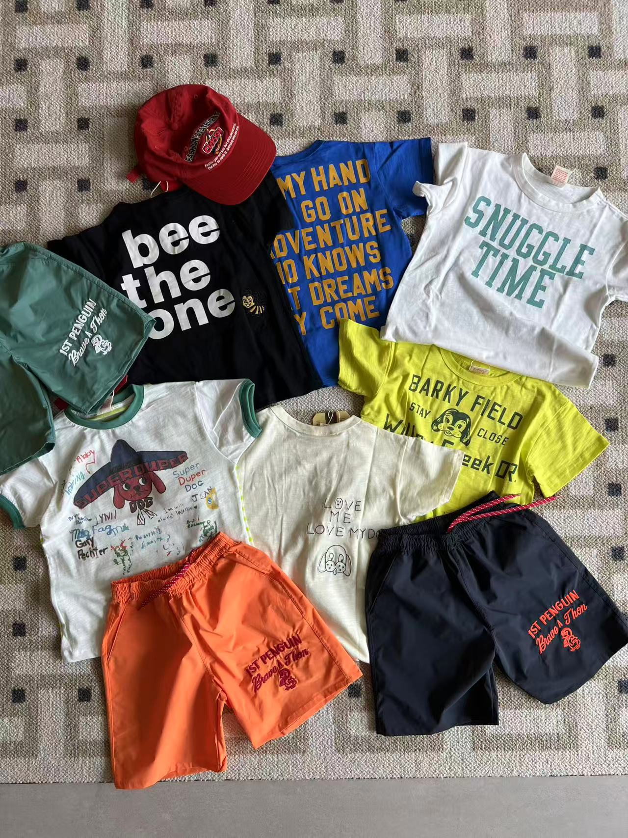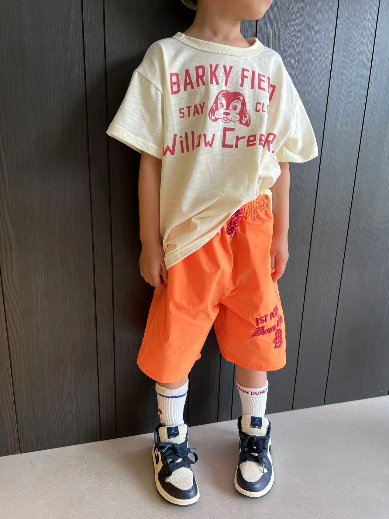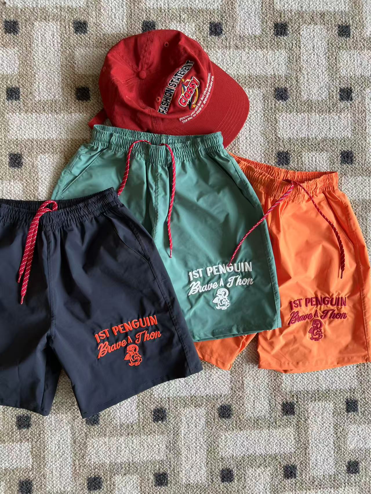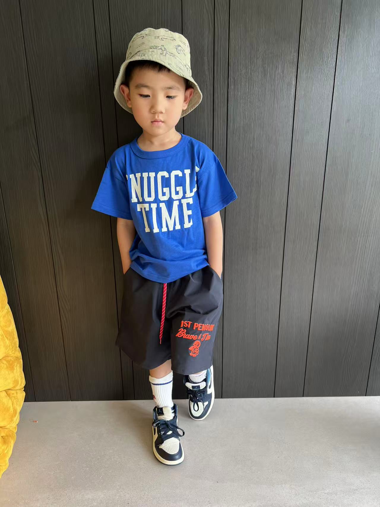 dd 일본 아동복 25 여름 새 스타일 짠 반바지 자수 펭귄 캐주얼 속건성 소년 소녀 비치 반바지스토어 가기