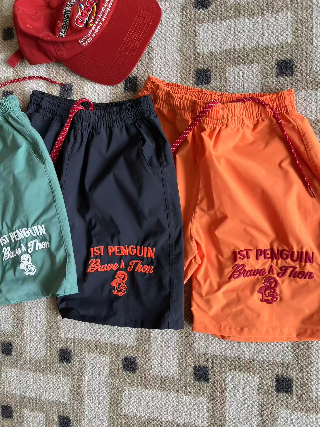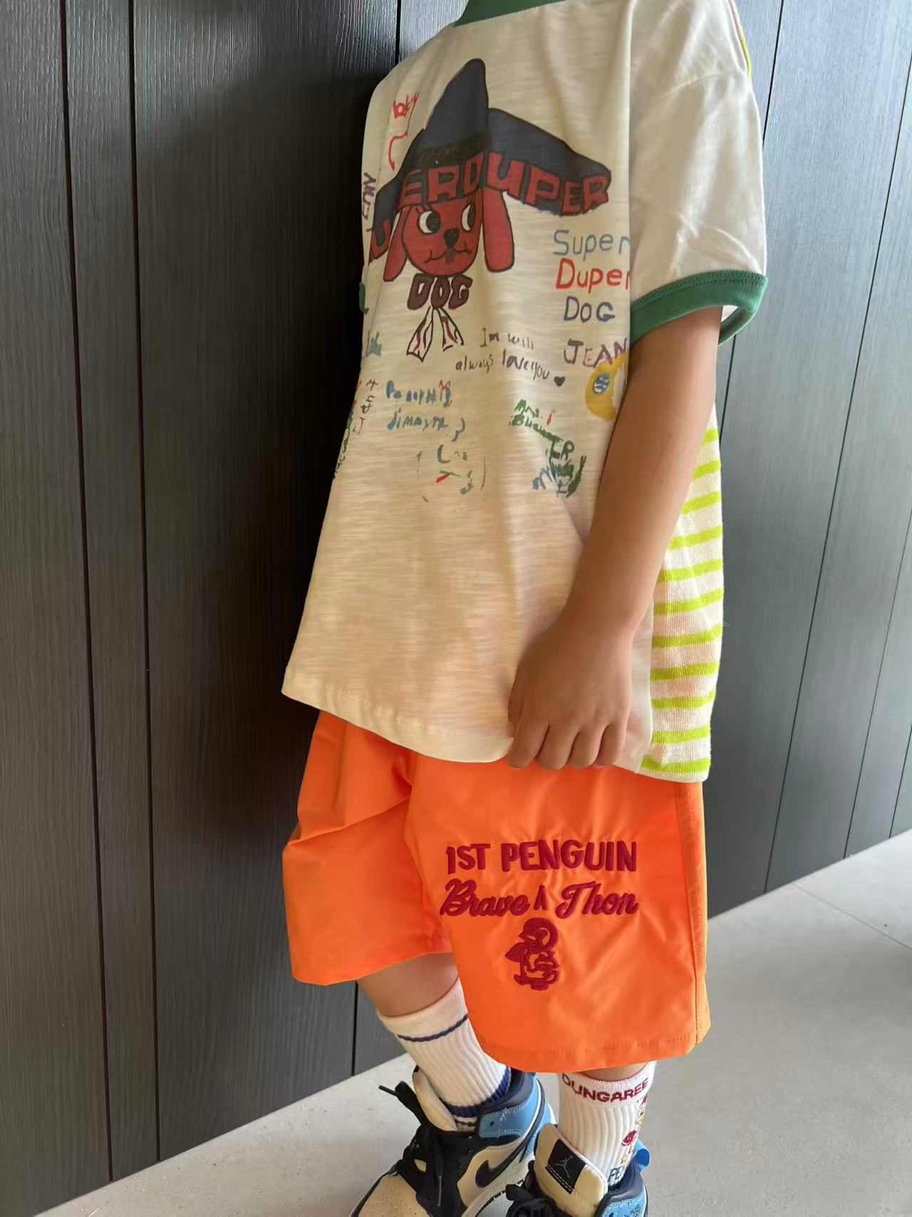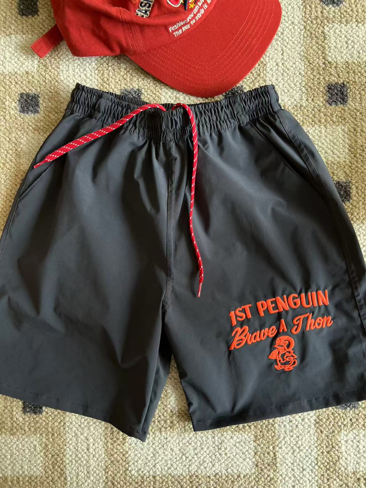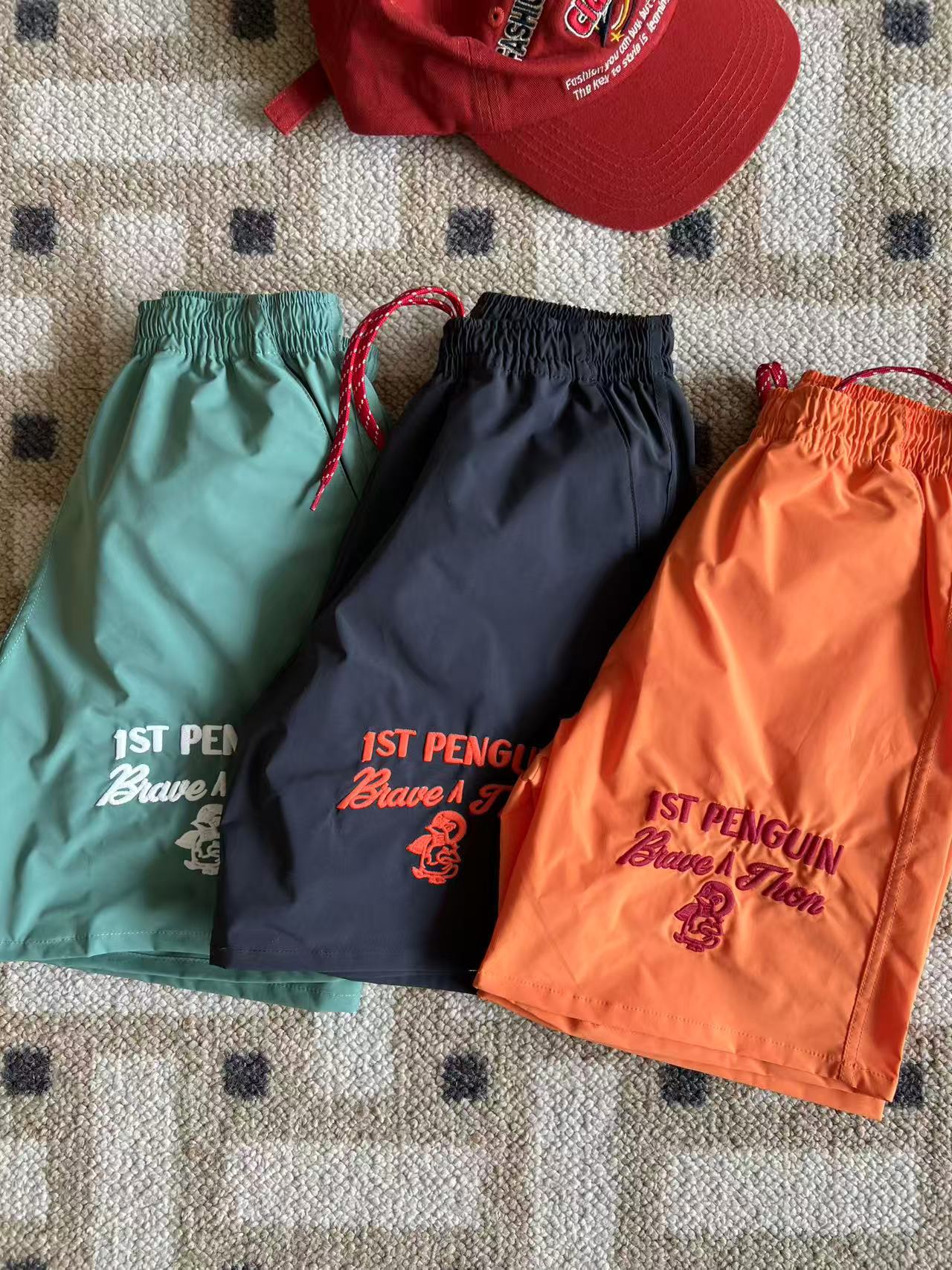 dd 일본 아동복 25 여름 새 스타일 짠 반바지 자수 펭귄 캐주얼 속건성 소년 소녀 비치 반바지스토어 가기