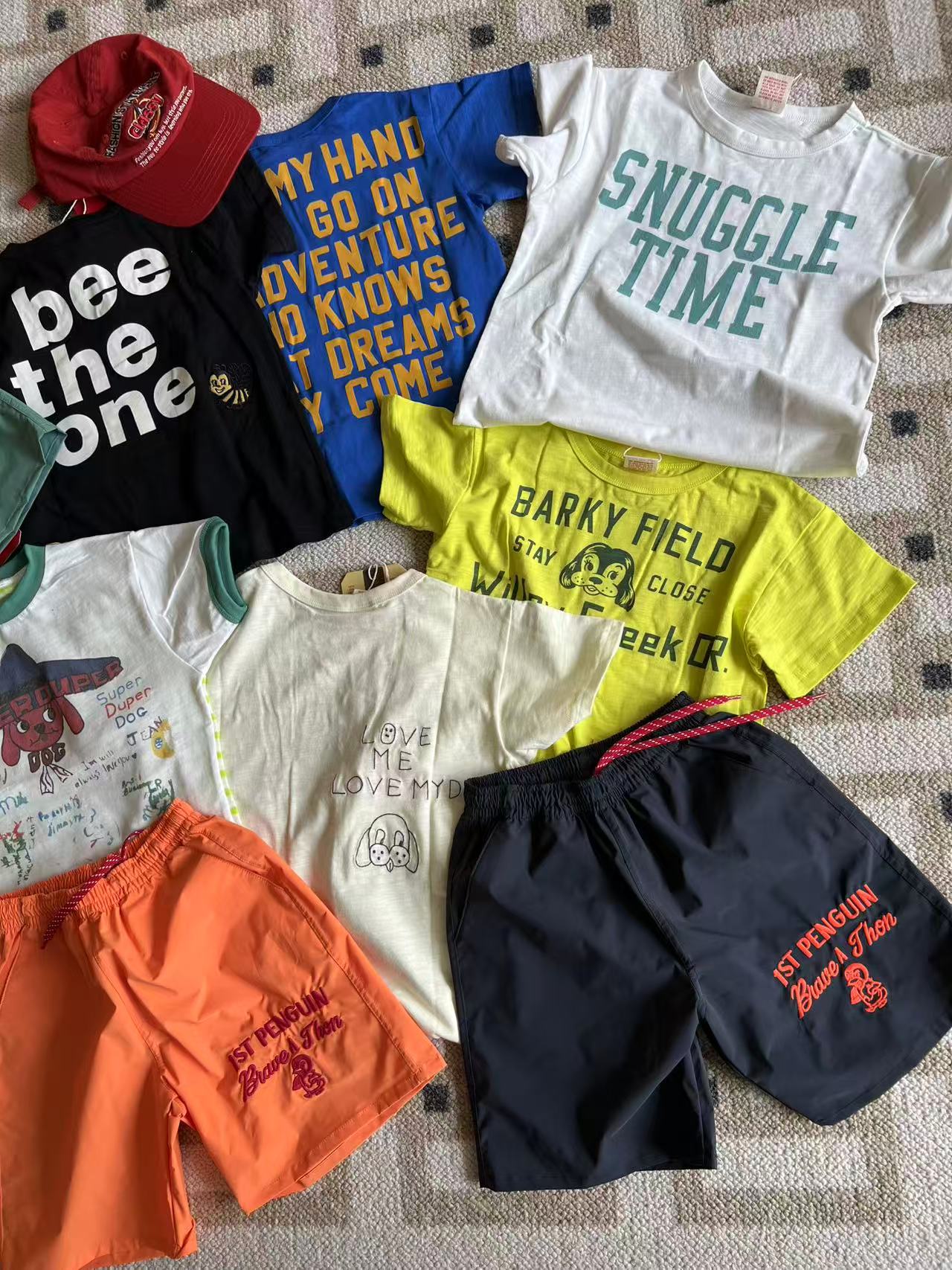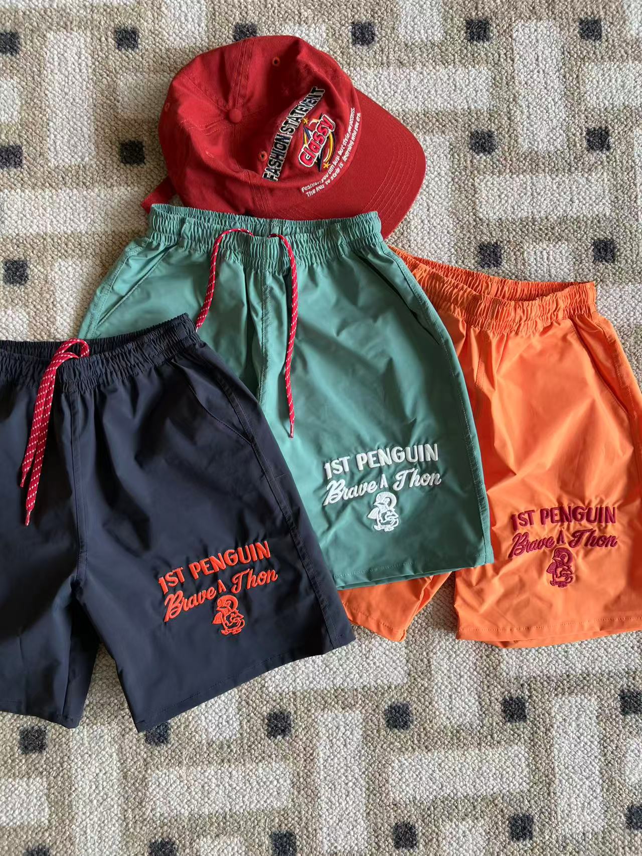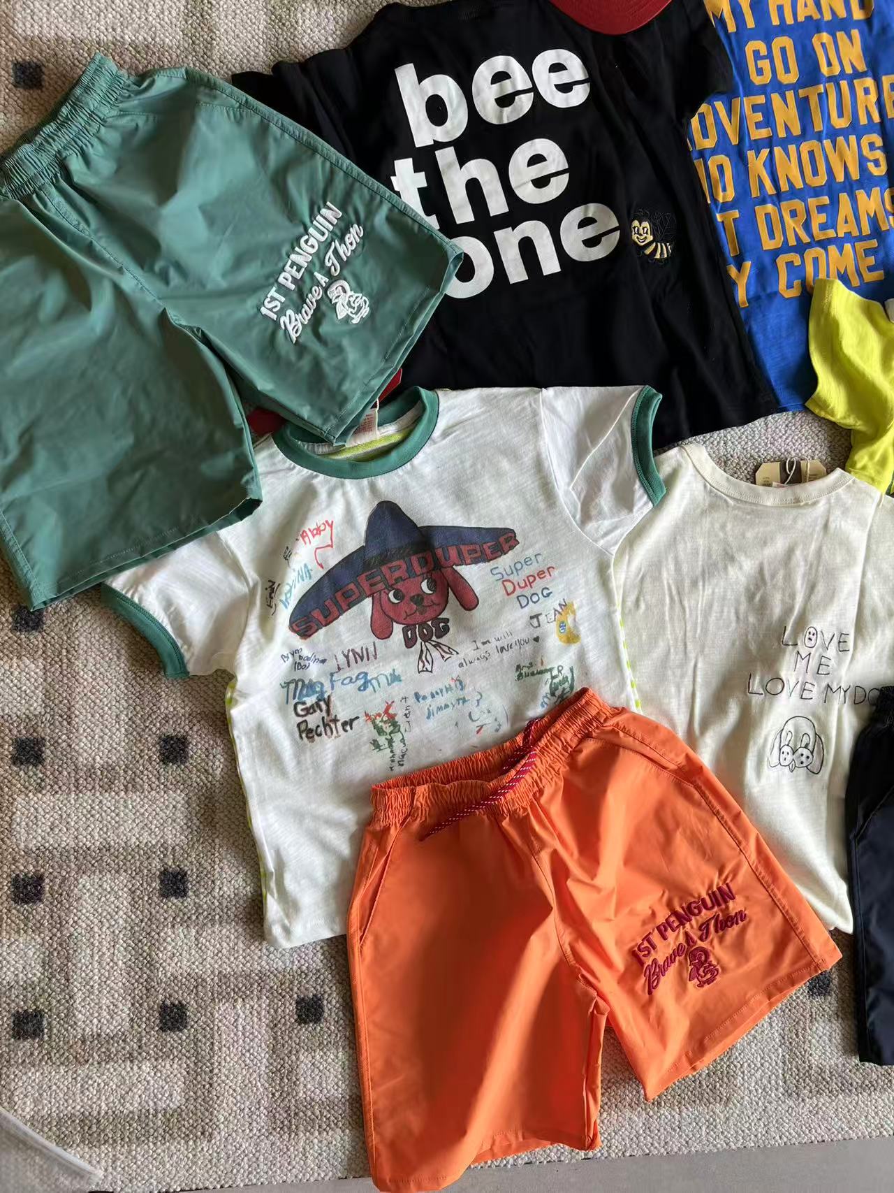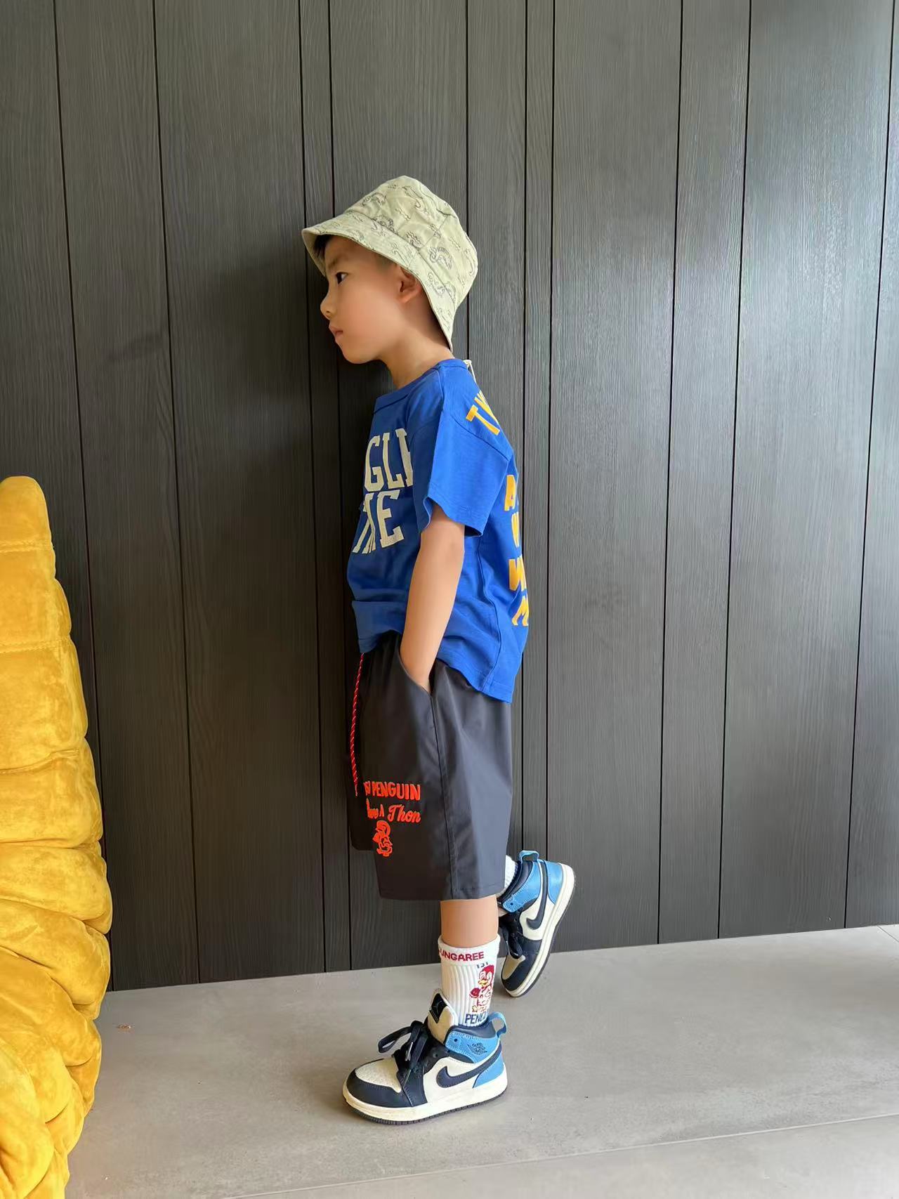 dd 일본 아동복 25 여름 새 스타일 짠 반바지 자수 펭귄 캐주얼 속건성 소년 소녀 비치 반바지스토어 가기
