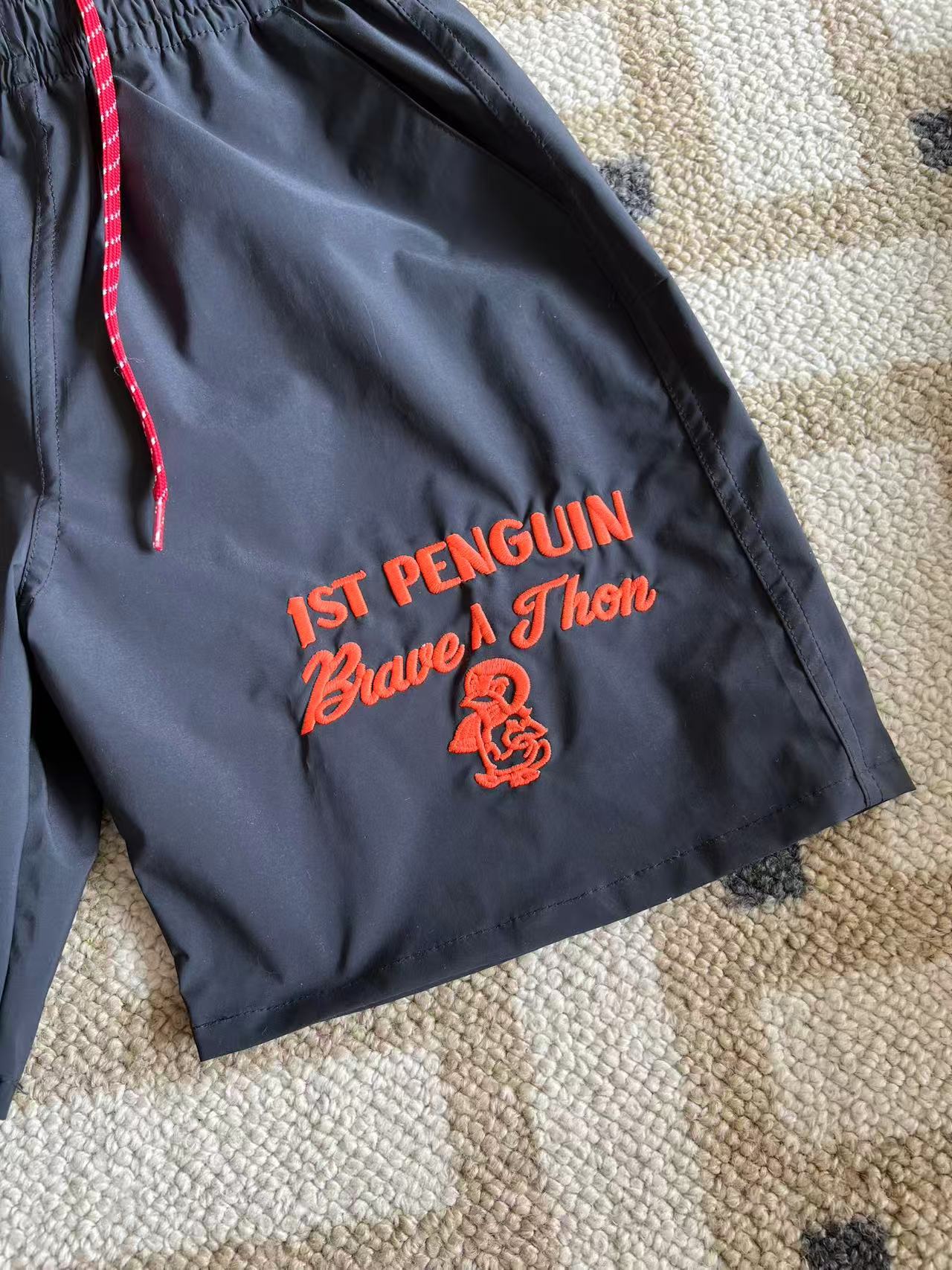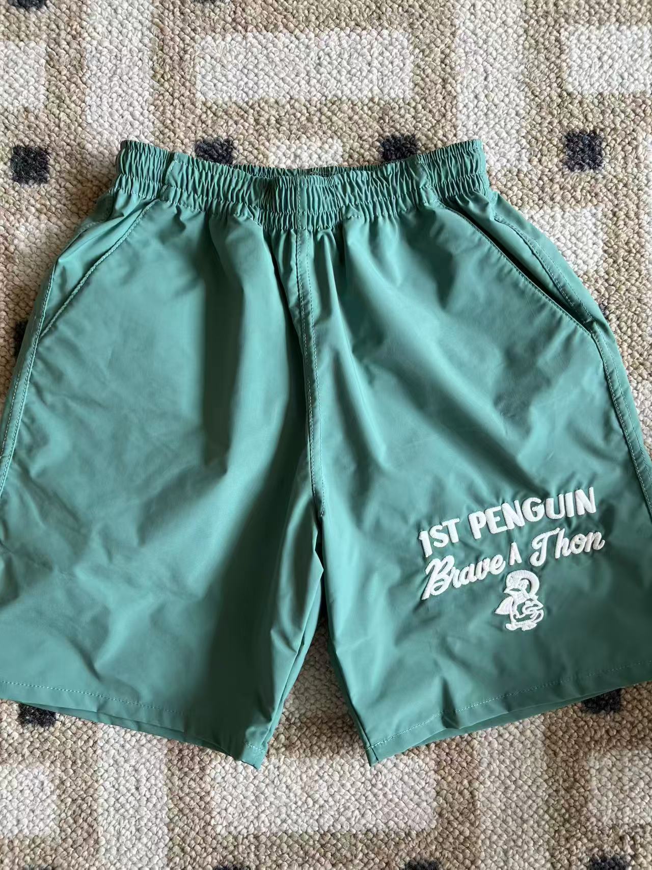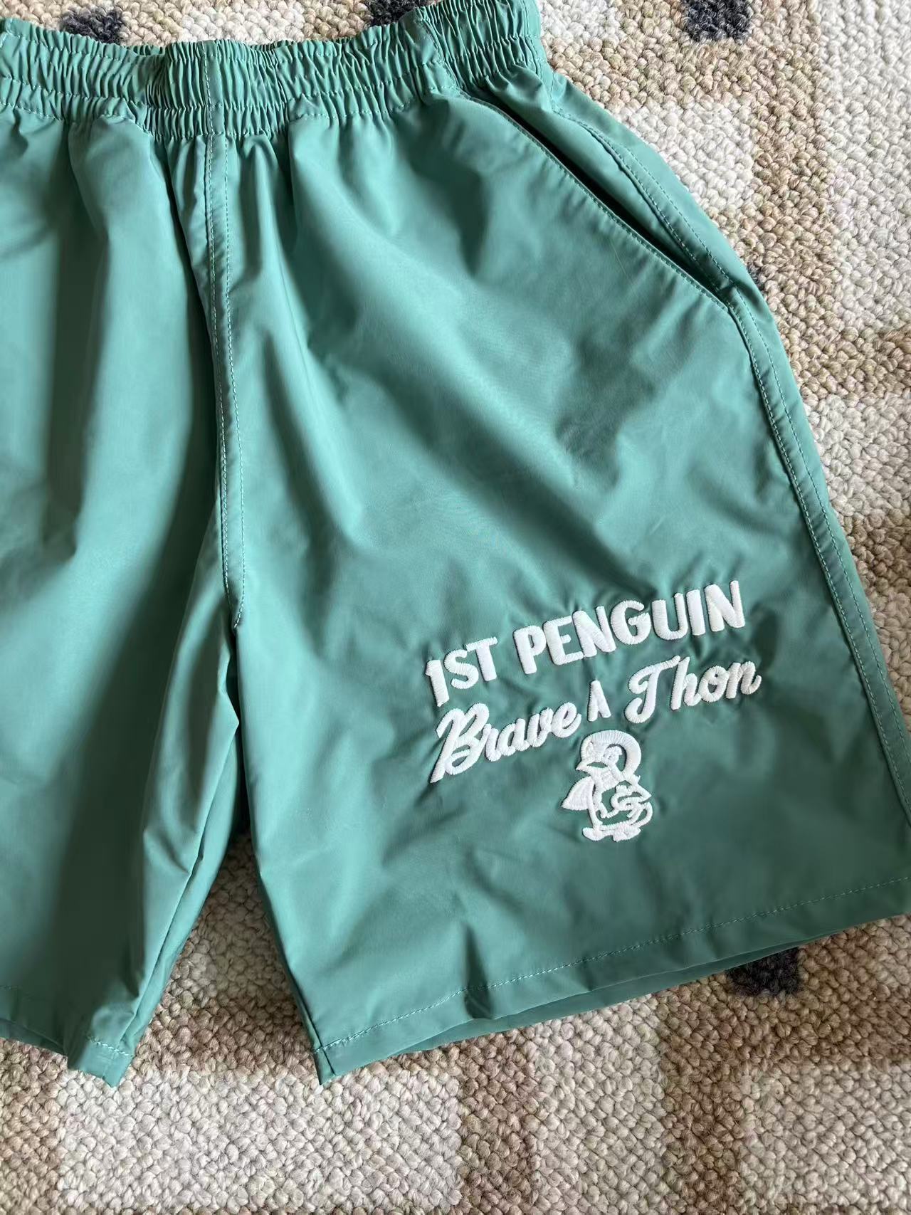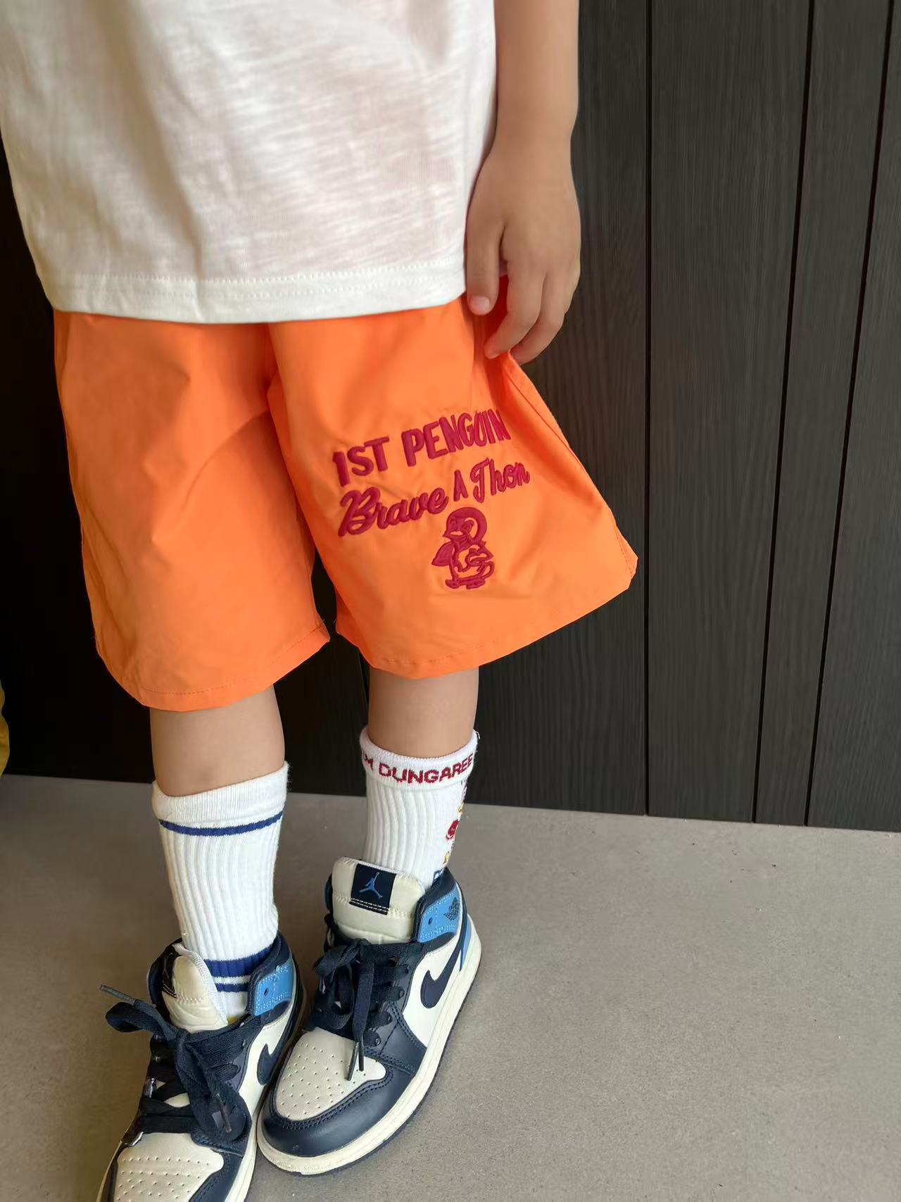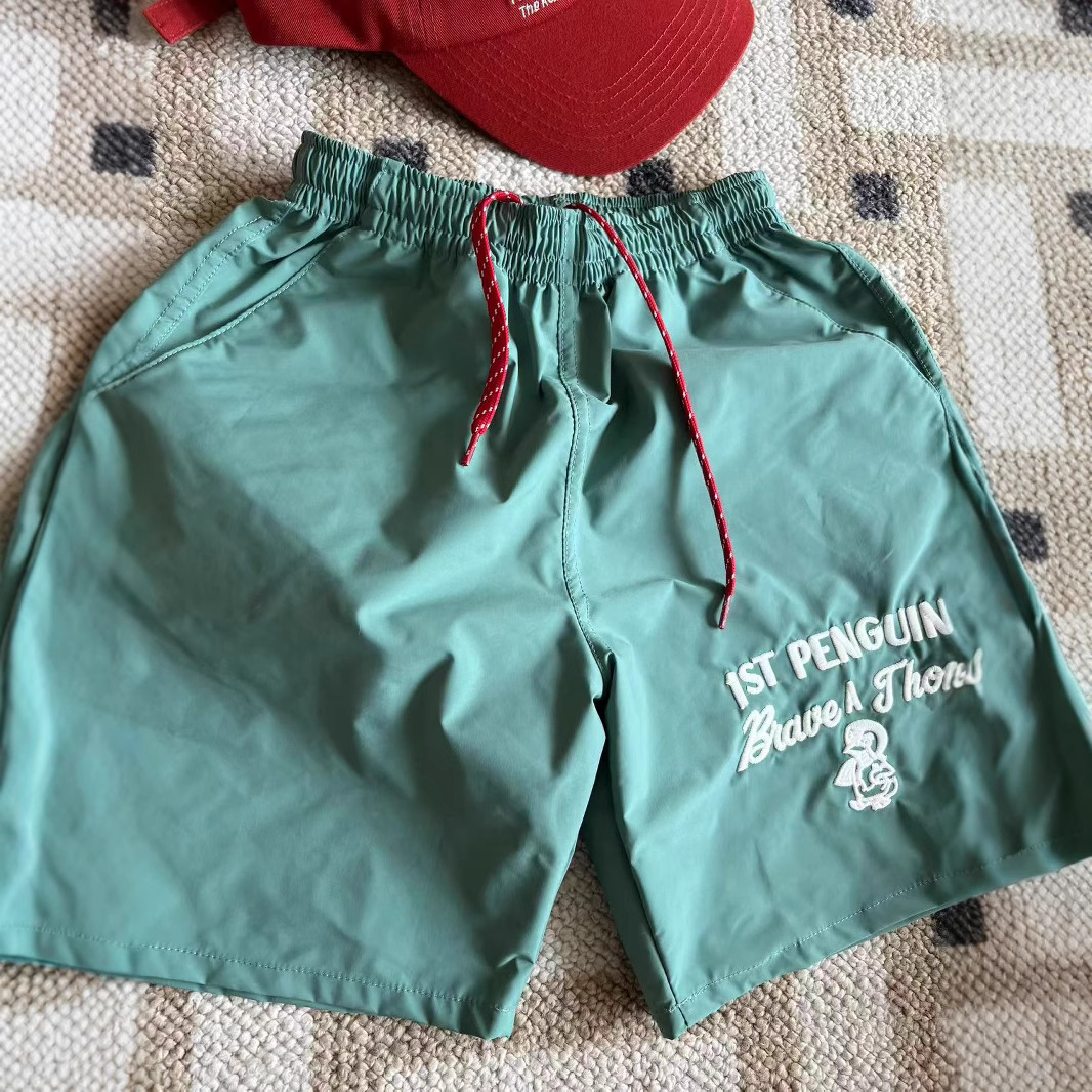 dd 일본 아동복 25 여름 새 스타일 짠 반바지 자수 펭귄 캐주얼 속건성 소년 소녀 비치 반바지