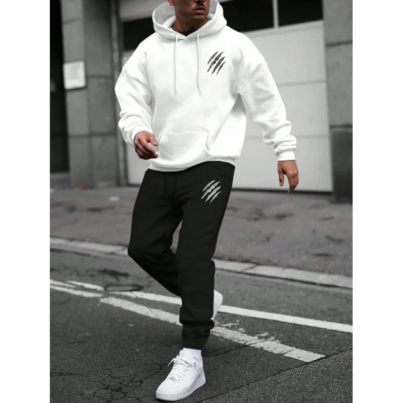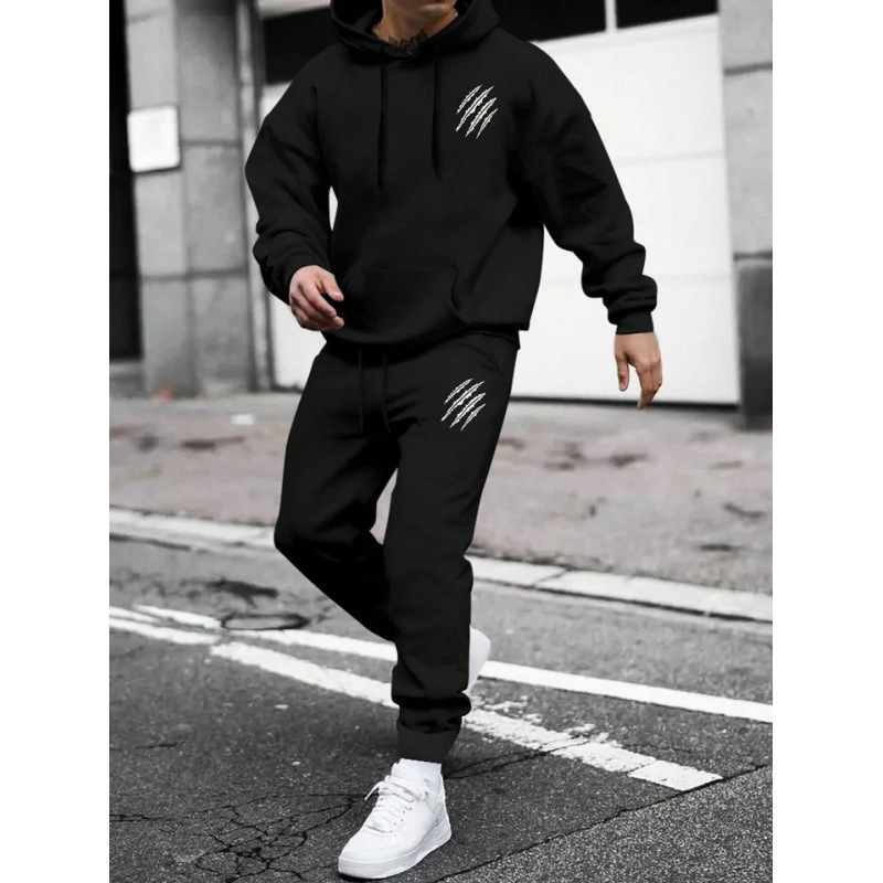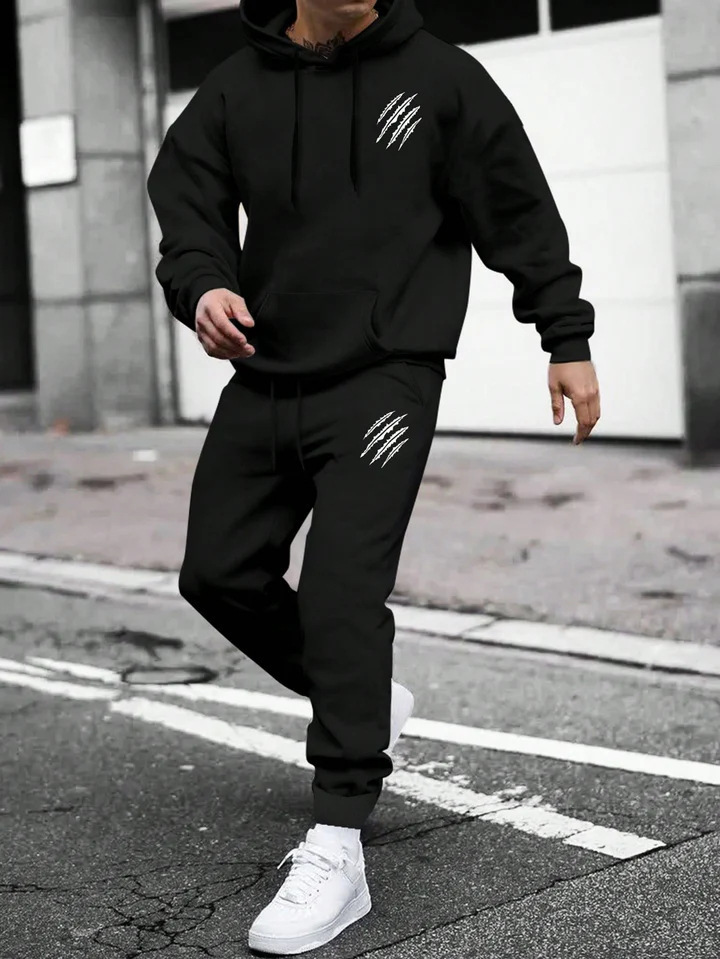 재고 있음 남성 가을, 겨울 운동복 + 바지 동물 발자국 스포츠 정장 여성 패션 캐주얼 스트리트 정장