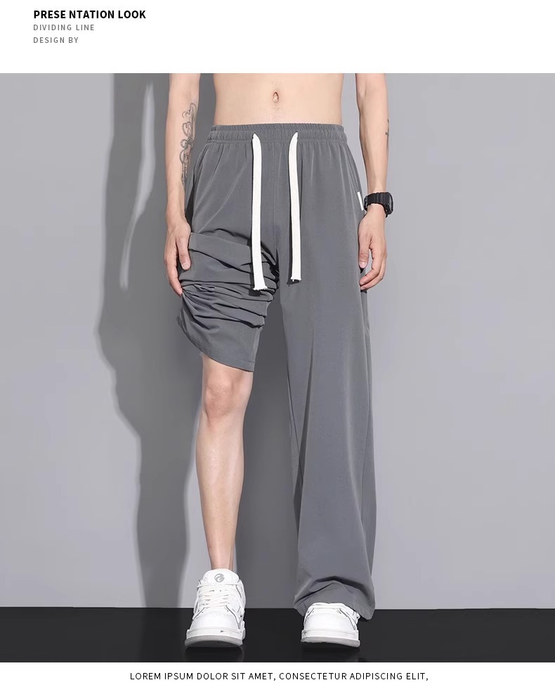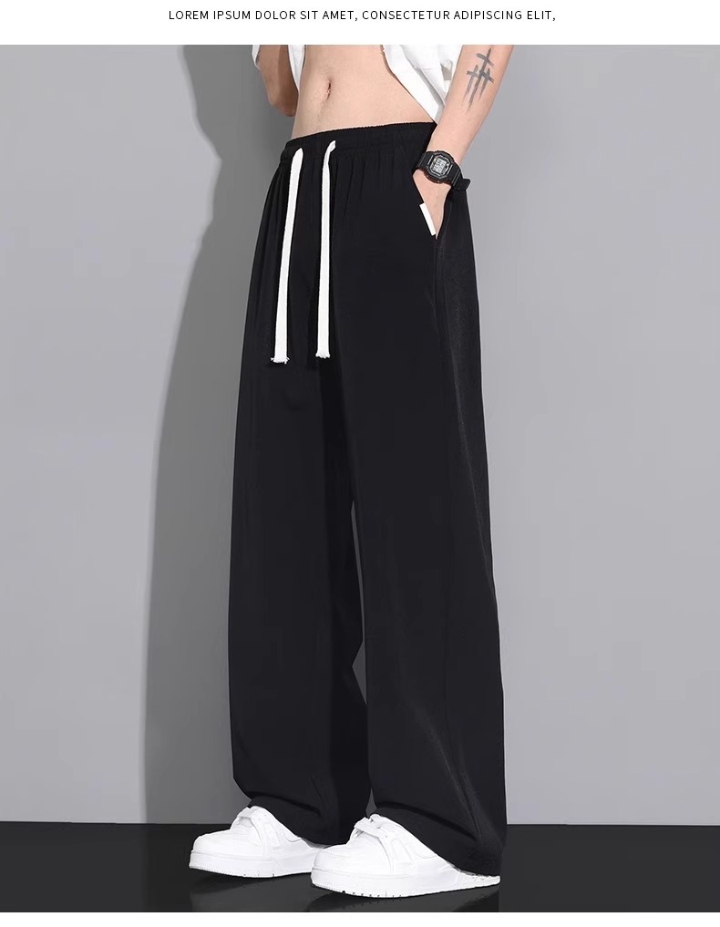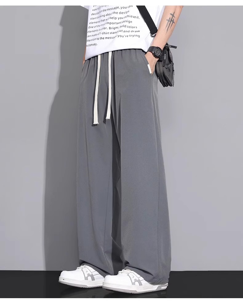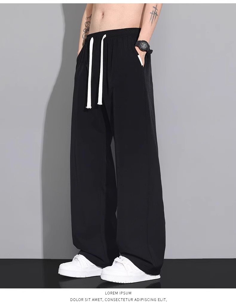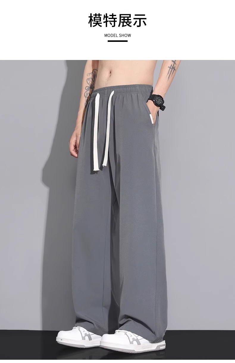 NASA 아이스 실크 캐주얼 팬츠 남성 여름 얇은 스타일 2026 신상 루즈핏 스트레이트 와이드 레그 스포츠 속건 긴바지스토어 가기