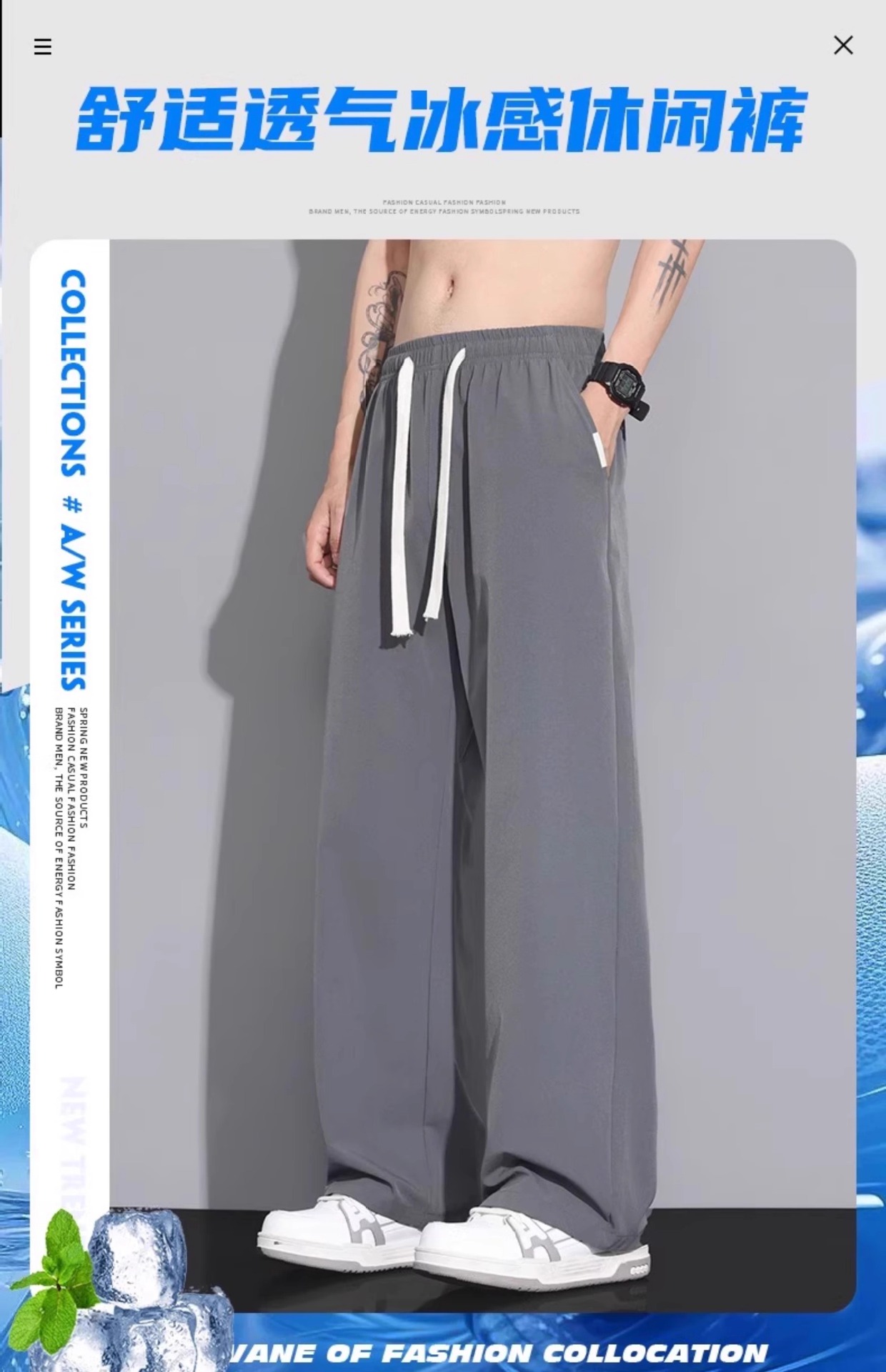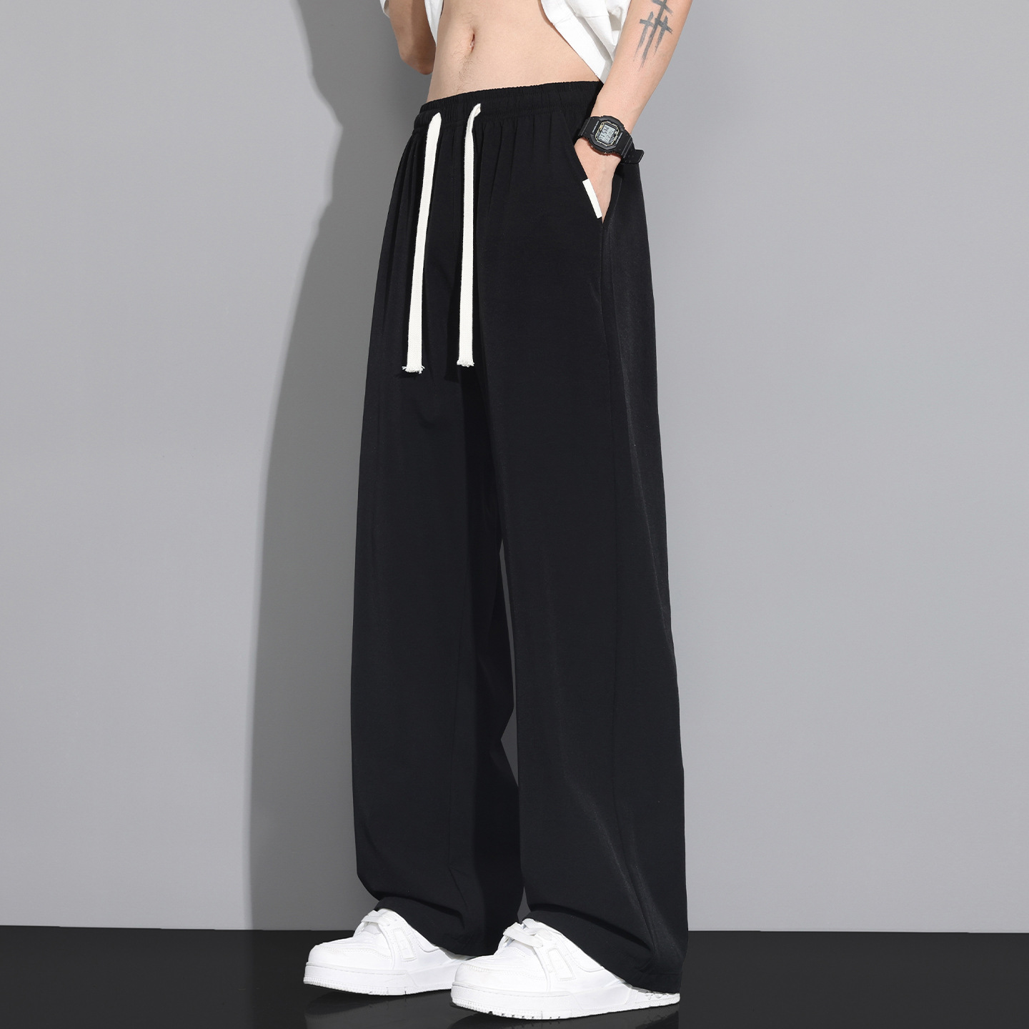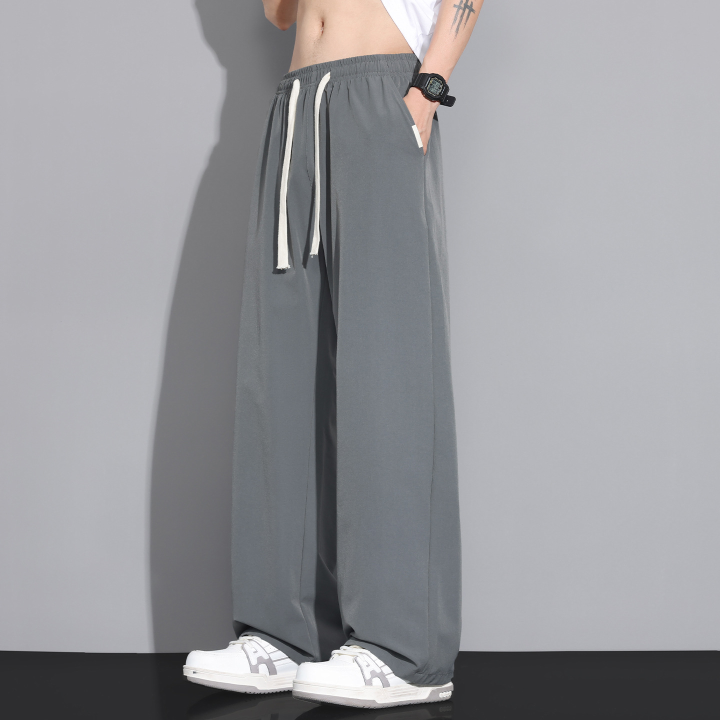 NASA 아이스 실크 캐주얼 팬츠 남성 여름 얇은 스타일 2026 신상 루즈핏 스트레이트 와이드 레그 스포츠 속건 긴바지스토어 가기