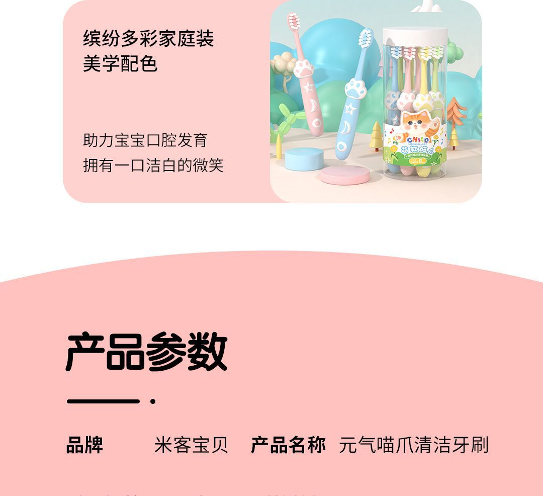 Mikkebaby 어린이용 부드러운 칫솔 3-12세 부드럽고 귀여운 고양이 발톱 가정용 8개의 배럴 제조업체 시작