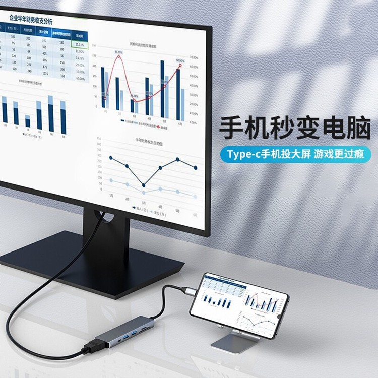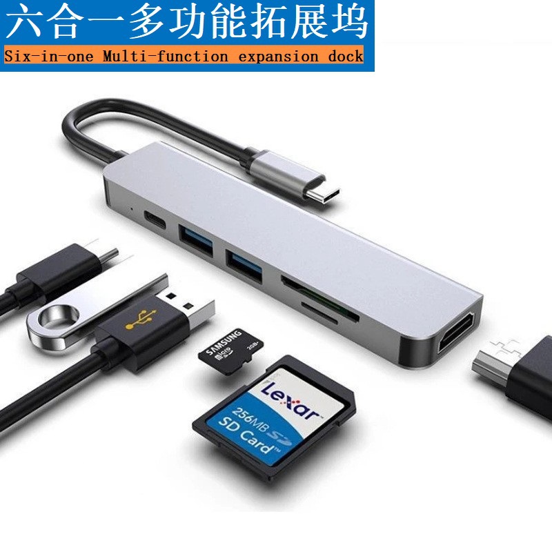국경 간 유형-c 도킹 스테이션 6-in-1 USBC 도킹 스테이션-HDMI 변환기 허브 분배기 카드 리더기스토어 가기