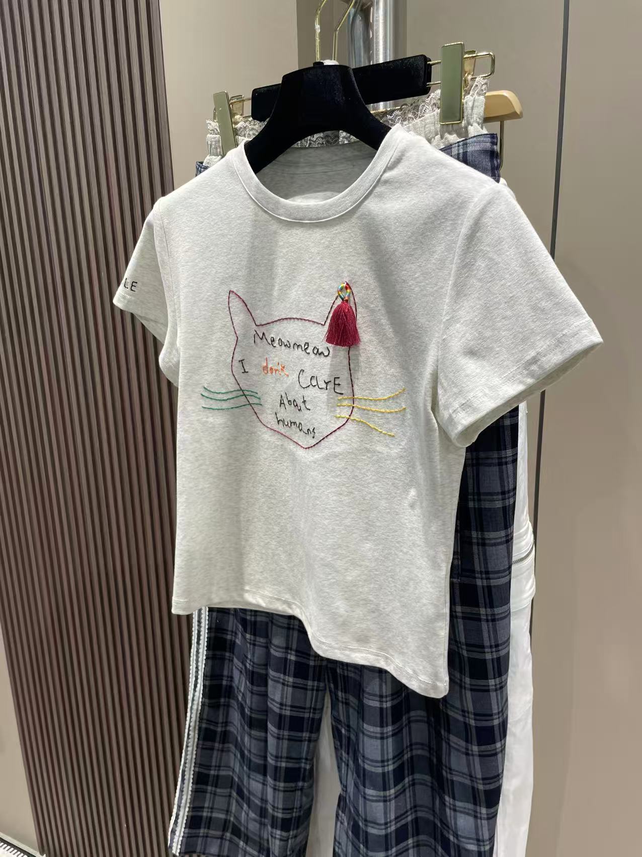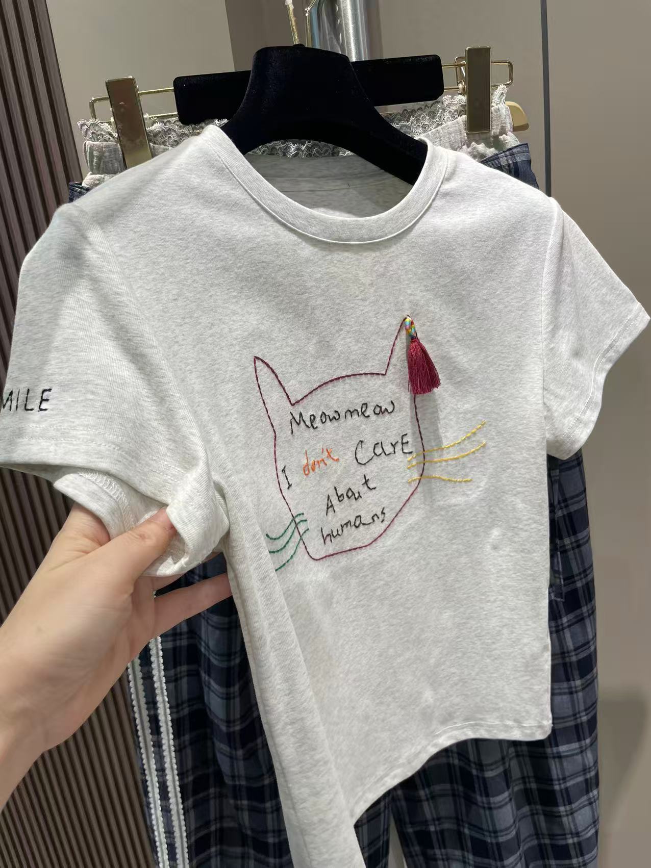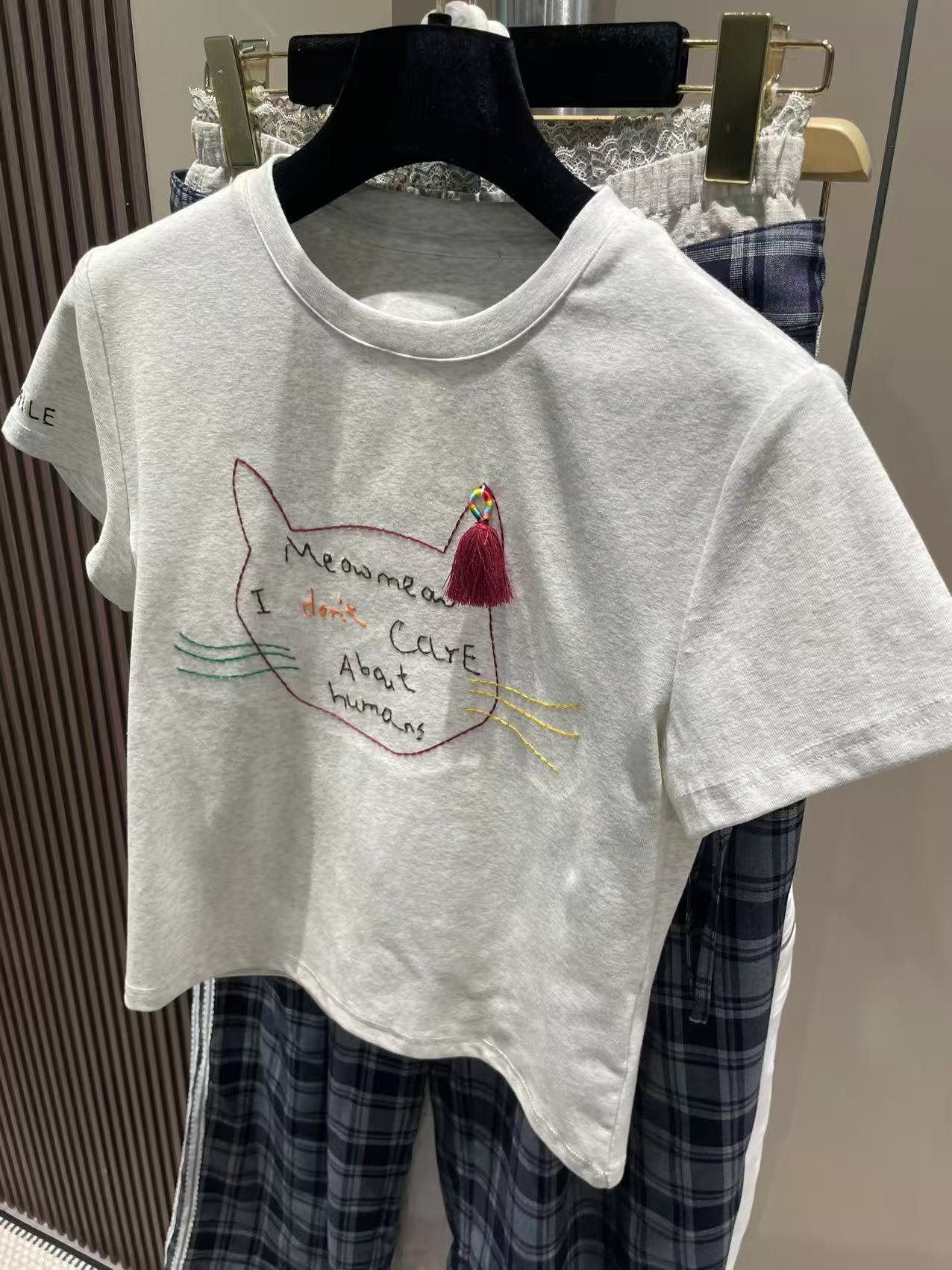Nanyou 고급 상품 - 여름 한국식 새끼 고양이 술 장식, 장난스럽고 귀여운 여성용 반팔 티셔츠 - 공장 공급 - W3481스토어 가기