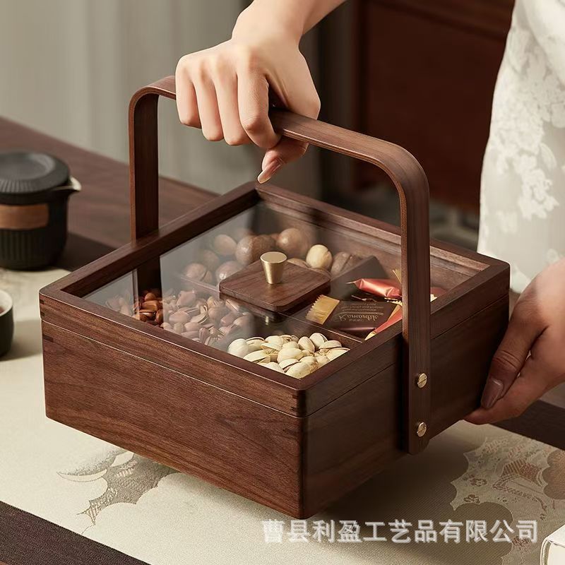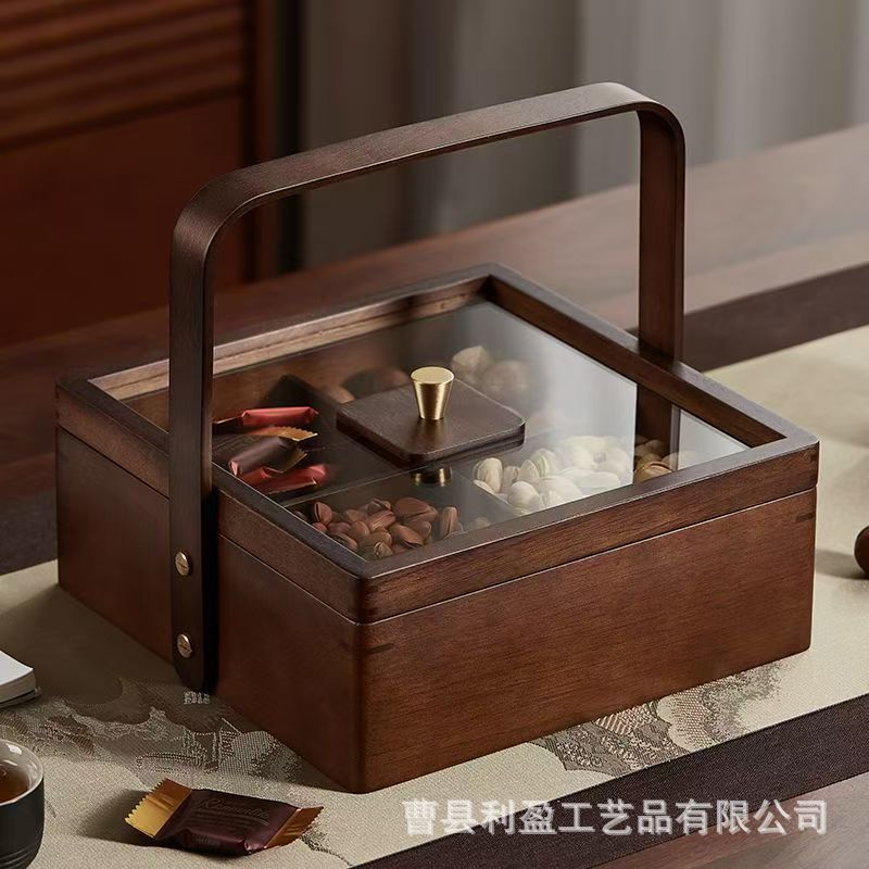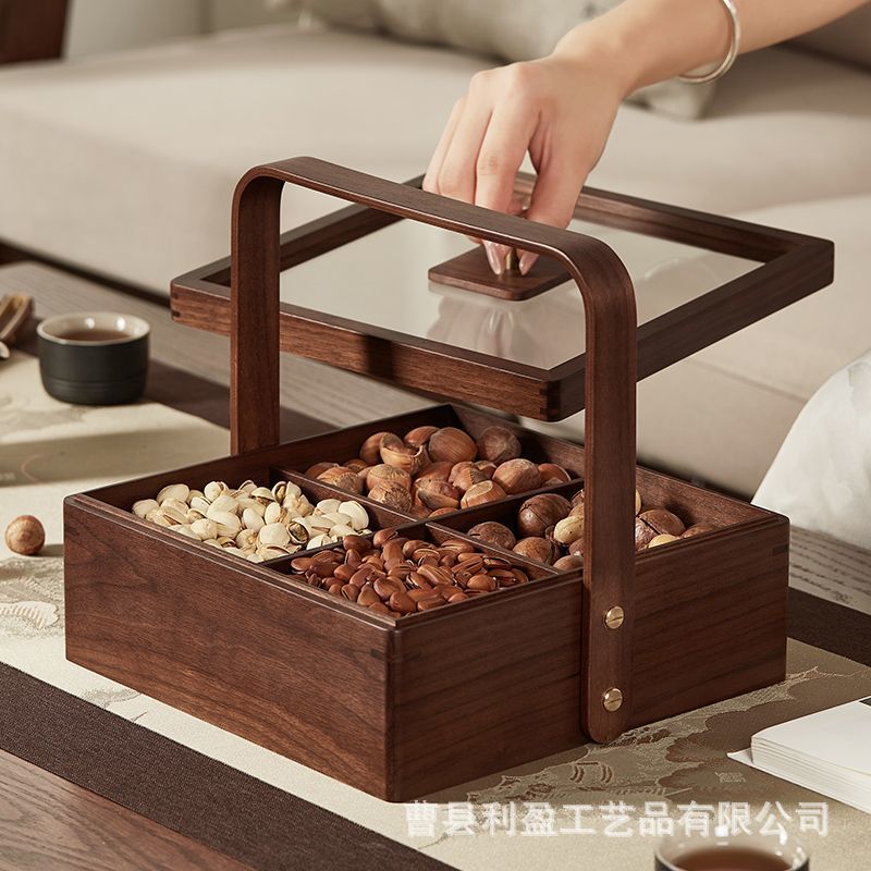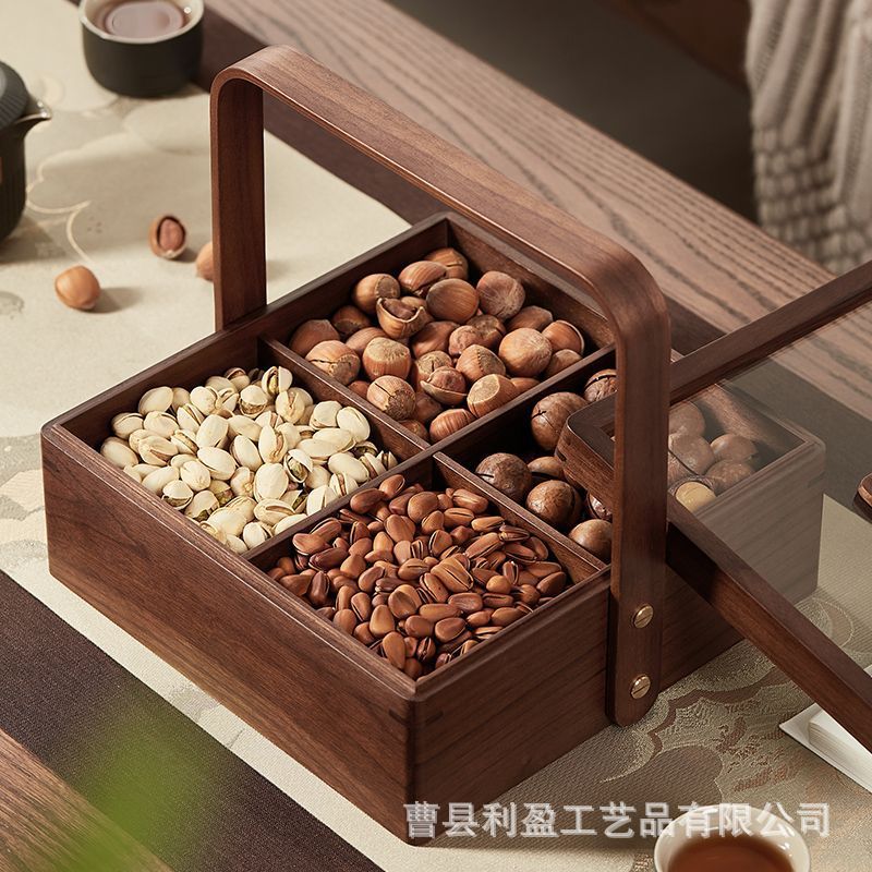 단단한 나무 가벼운 고급 말린 과일 접시 사탕 상자 중국 견과류 말린 과일 접시 휴대용 결혼식 연회 사각형 그리드 조기 아기 접시스토어 가기