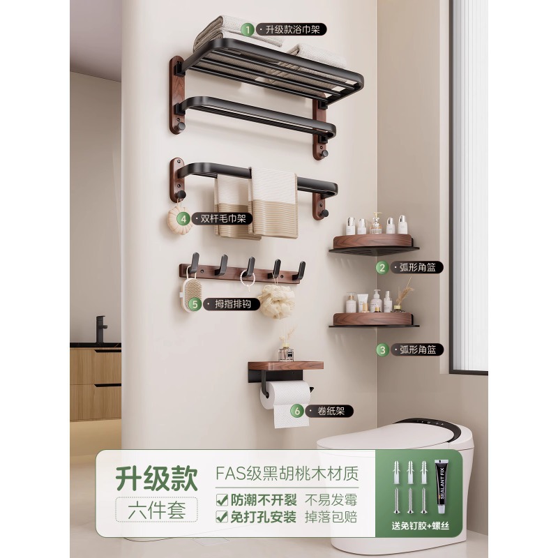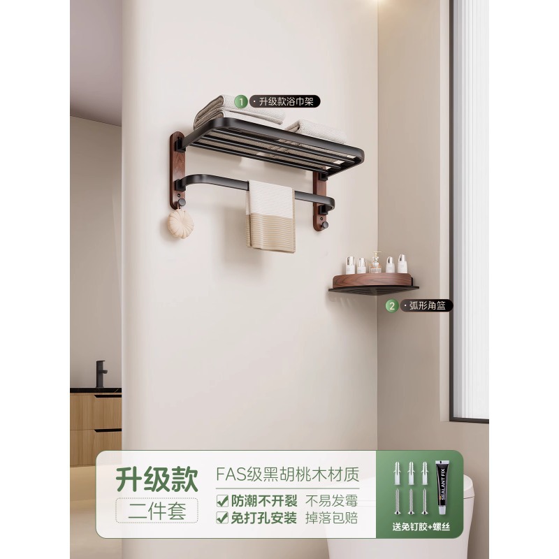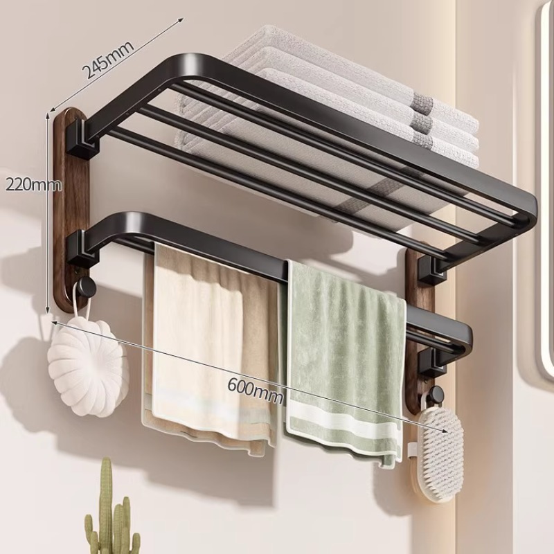• 【업그레이드 버전】 월넛 목재 수건걸이 60CM (타공/무타공 겸용 설치)