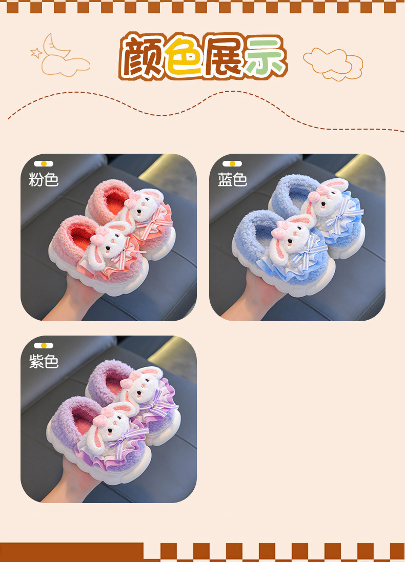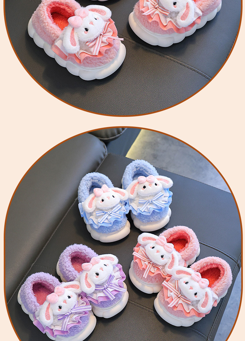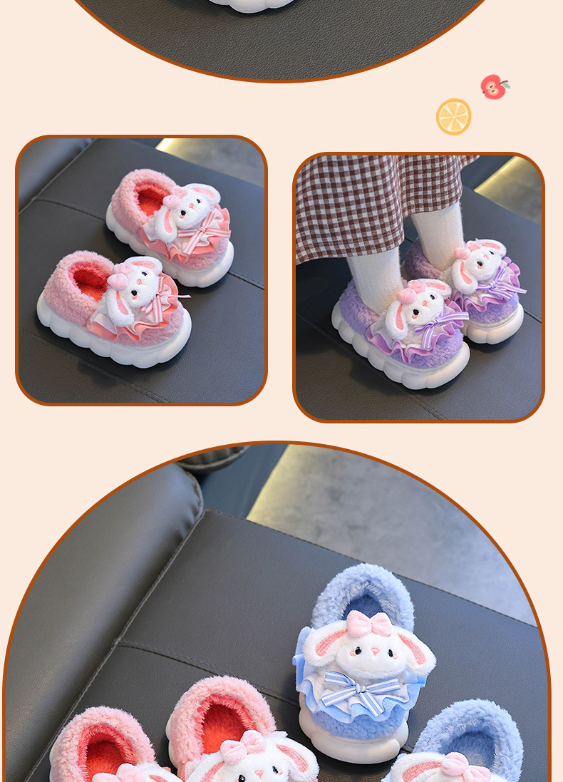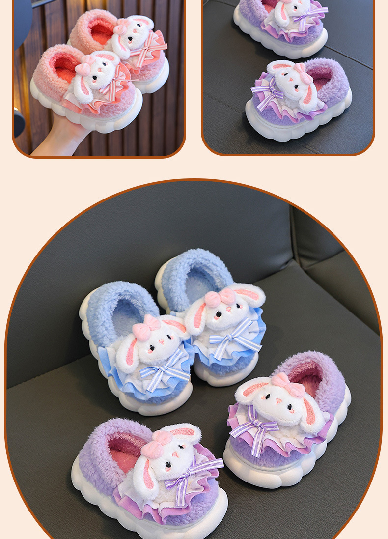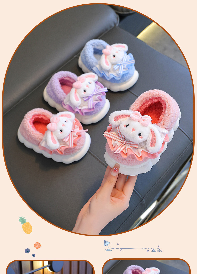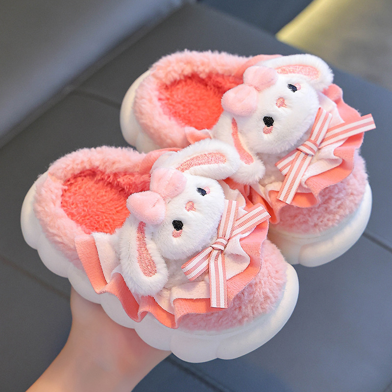 어린이 면화 슬리퍼 소녀 2024 새로운 겨울 부모-자식 플러시 따뜻한 실내 소녀 아기 슬리퍼