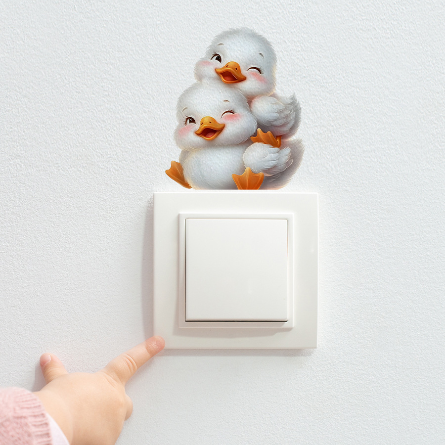 HS-S32 흰색 작은 오리 만화 자체 접착 스위치 스티커 홈 소켓 전등 스위치 장식 특수 벽 스티커