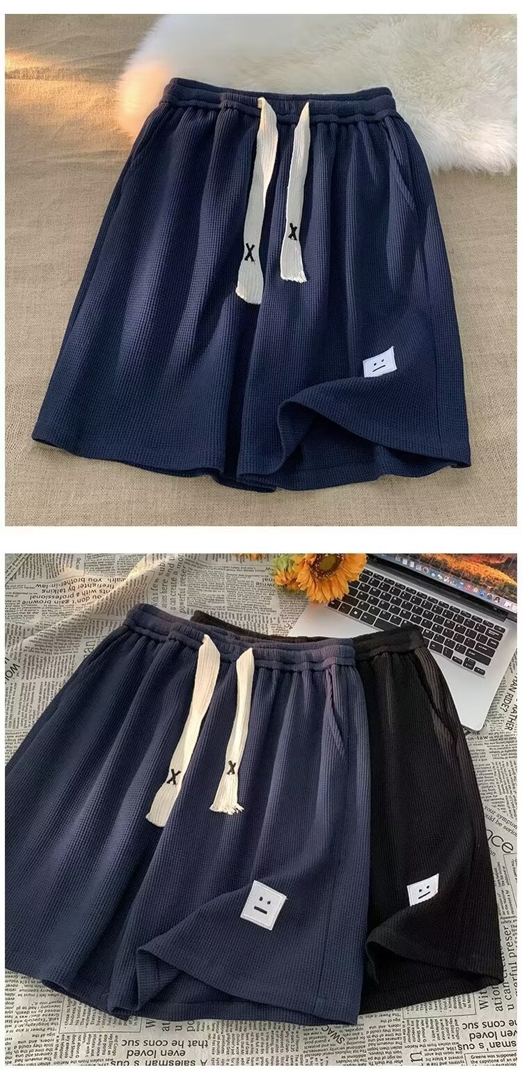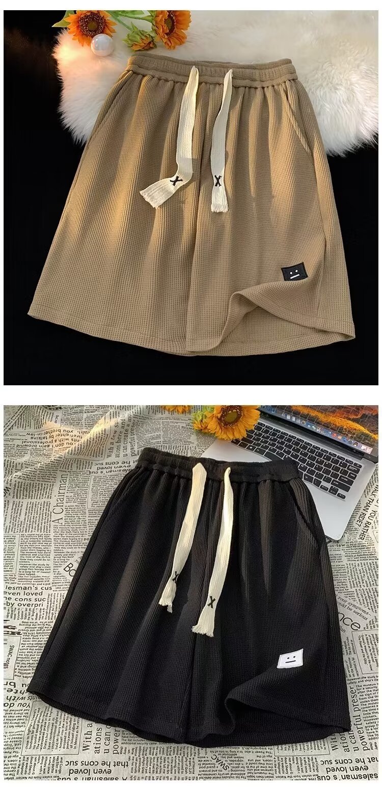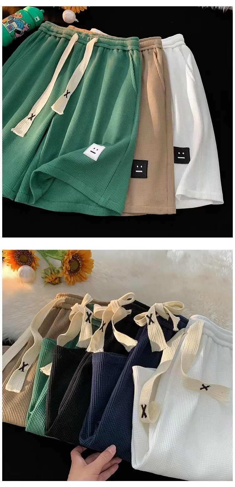 남성용 크로스보더 와플 반바지, 여름용 얇은 비치 팬츠, 러닝 스포츠 팬츠, 남성용 루즈 캐주얼 5부 팬츠