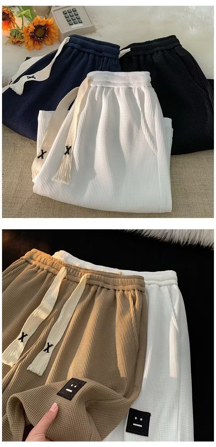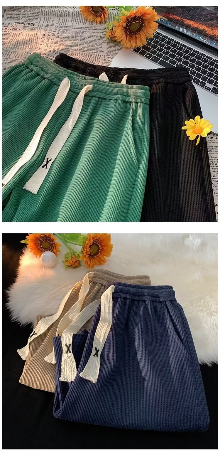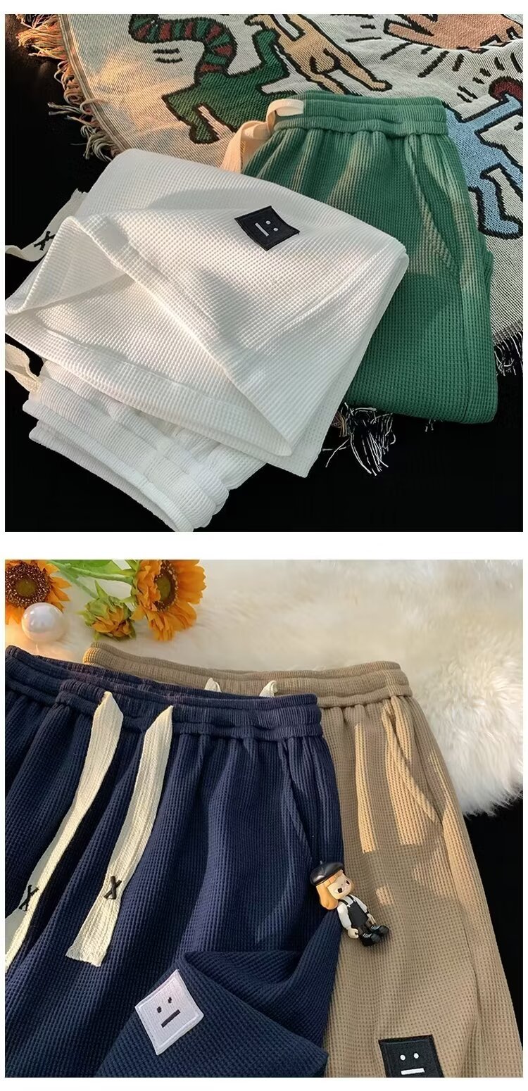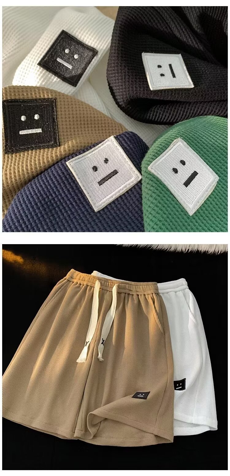 남성용 크로스보더 와플 반바지, 여름용 얇은 비치 팬츠, 러닝 스포츠 팬츠, 남성용 루즈 캐주얼 5부 팬츠