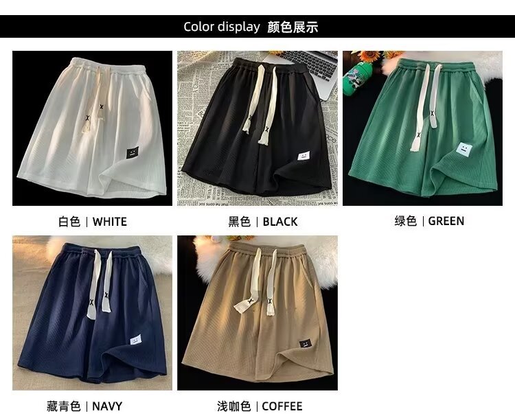 남성용 크로스보더 와플 반바지, 여름용 얇은 비치 팬츠, 러닝 스포츠 팬츠, 남성용 루즈 캐주얼 5부 팬츠스토어 가기