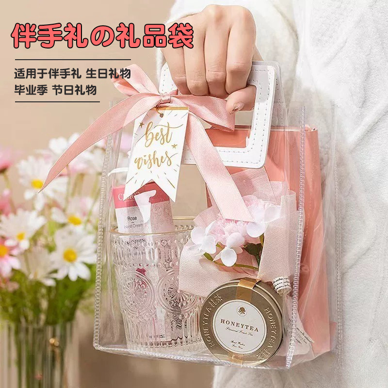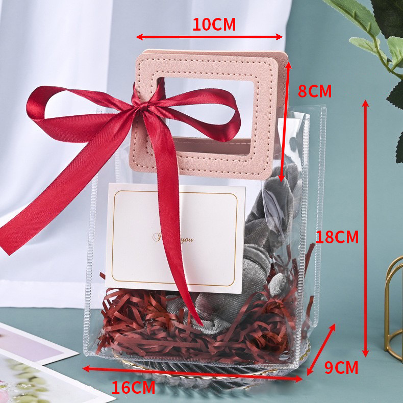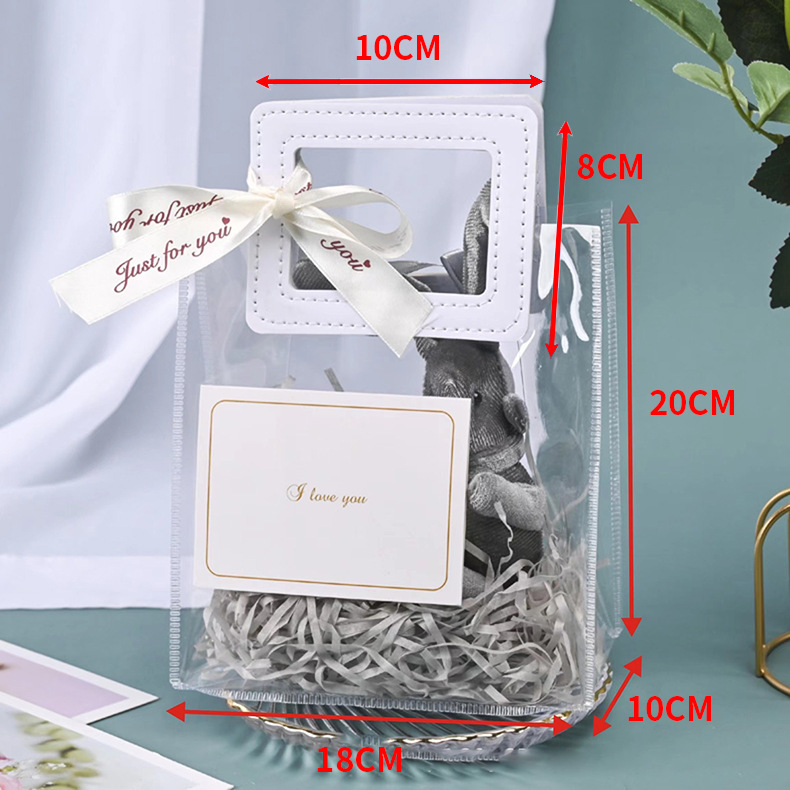 투명 PVC 핸드백 고급 선물 쇼핑백 생일 플라스틱 웨딩 기념품 가방 꽃 장식품 가방