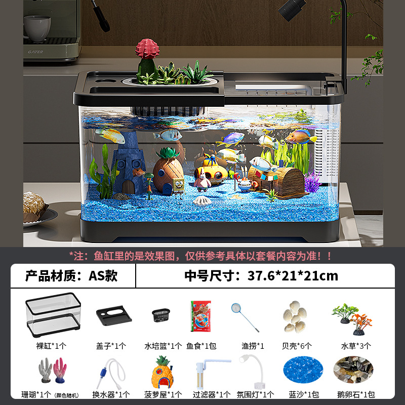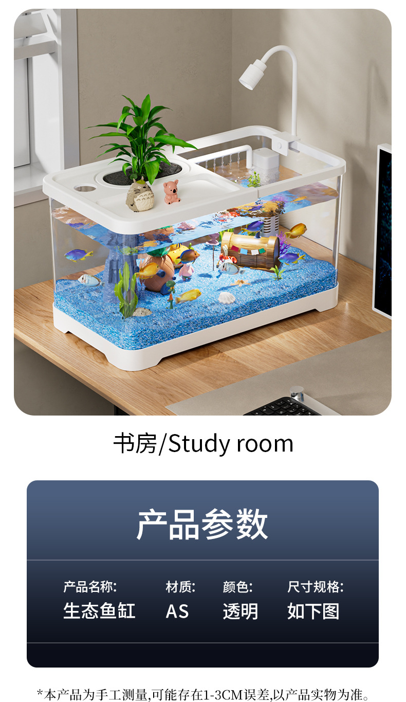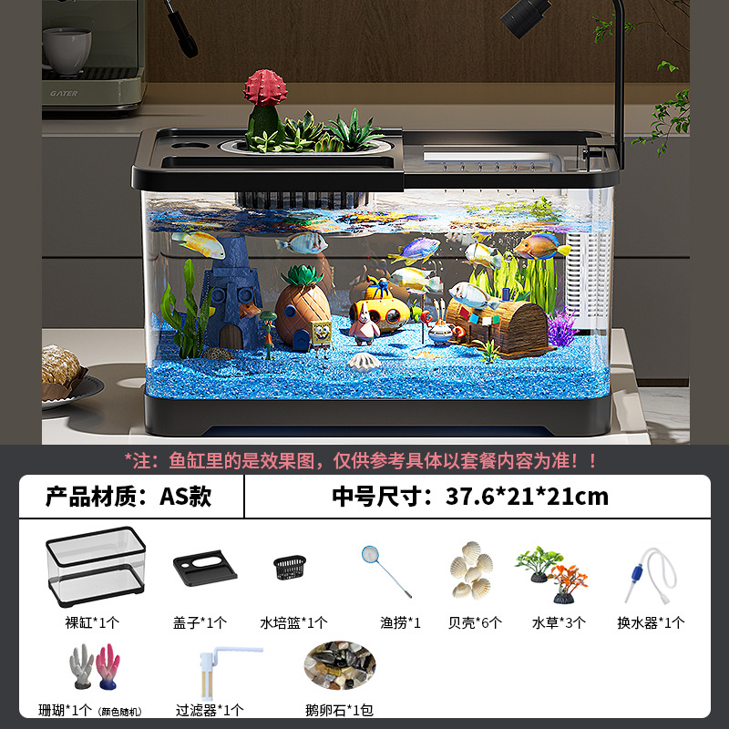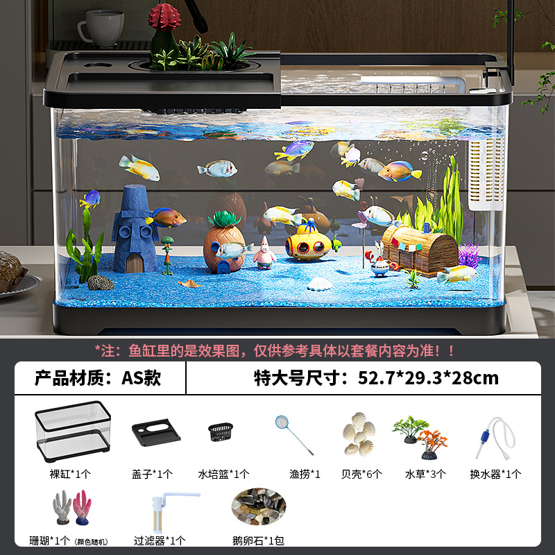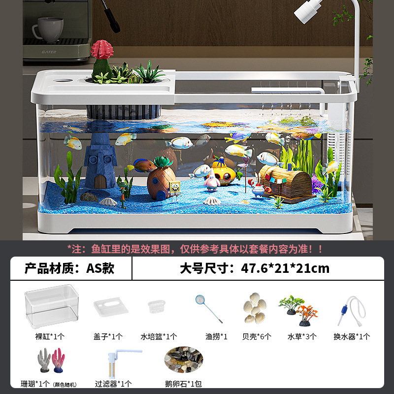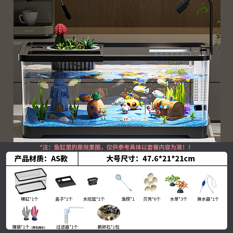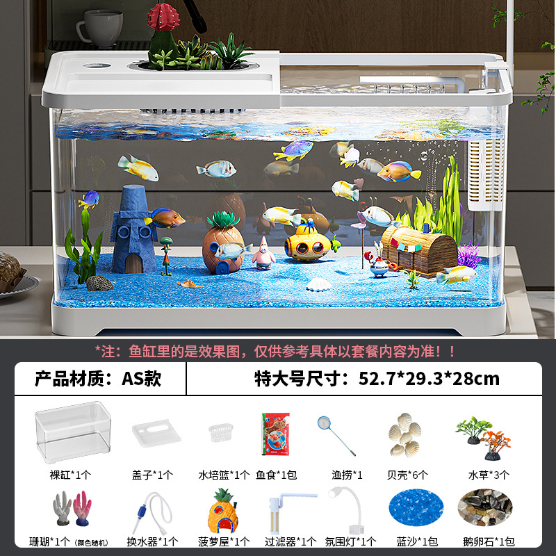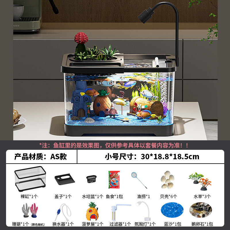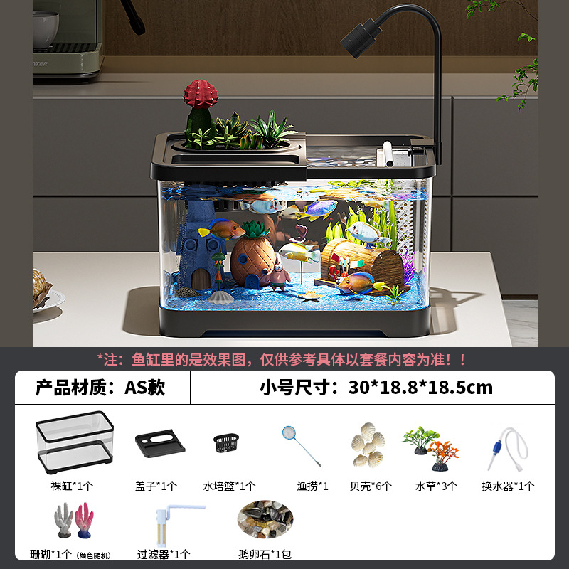 가정용 수족관, 거실 데스크탑 생태 조경 금붕어 수조, 자가 순환 스트림 탱크, 사무실용 고투명 벡터 탱크스토어 가기
