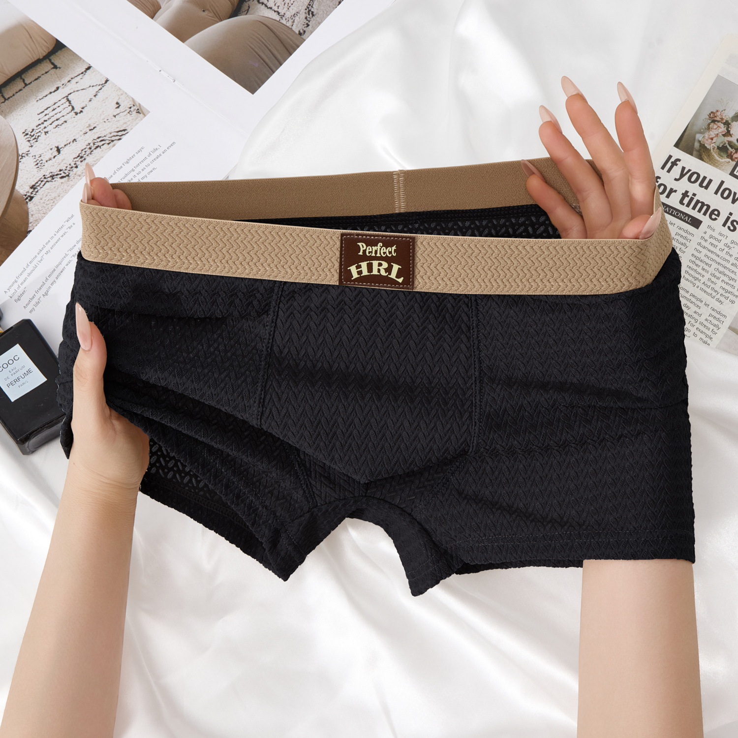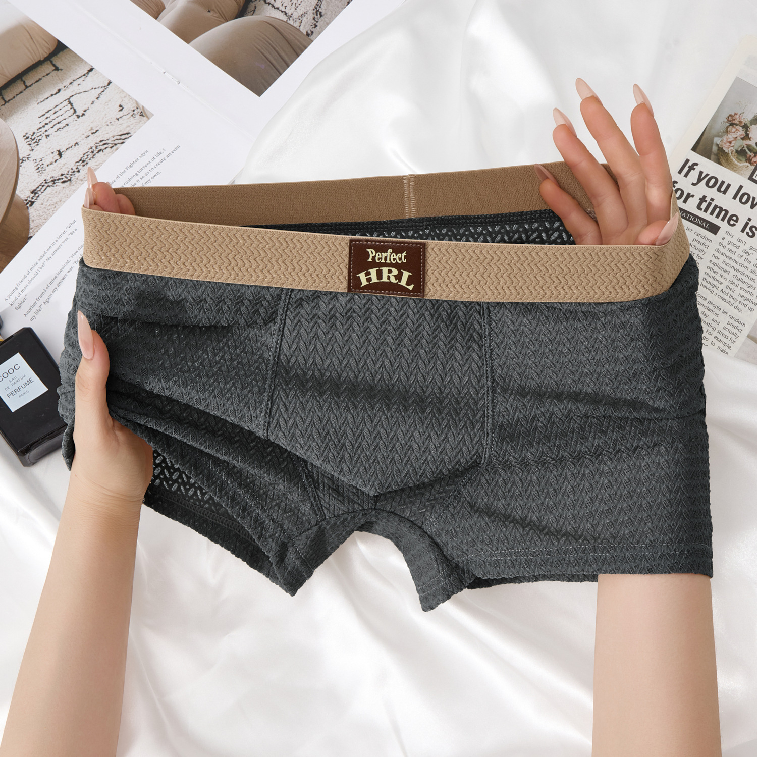 새로운 편안한 나일론 얼음 실크 남자 속옷 패션 메쉬 요소 통기성 복서 팬티 중간 허리 도매