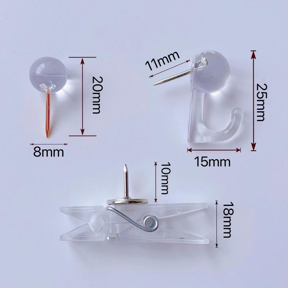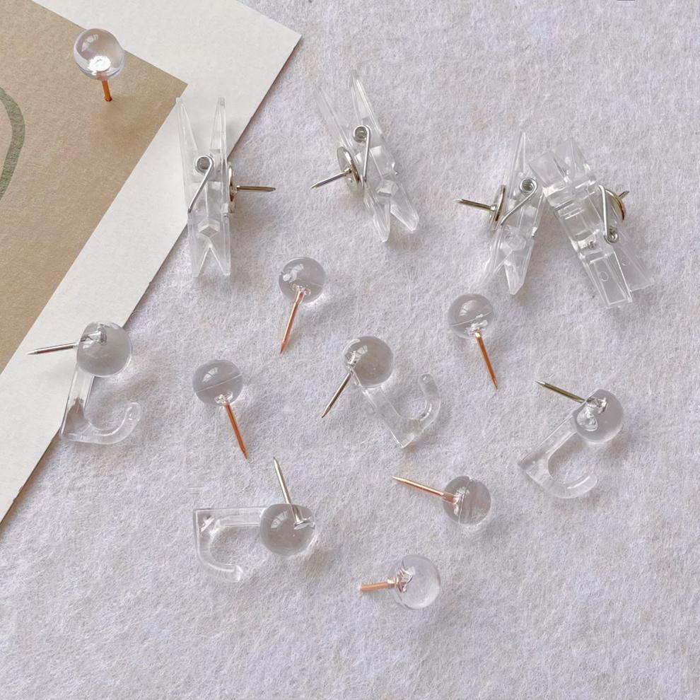투명 압정, 고급스러운 투명 후크 클립, 둥근 공, 다기능 아트 네일, 코르크 보드, 펠트 압정