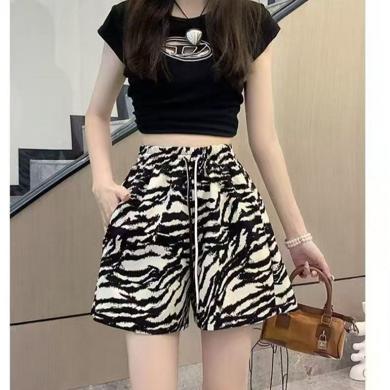 초대형 300 얼룩말 신상 와이드 레그 반바지 여름 얇은 슬리밍 루즈 캐주얼 하이 웨이스트 스포츠 바지 핫팬츠스토어 가기
