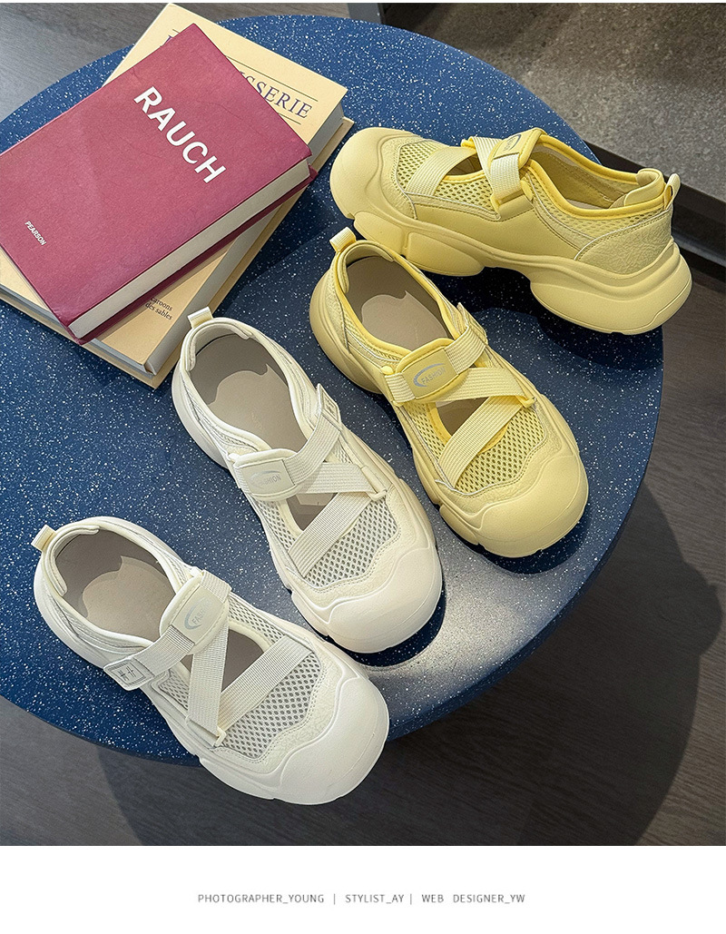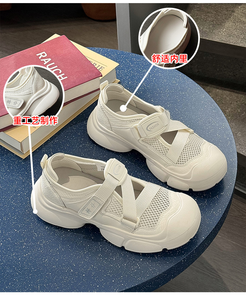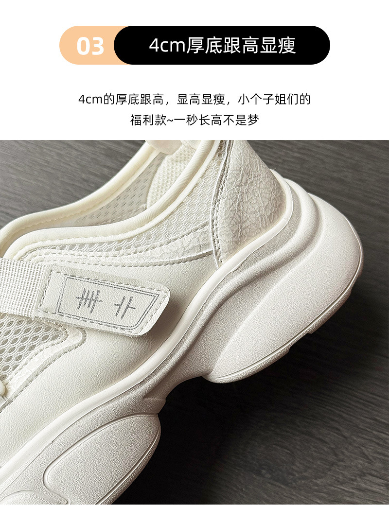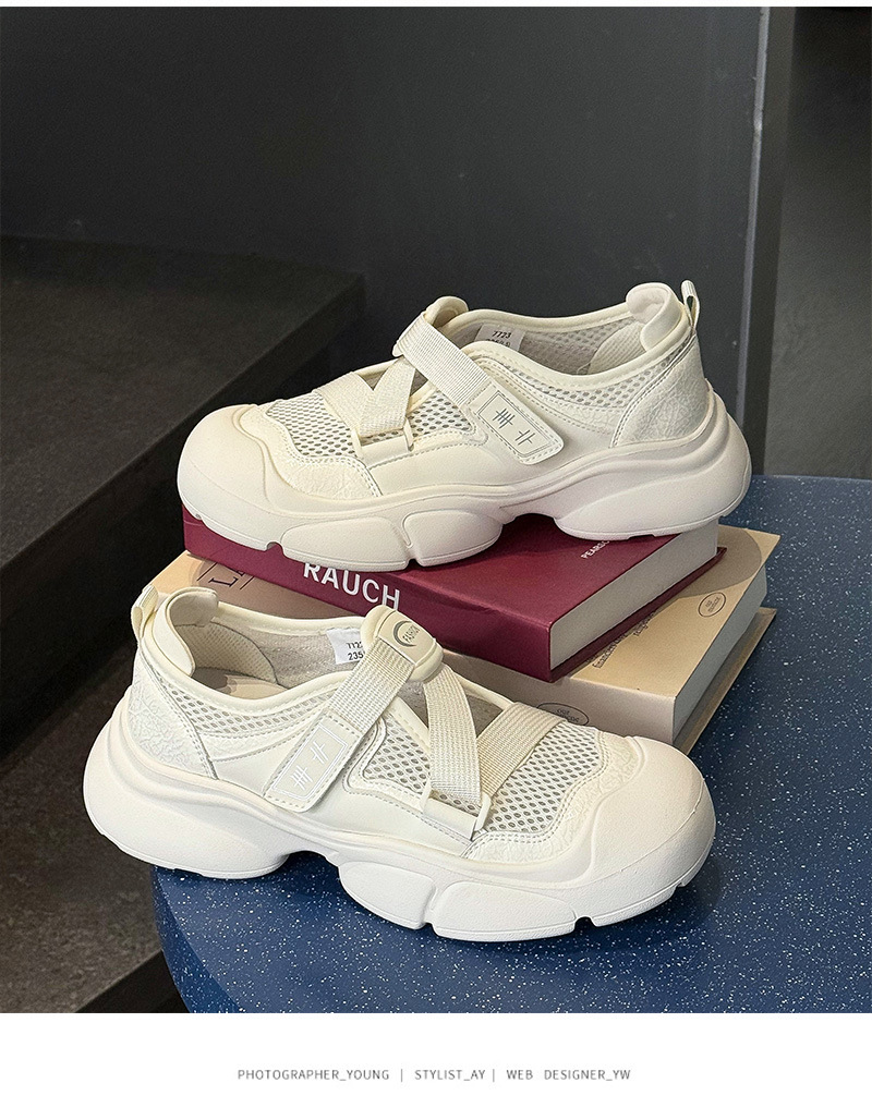 여성을위한 두꺼운 밑창 높이 증가 아빠 신발 2025 여름 얇은 메쉬 통기성 중공 리버 트레이싱 신발 벨크로 캐주얼 샌들스토어 가기