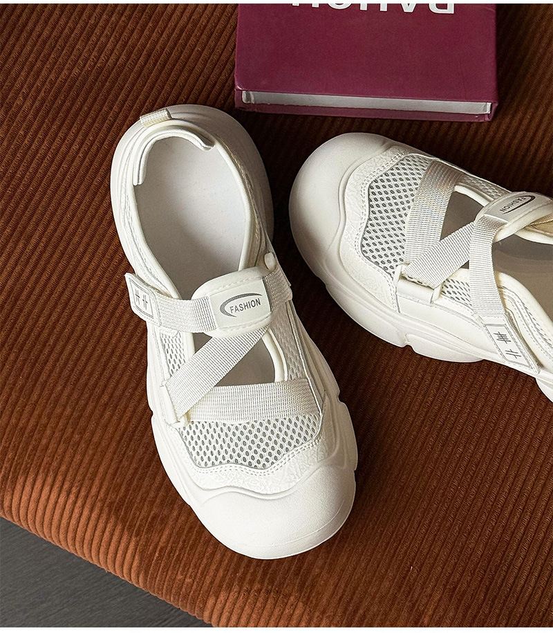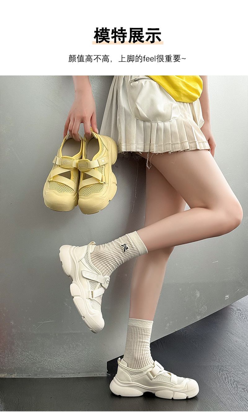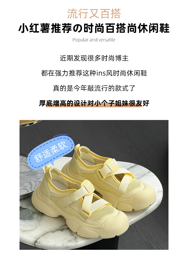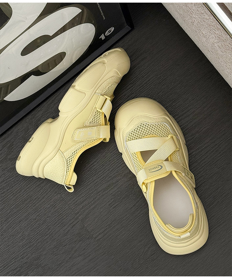 여성을위한 두꺼운 밑창 높이 증가 아빠 신발 2025 여름 얇은 메쉬 통기성 중공 리버 트레이싱 신발 벨크로 캐주얼 샌들스토어 가기