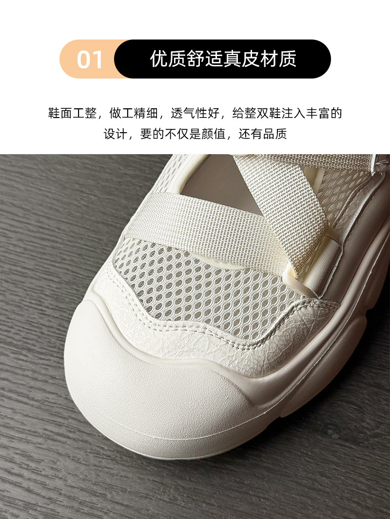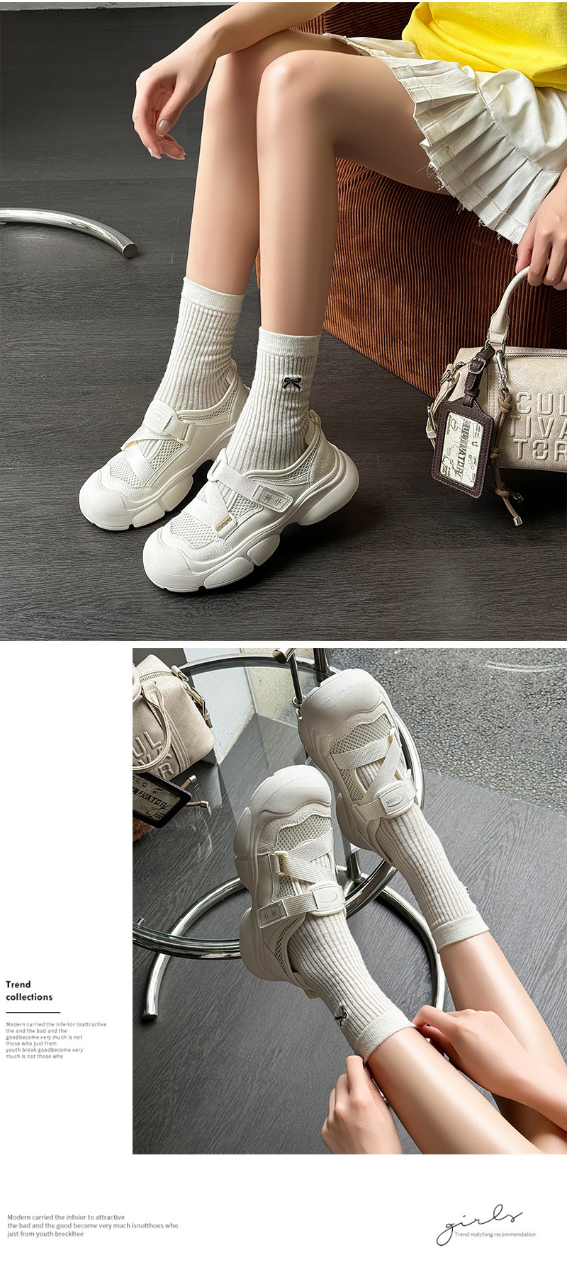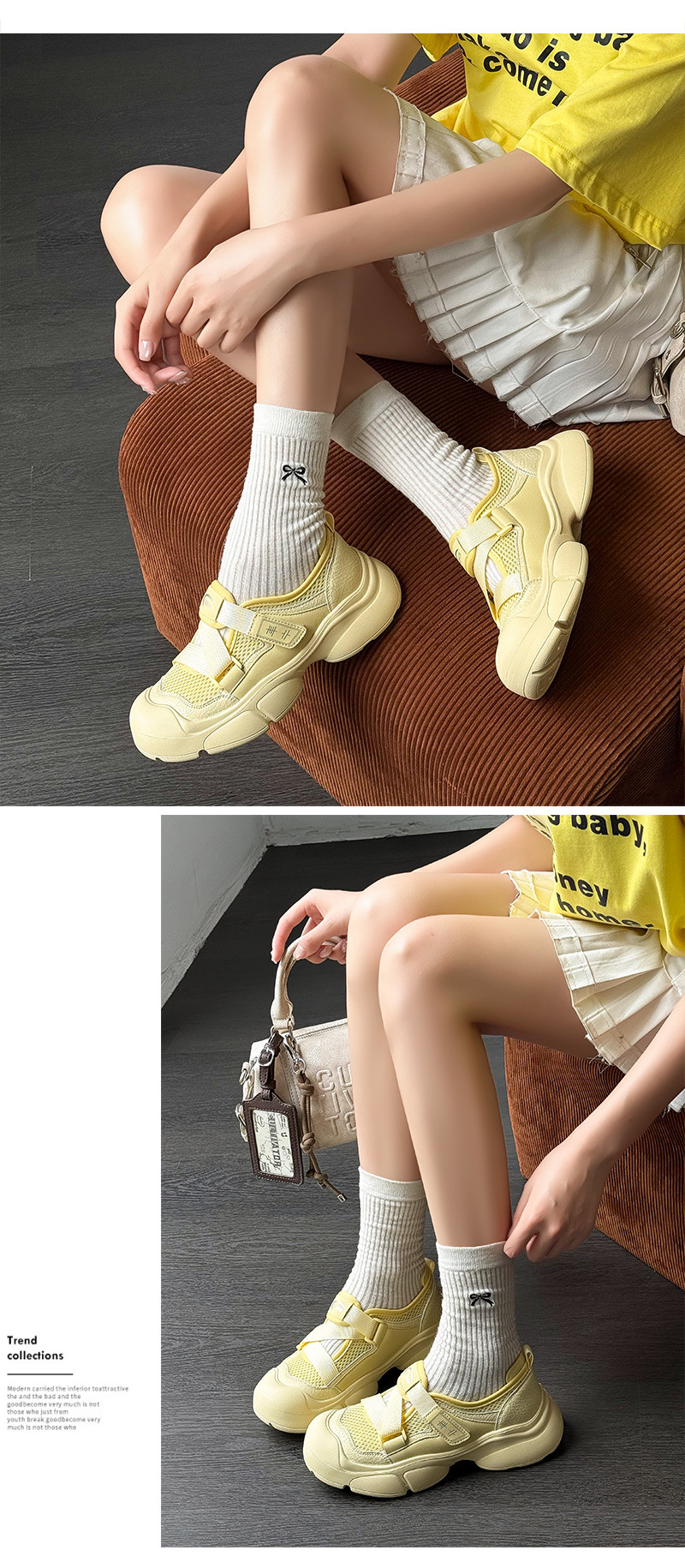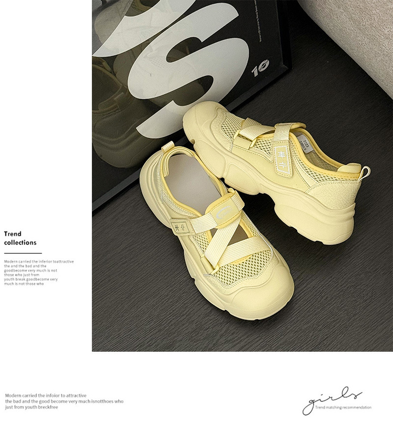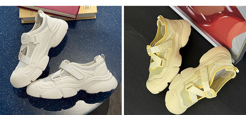여성을위한 두꺼운 밑창 높이 증가 아빠 신발 2025 여름 얇은 메쉬 통기성 중공 리버 트레이싱 신발 벨크로 캐주얼 샌들
