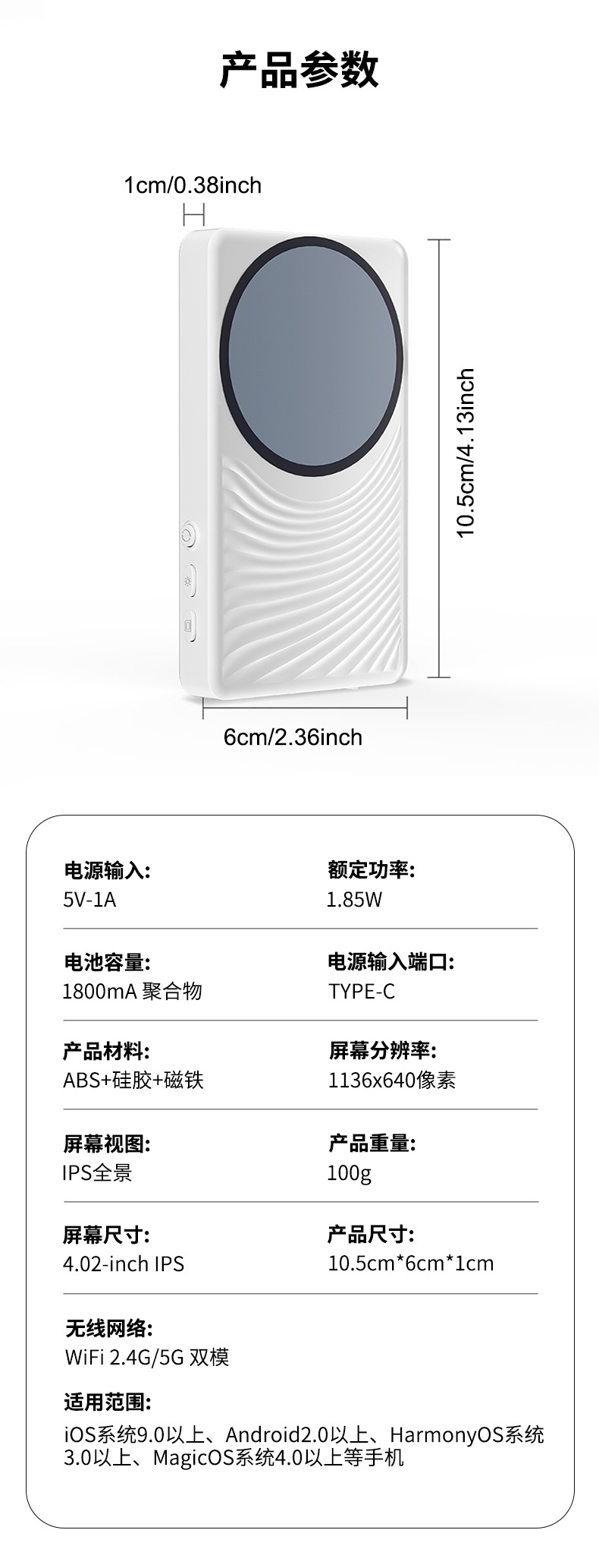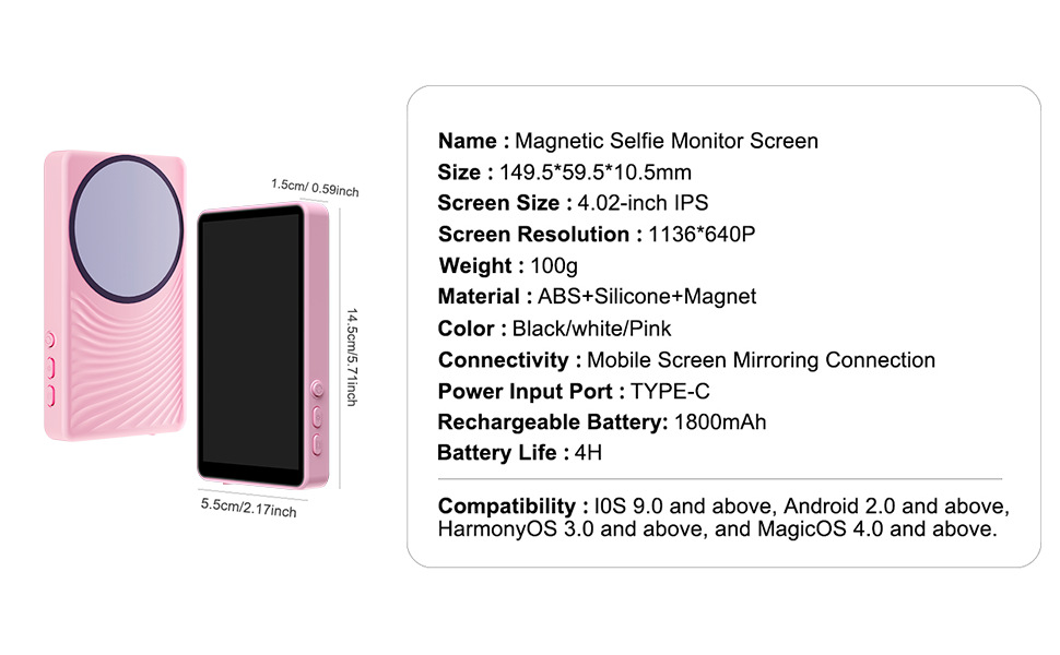 새로운 국경 간 무선 블루투스 셀카 디스플레이 화면 휴대 전화 후면 셀카 화면 자기 휴대 전화 셀카 화면스토어 가기