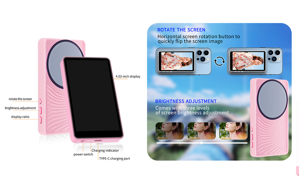 새로운 국경 간 무선 블루투스 셀카 디스플레이 화면 휴대 전화 후면 셀카 화면 자기 휴대 전화 셀카 화면