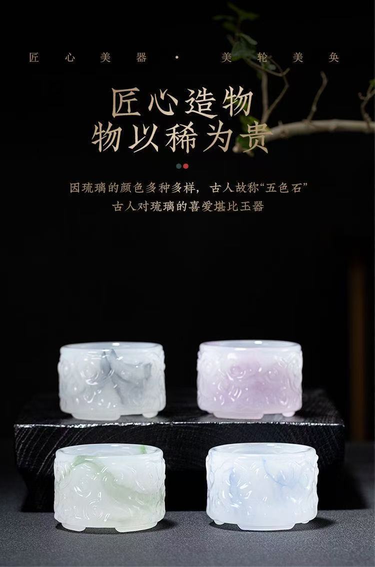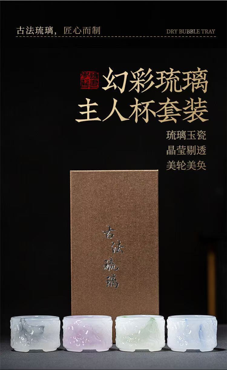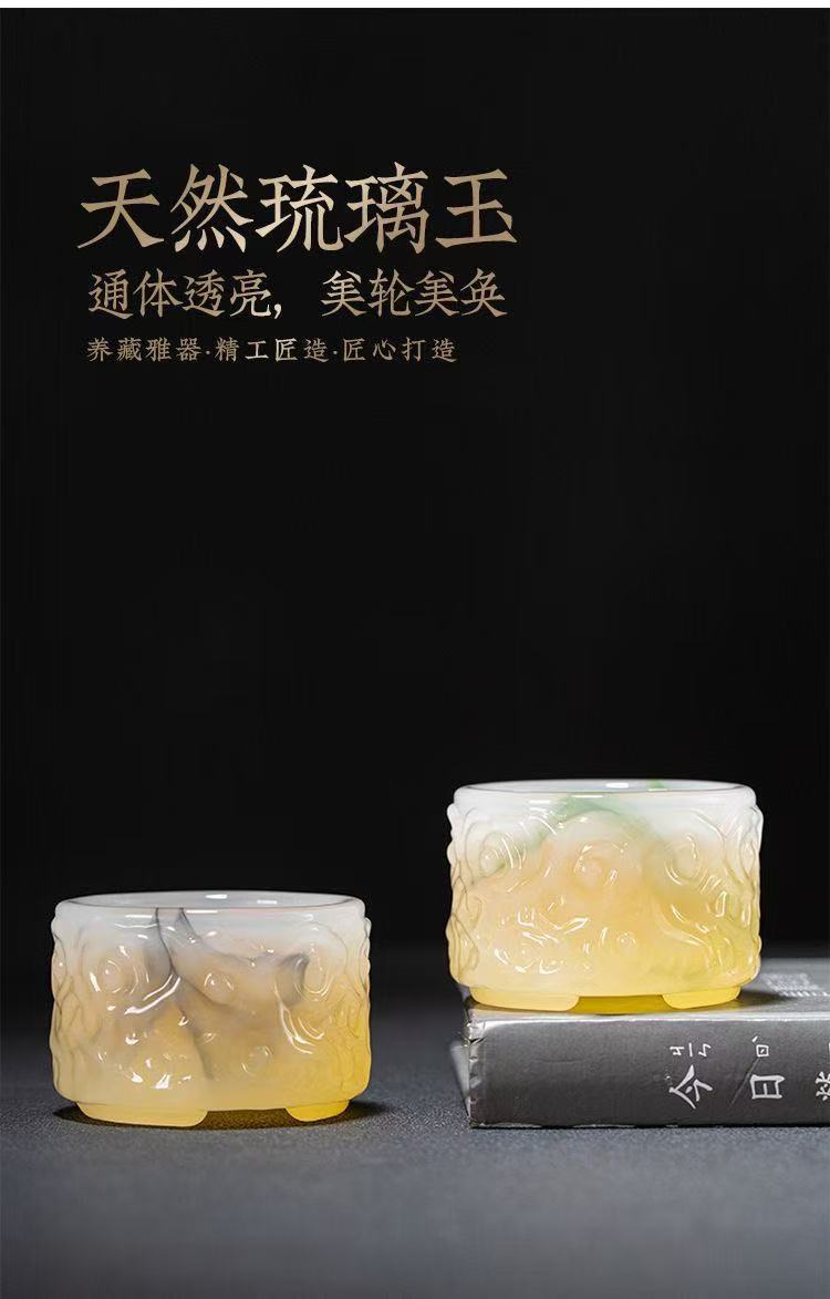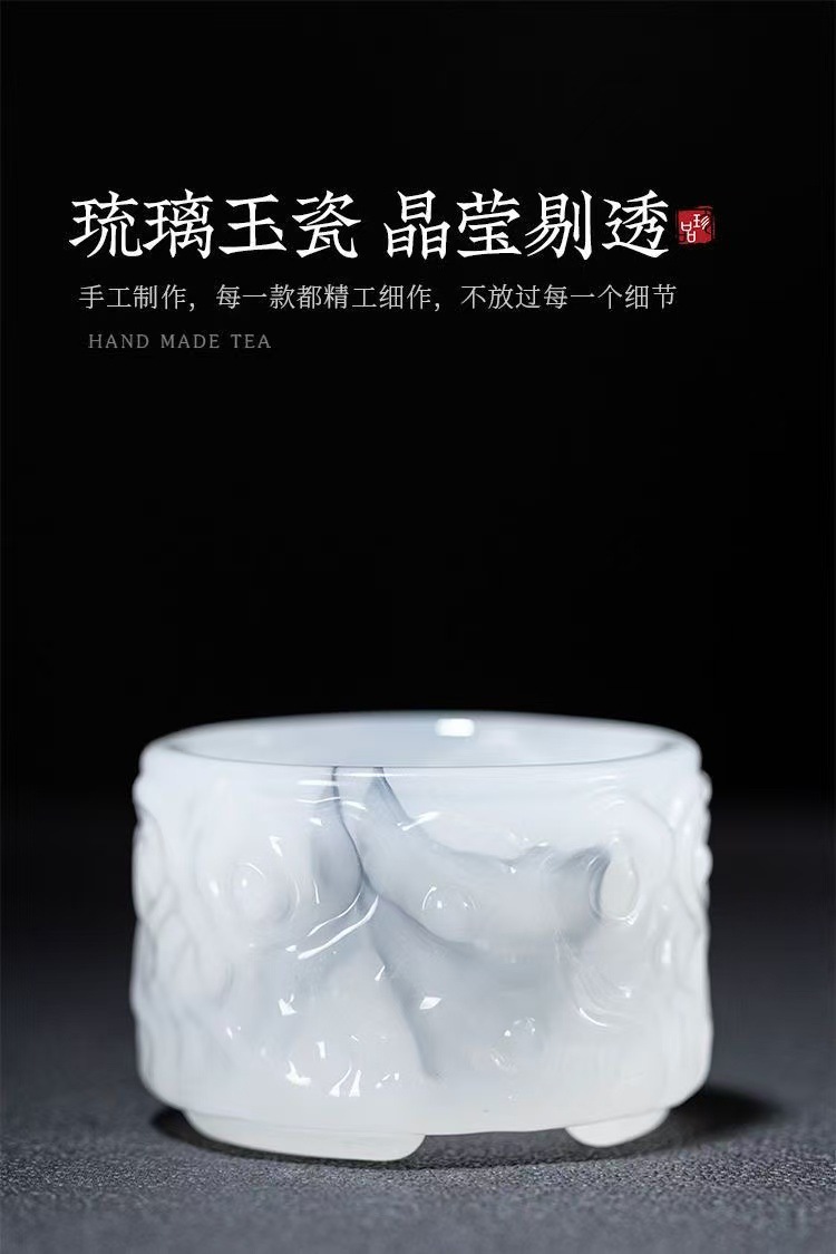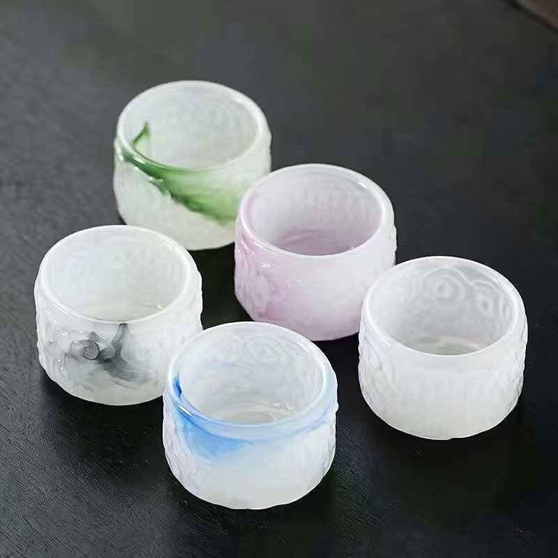 백옥 유리 양각 찻잔 마스터 컵 티 컵 선물 상자 크리 에이 티브 선물 단일 컵 비즈니스 기념품