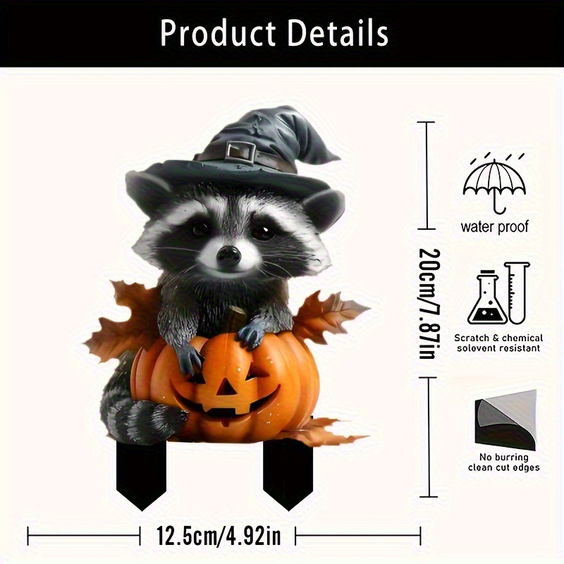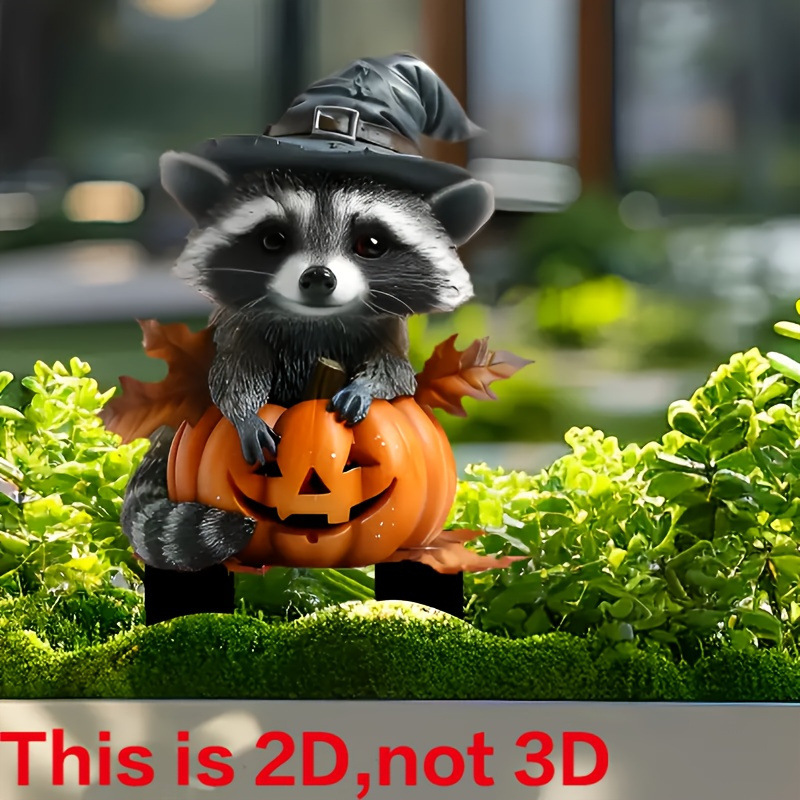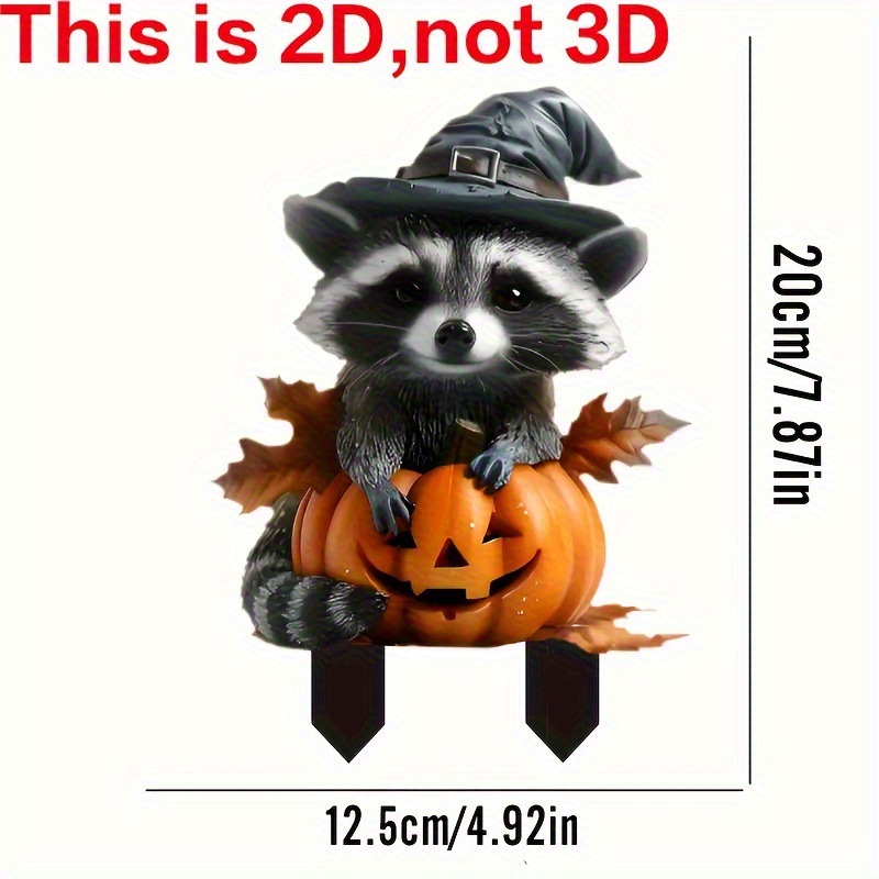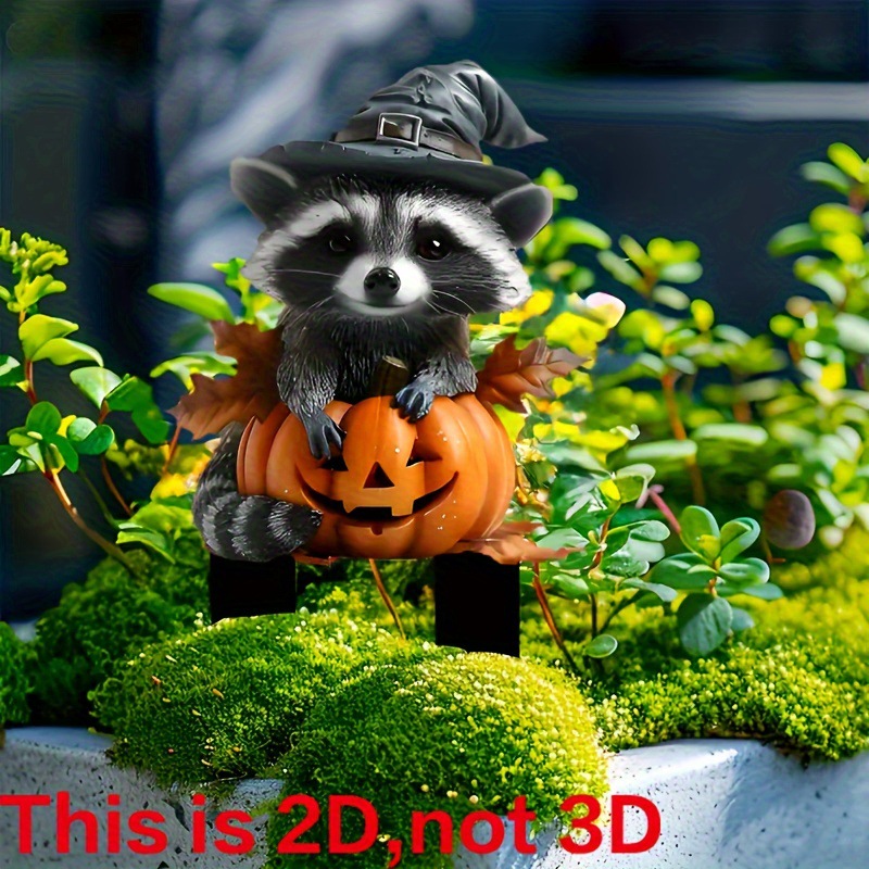 2D 평면, 1개 2D 평면 아크릴 너구리와 호박 정원 말뚝 - 빈티지 할로윈 장식스토어 가기