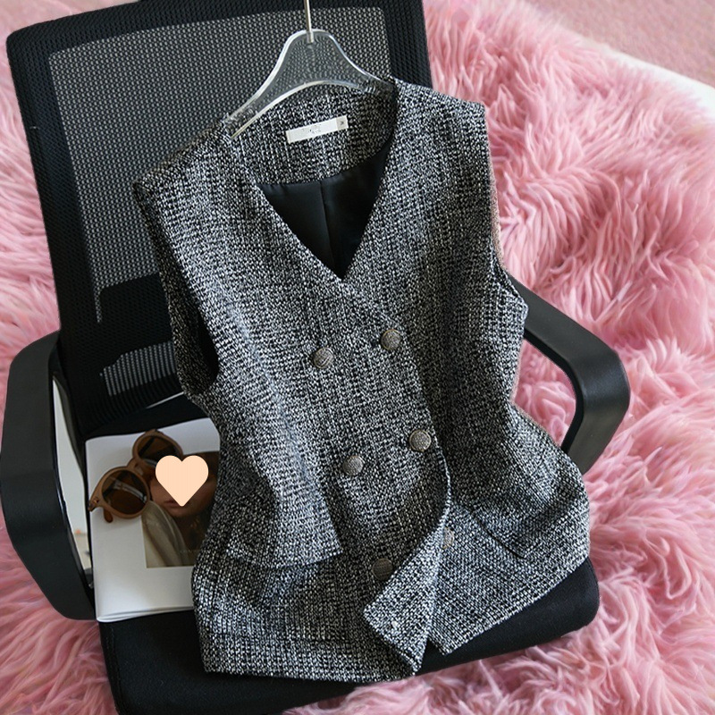 여성을 위한 패셔너블한 짧은 스타일의 작은 향기 슈트 조끼 재킷, 봄과 가을, 심플한 기질, 복고풍 스타일, 더블 브레스트 조끼