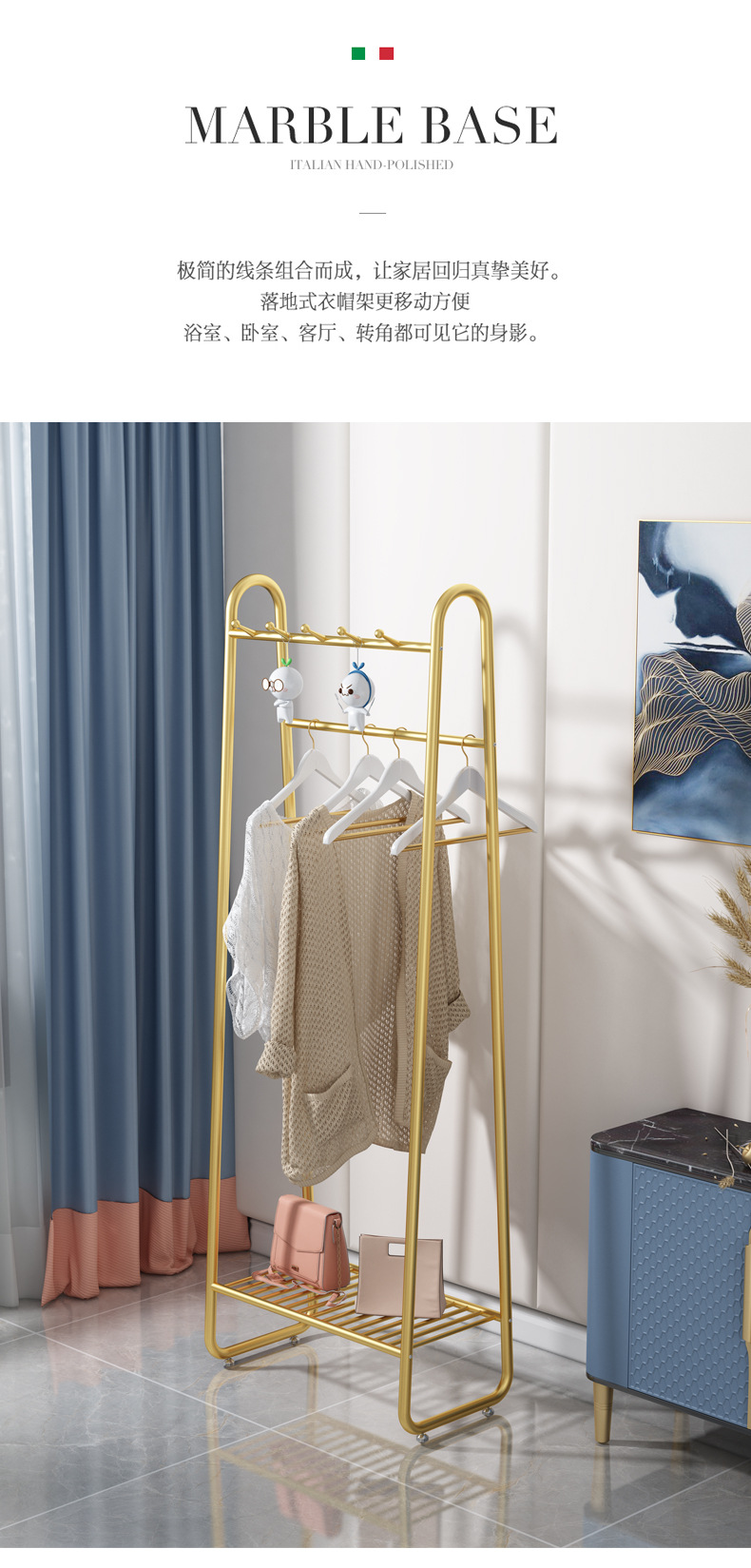 가벼운 고급 옷걸이, 바닥에서 천장까지 이어지는 침실 간이 옷걸이, 가정용 북유럽 옷걸이, 간단한 현대식 옷걸이스토어 가기