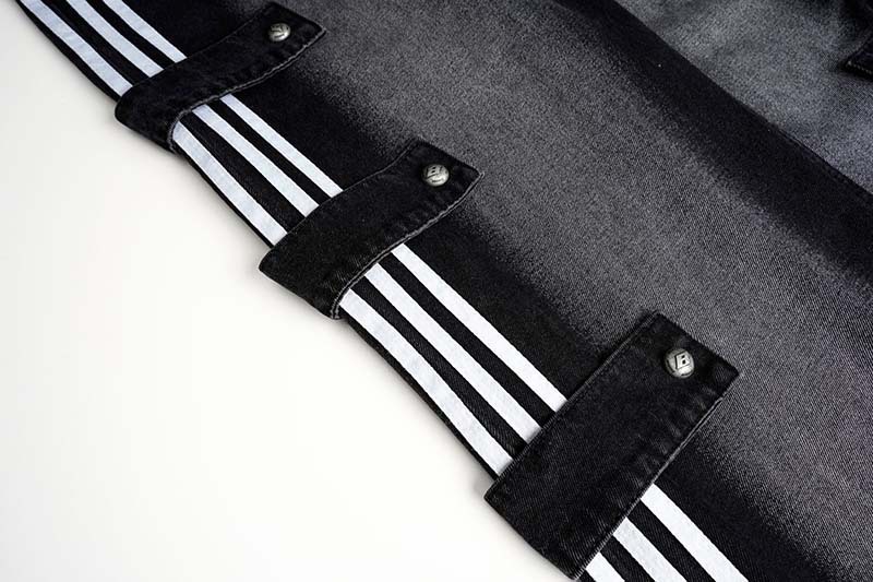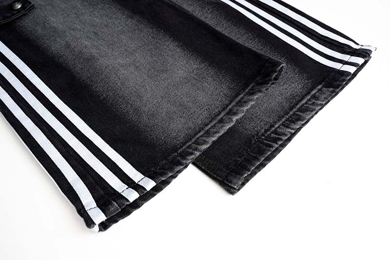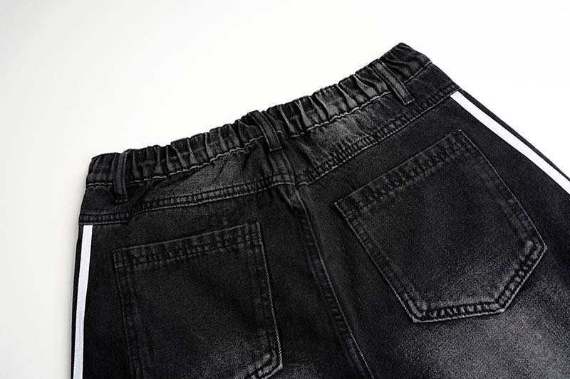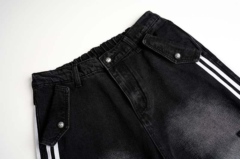 아메리칸 스트리트 트렌디 워싱 스트랩 스트라이프 디자인 남녀공용 스트레이트 청바지 트렌디 브랜드 루즈 캐주얼 와이드 팬츠스토어 가기