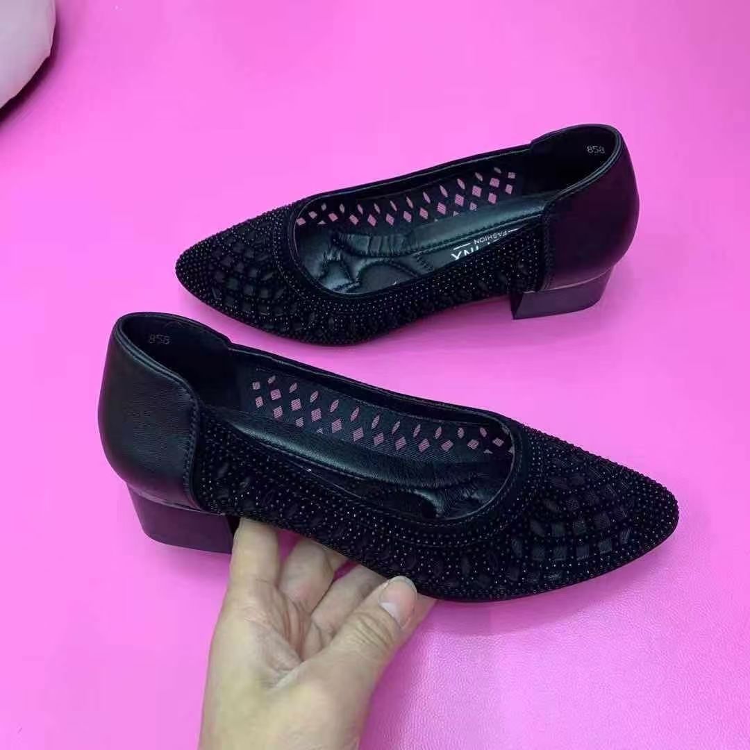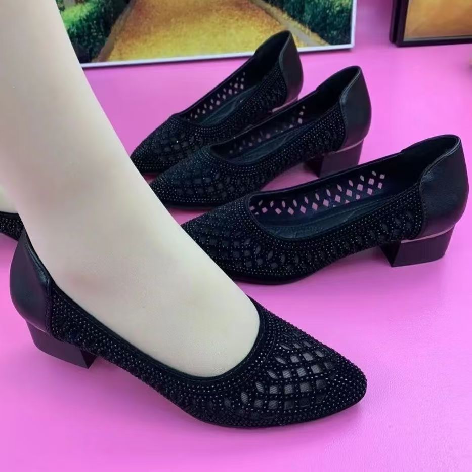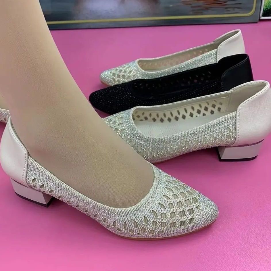 엄마들을 위한 여름 속이 빈 밝은 다이아몬드 원라인 샌들, 쿨한 로우힐, 다재다능하고 발이 피곤하지 않은 2025 바오터우 소프트솔 패션 샌들스토어 가기