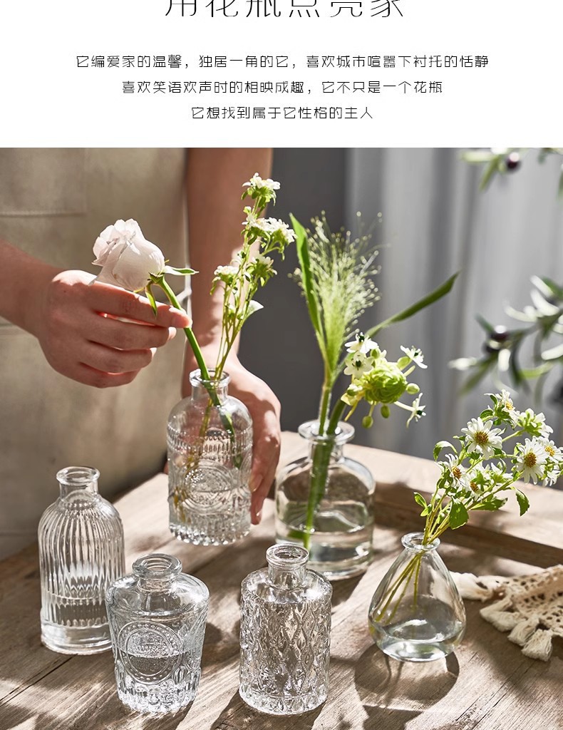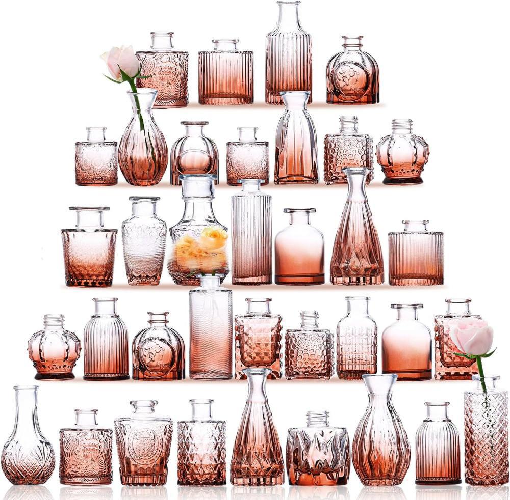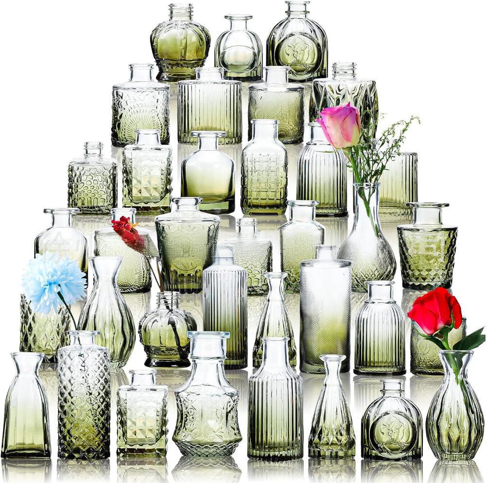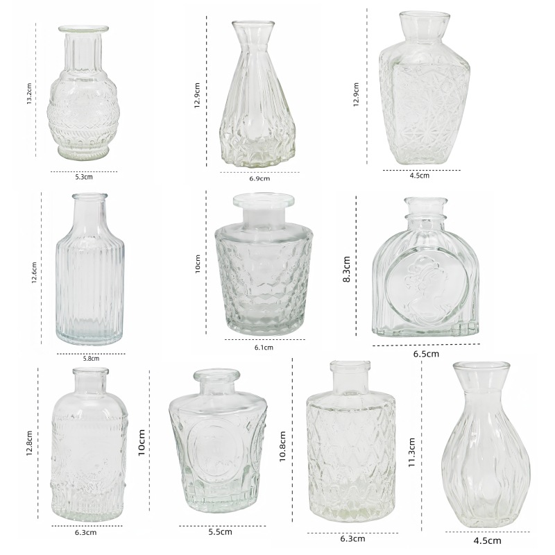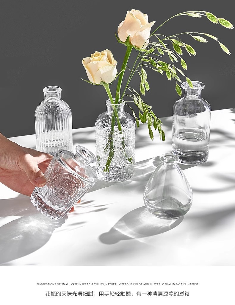 아마존의 인기 복고풍 유리 꽃병, 고급 아로마테라피 병, 투명한 스타일 장식품 작은 꽃병