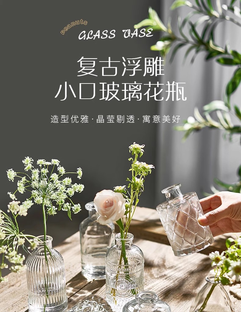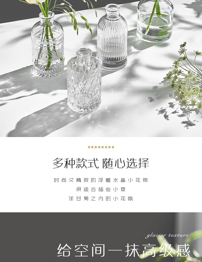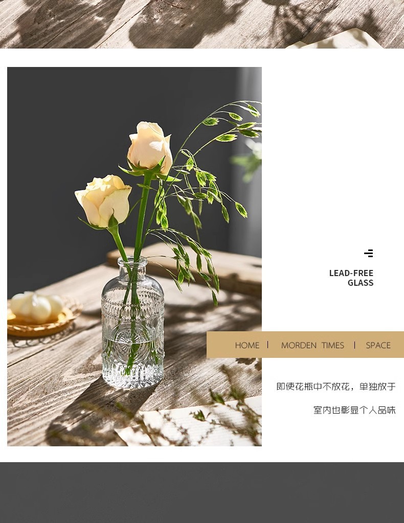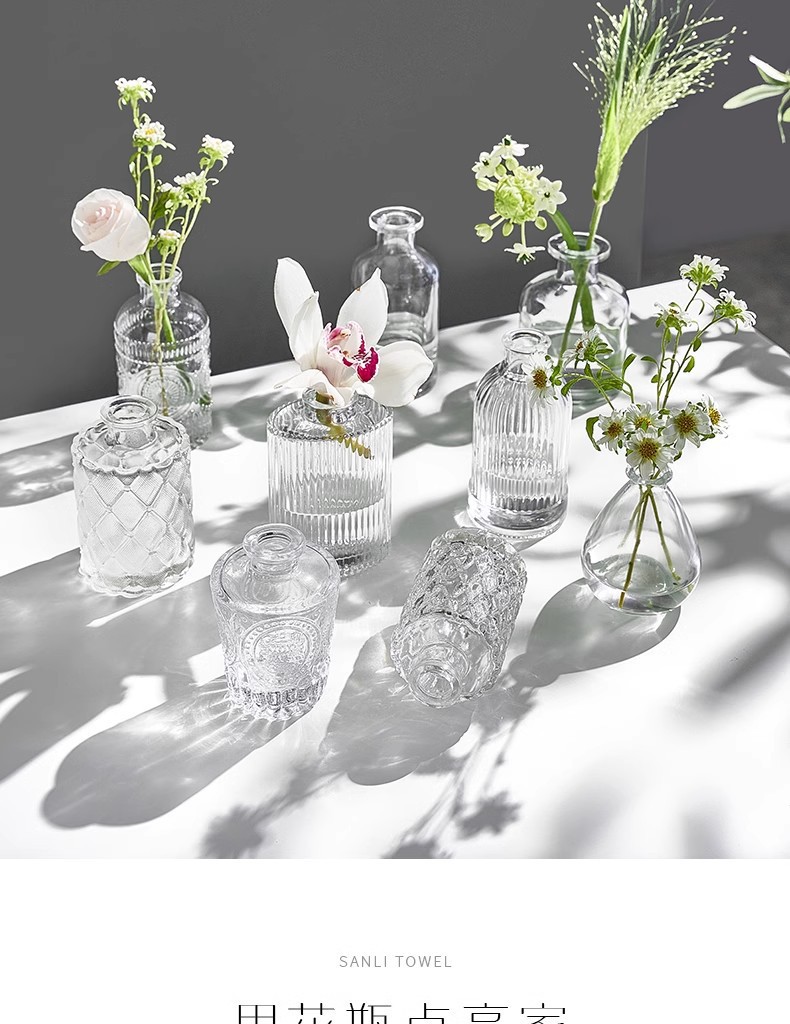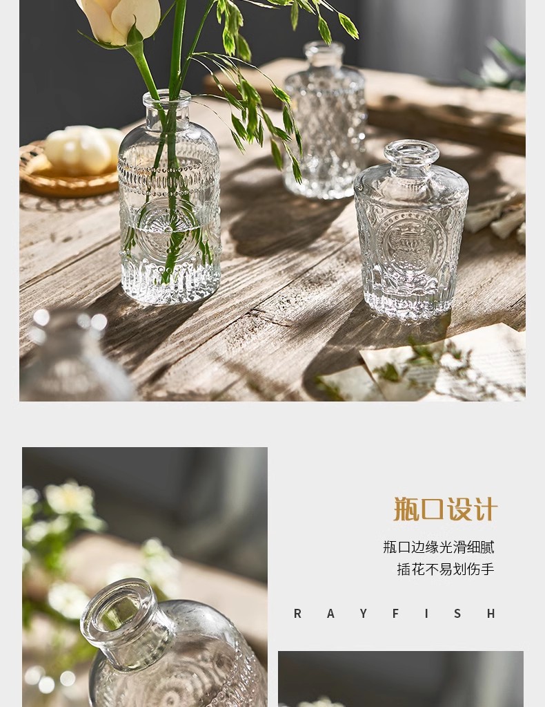 아마존의 인기 복고풍 유리 꽃병, 고급 아로마테라피 병, 투명한 스타일 장식품 작은 꽃병