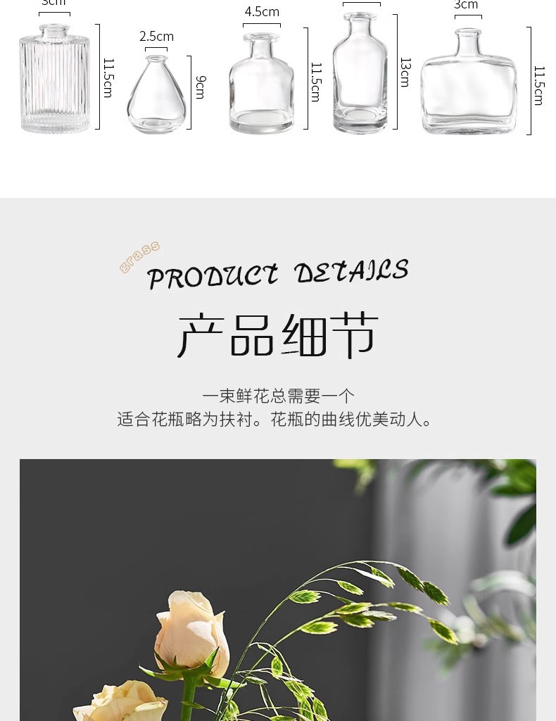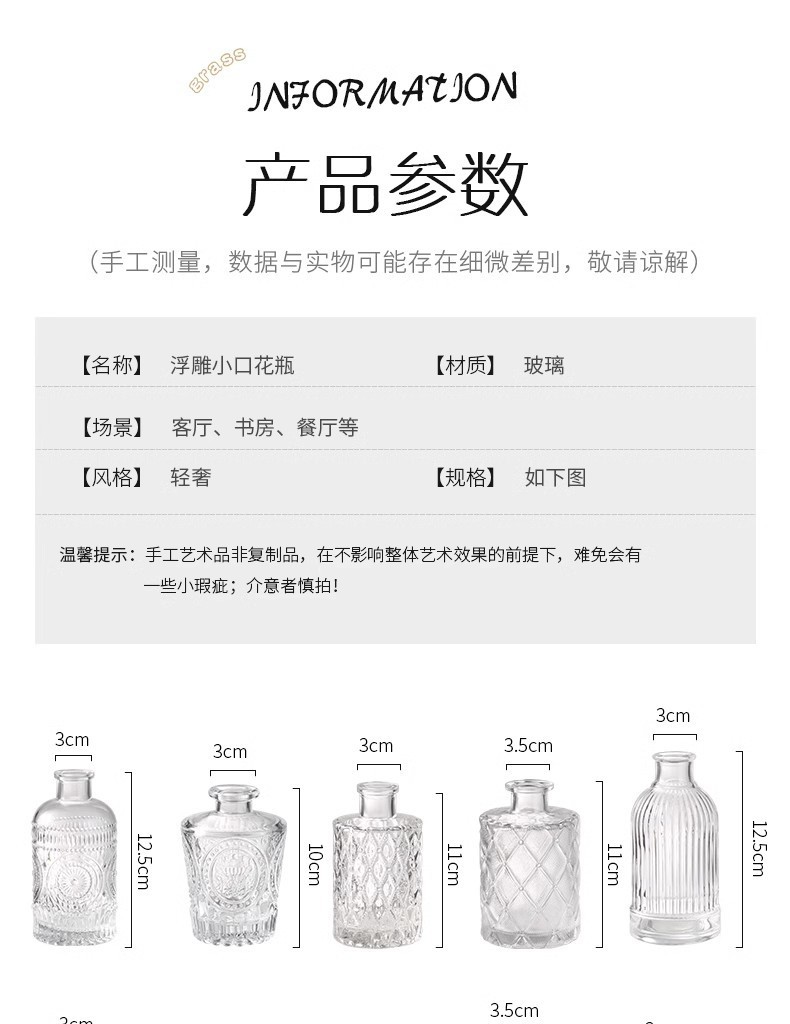 아마존의 인기 복고풍 유리 꽃병, 고급 아로마테라피 병, 투명한 스타일 장식품 작은 꽃병스토어 가기