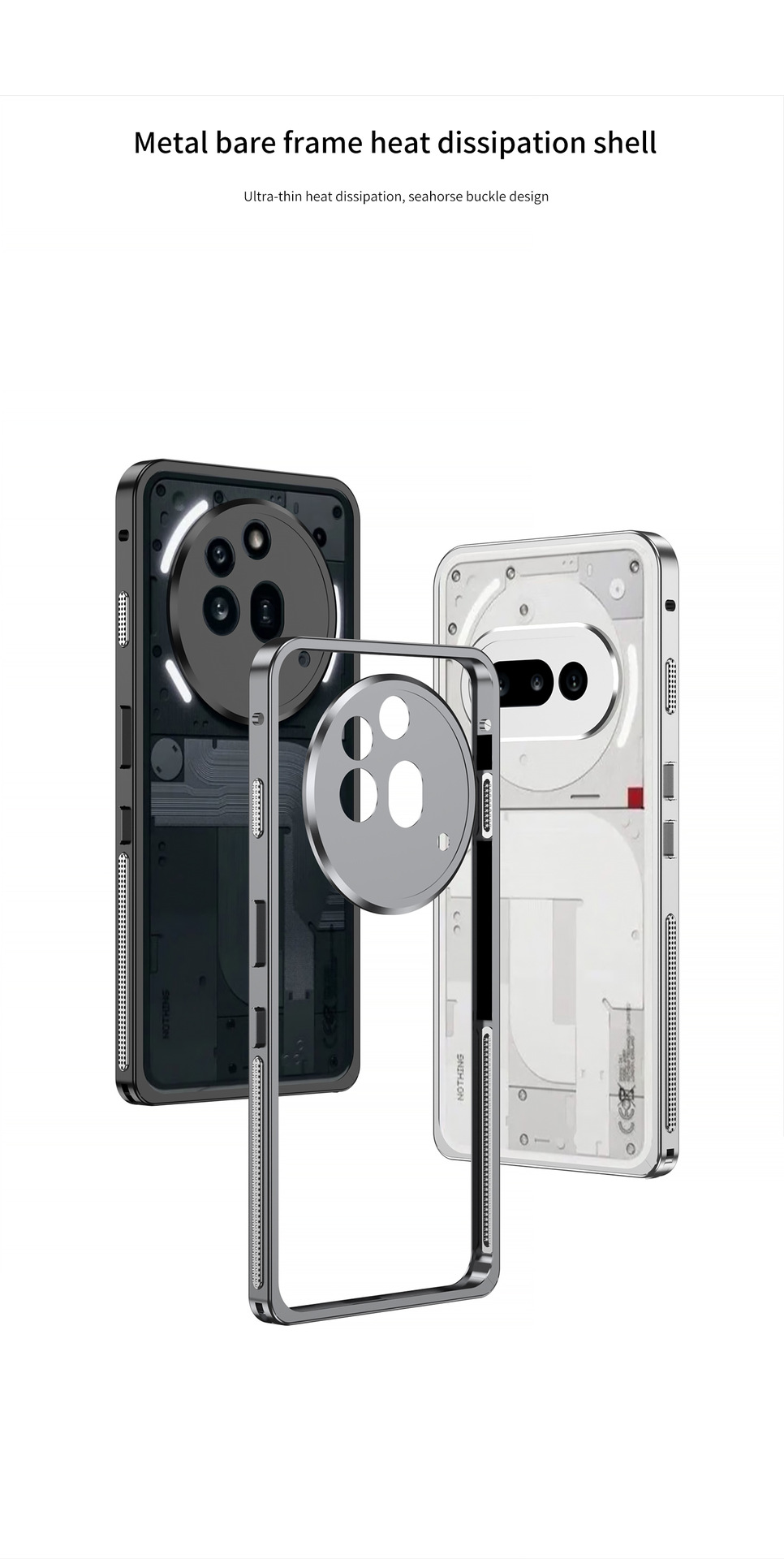 국경 간 적용 가능 Nothing Phone3Apro 해마 버클 냉각 단일 프레임 휴대폰 케이스 알루미늄 합금 보호 커버